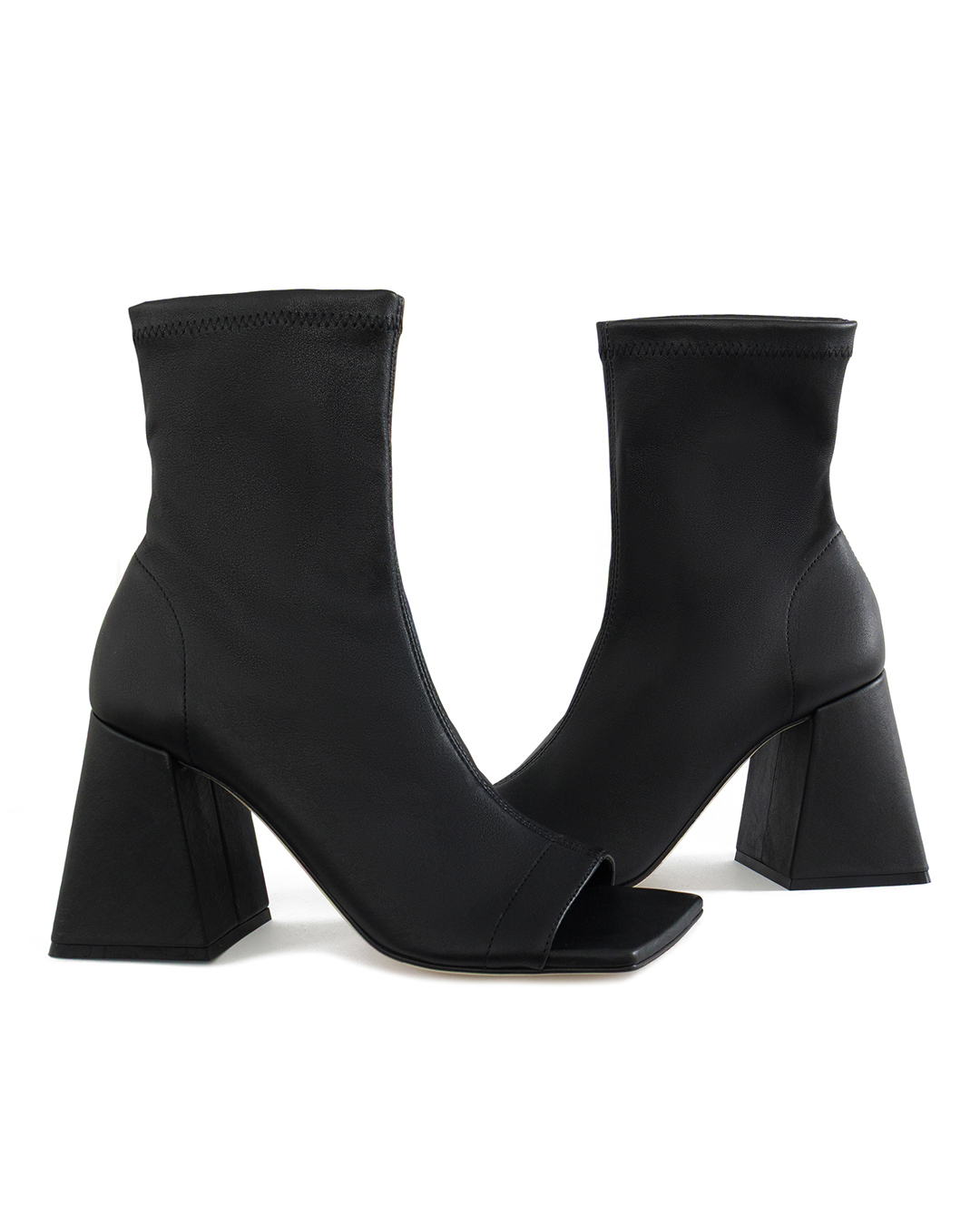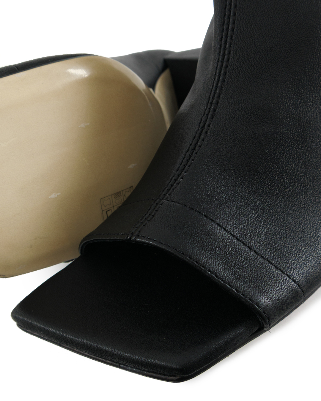Представленные ботильоны демонстрируют изысканный баланс между элегантностью и современным стилем. Выполненные из гладкой черной кожи, они олицетворяют минималистичный шик и универсальность, которые прекрасно впишутся в любой гардероб. Эти ботильоны характеризуются открытым мыском, добавляющим нотку авангардности и легкости. Высокий трехгранный каблук придаёт образу уверенность и подчеркнутую женственность, создавая эффектный акцент и визуально удлиняя силуэт. Обработка защипов вдоль верхней части обуви подчёркивает внимание к деталям и отлично дополняет общий лаконичный дизайн. Изысканные швы обеспечивают безупречную посадку по ноге, а тонкий профиль позволяет обуви оставаться элегантной и утончённой. Эти ботильоны идеально подойдут как для повседневной носки, так и для создания модных вечерних луков.