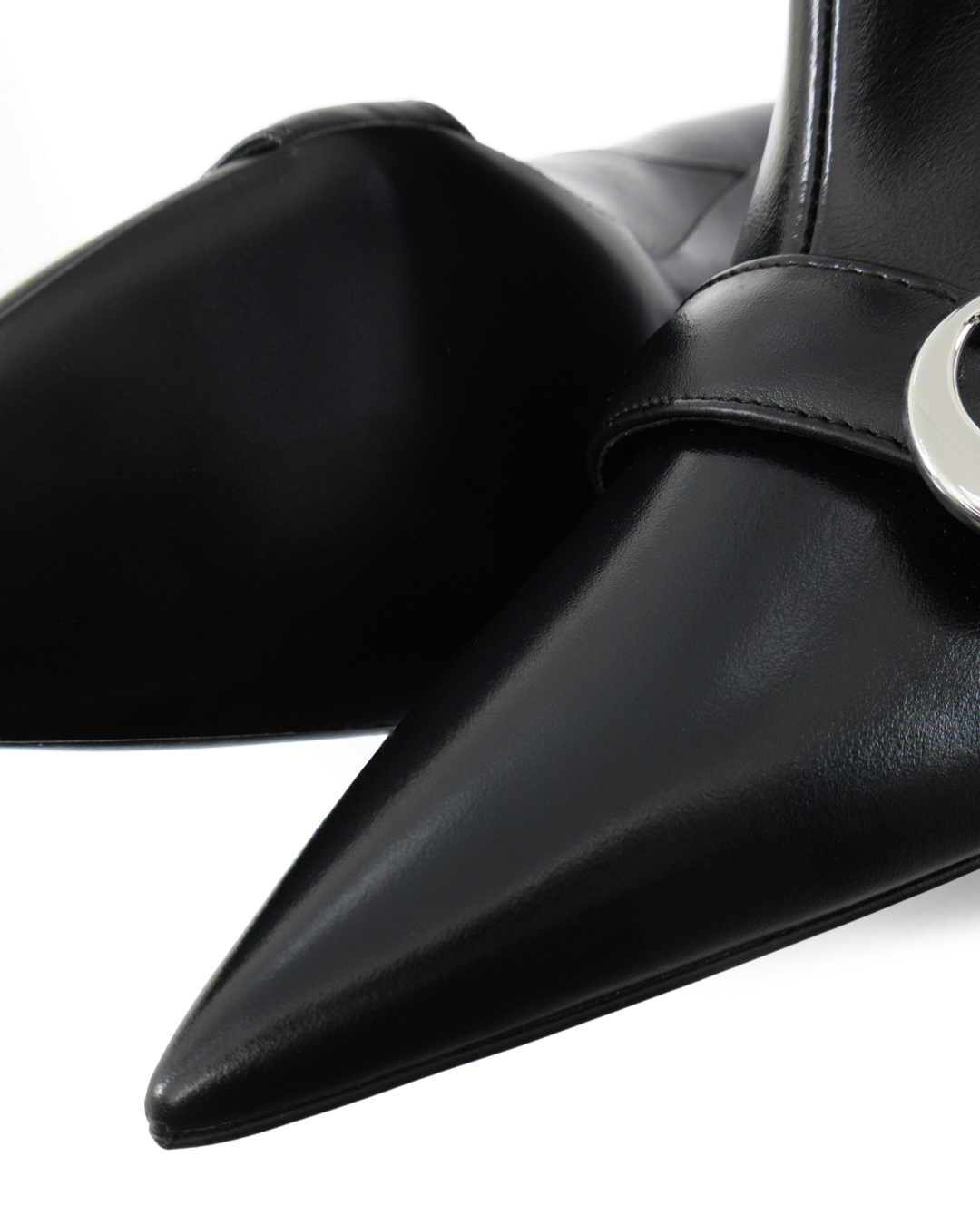 Эти ботильоны — воплощение элегантности и изысканного стиля. Выполненные из гладкой черной кожи, они сочетают в себе классическую элегантность с современными акцентами. Заостренный носок придает модели утонченную дерзость, визуально удлиняя ноги и создавая изящный силуэт. Устойчивый каблук средней высоты добавляет утонченности и комфорта, обеспечивая уверенную походку. Изюминкой модели выступает декоративная пряжка серебристого оттенка, элегантно расположенная на боковой части, которая придает ботильонам выразительность и акцентирует внимание на высоком уровне мастерства. Минималистичный дизайн дополняется идеально проработанными линиями и качественной отделкой, которые подчеркивают премиальность и внимание к деталям. Внутренняя отделка сделана из мягкого материала для дополнительного комфорта в носке. Эти ботильоны станут прекрасным дополнением к любому образу, добавляя нотку роскоши и стиля, будь то деловой ансамбль или повседневный шик.