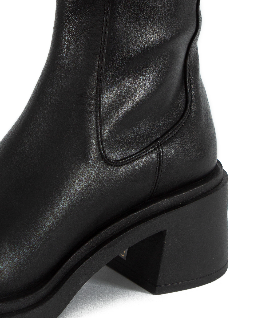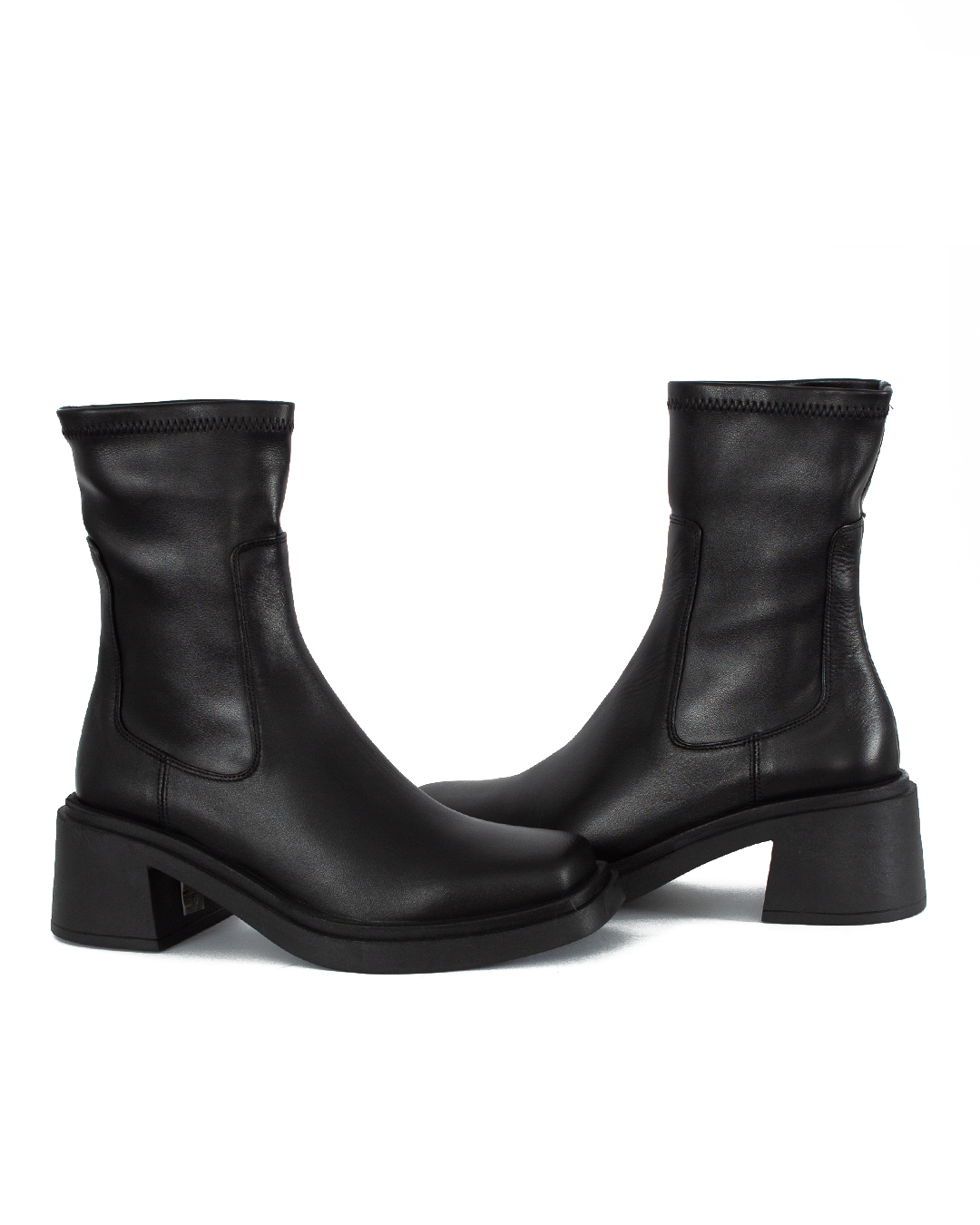 Полусапоги DICCI из натуральной эластичной кожи. Пара с закругленным квадратным мысом дополнена устойчивым каблуком.