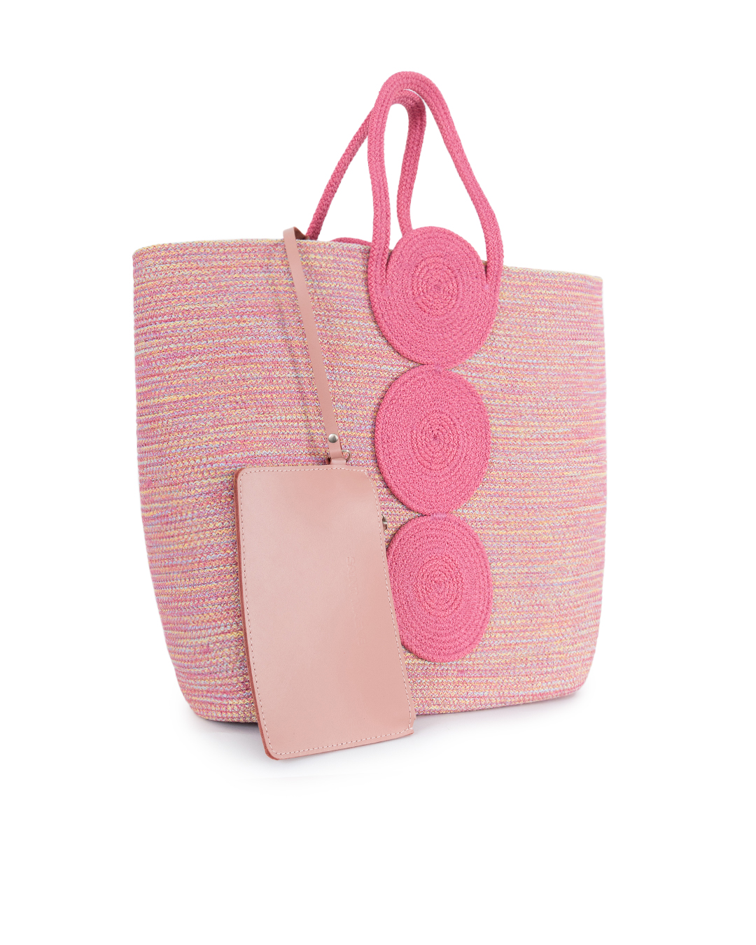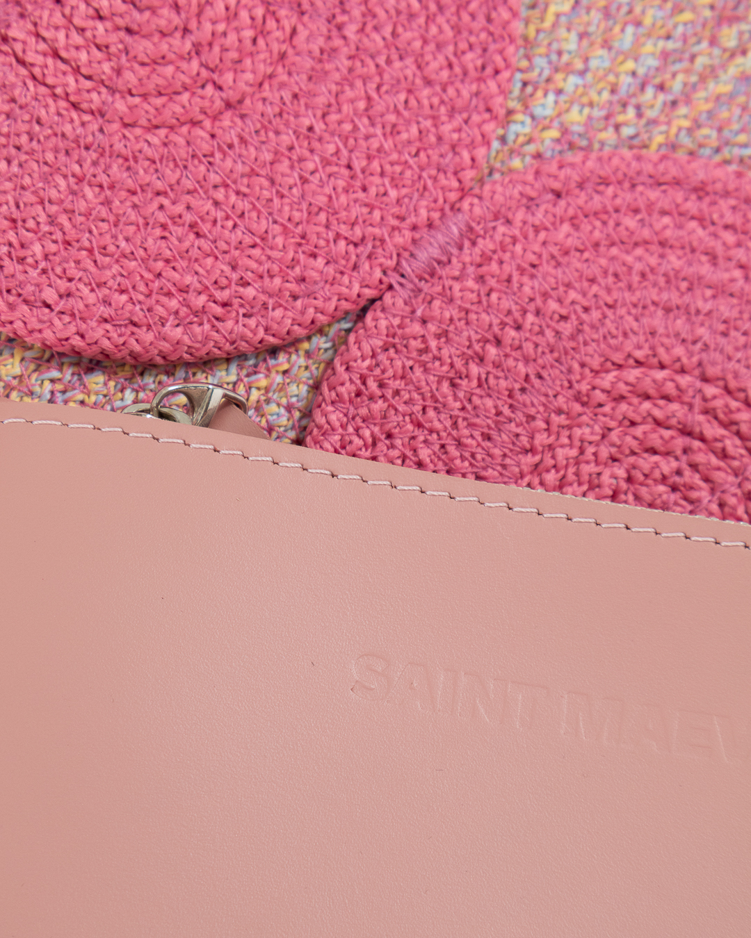 Объемная сумка-тоут Saint MAEVE с кожаным кошельком станет идеальной спутницей для пляжного отдыха. Изделие с основным отделом и плетеными удобными ручками.