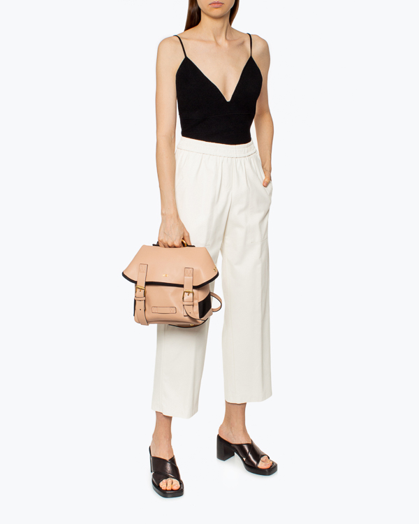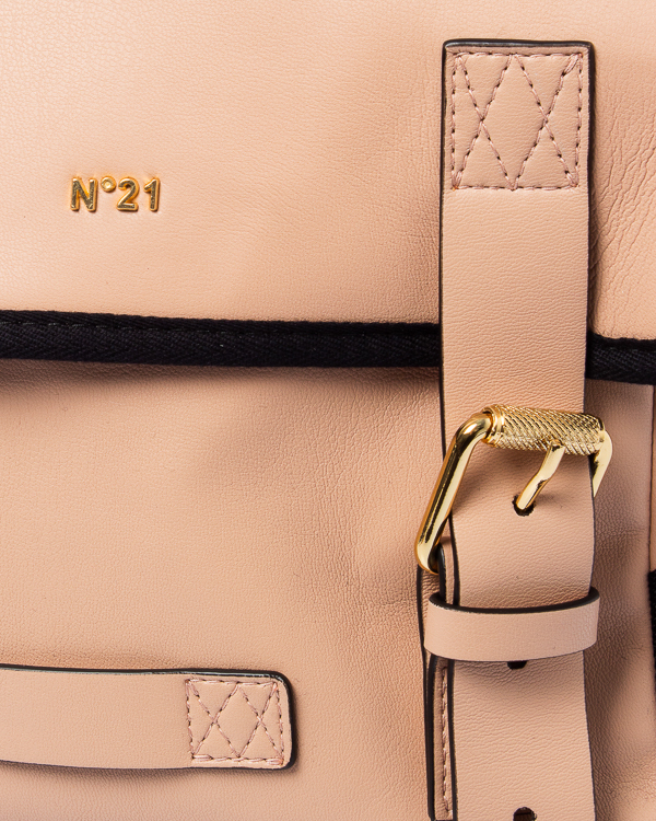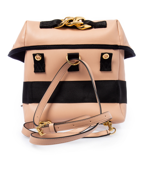 Объемный рюкзак из матовой экокожи розового оттенка с отделкой качественной металлической фурнитурой с покрытием золотого оттенка. Изделие с основным отделом и застежкой на клапан. Удобные кожаные лямки регулируемой длины.