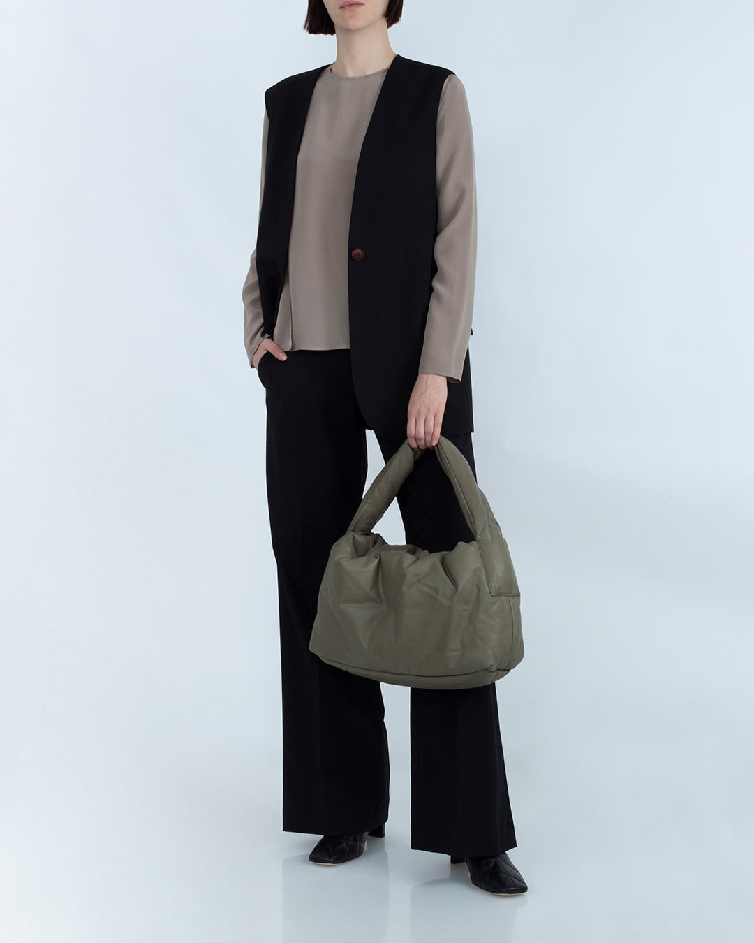 Сумка ALYSI из натуральной мягкой кожи. Дутое объемное изделие выполнено с основным отделом и дополнено удобной ручкой из основного материала.