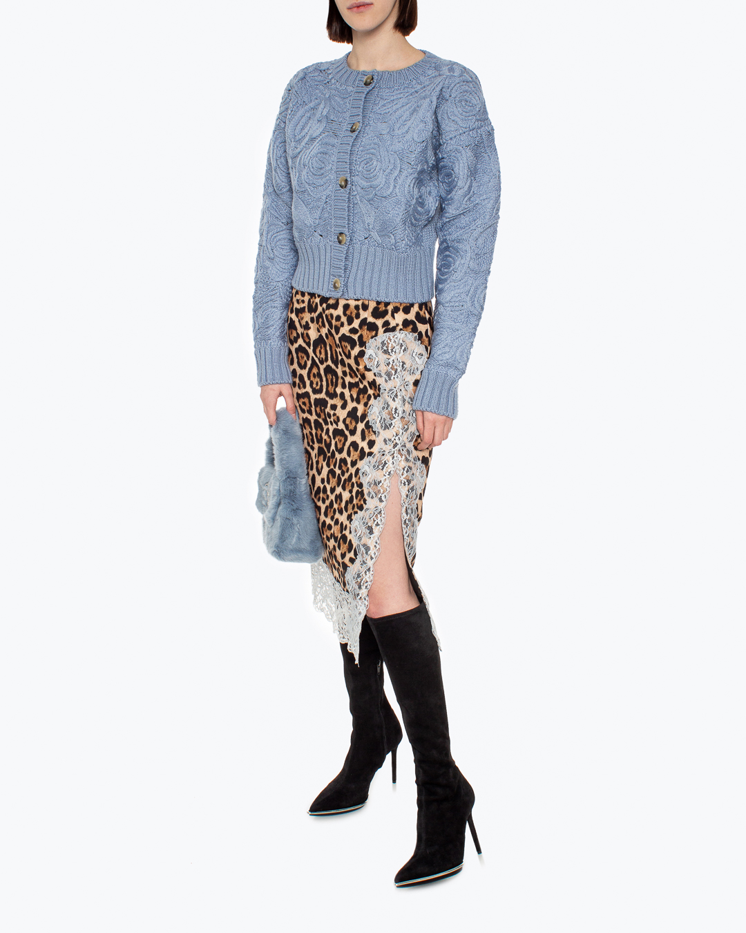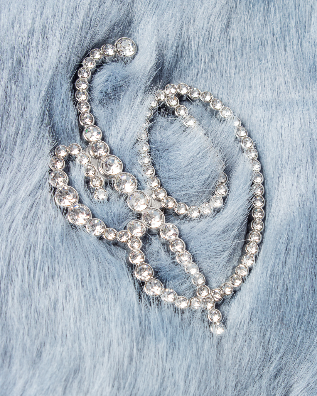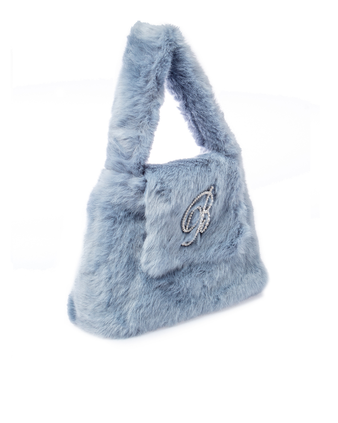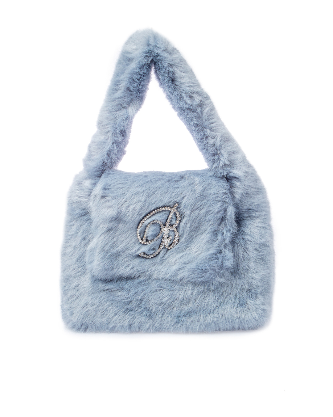 Сумка BLUMARINE выполнена из мягкого декоративного меха. Основной отдел с застежкой на клапан дополнен отделкой из кристалл в виде логотипа бренда.