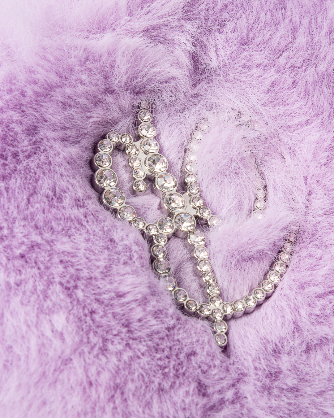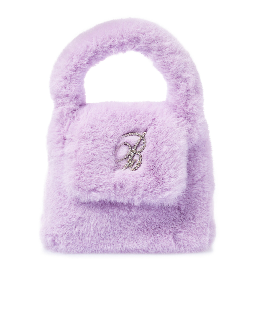 Сумка BLUMARINE выполнена из мягкого декоративного меха. Основной отдел с застежкой на клапан дополнен отделкой из кристалл в виде логотипа бренда.