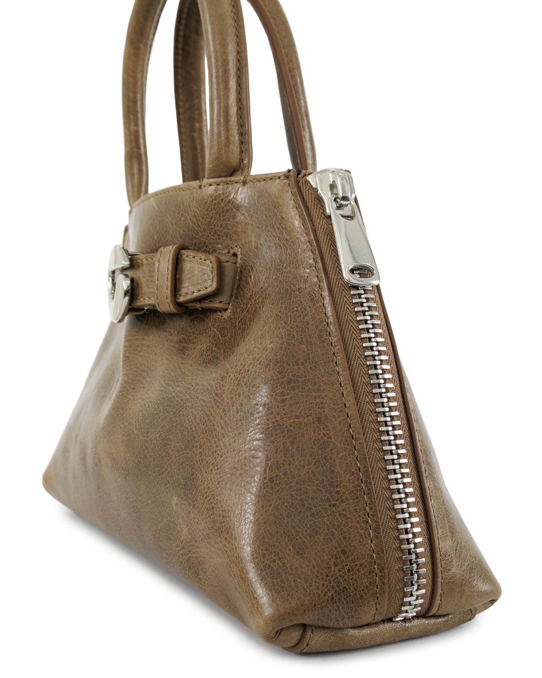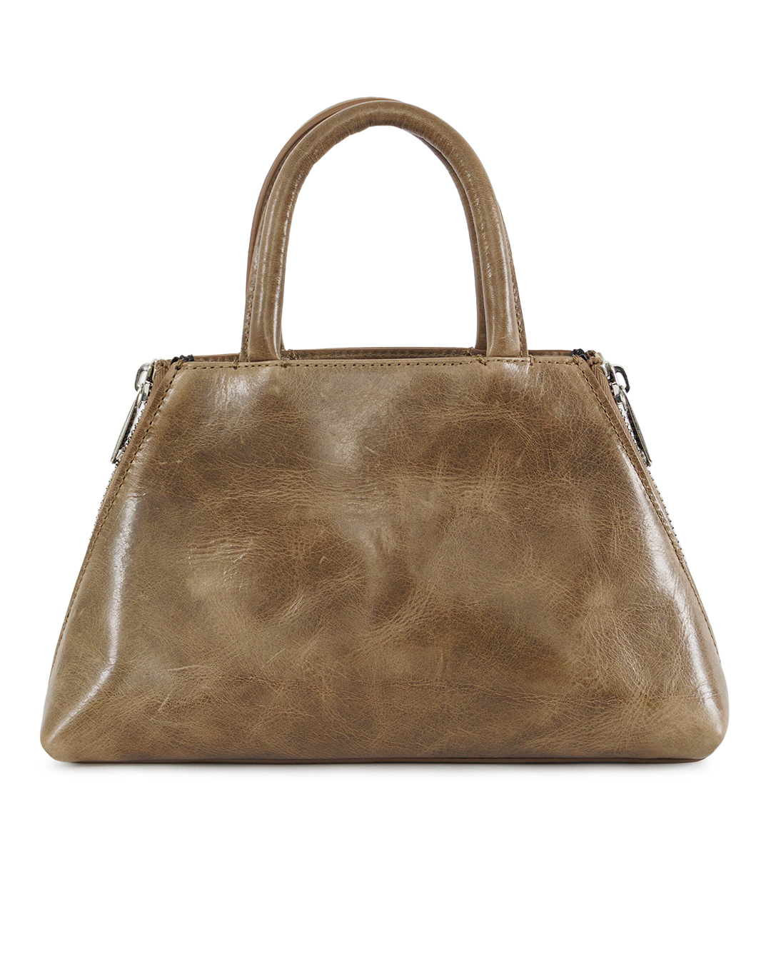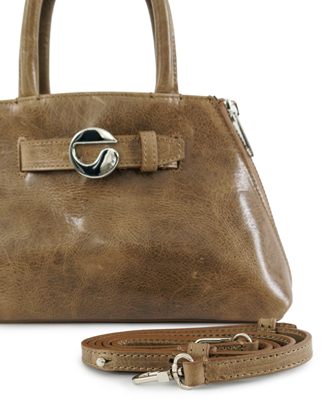 Эта сумка — изысканный аксессуар, который с легкостью добавит нотки элегантности и стиля в любой образ. Выполненная из высококачественной кожи с легким блеском, она сочетает в себе прочность и роскошный внешний вид. Теплый карамельный оттенок материала придает сумке универсальность, идеально подходя как для повседневных, так и для вечерних образов. Структурированная форма с расширяющейся к низу конструкцией подчеркивает современный силуэт, создавая изящный и сбалансированный вид. Дизайн дополнен изысканной детализацией в виде кожаного ремешка с металлической пряжкой, который становится стильным акцентом и подчеркивает индивидуальность дизайна. Металлические элементы, такие как застежки-молнии и фурнитура в серебристом тоне, добавляют изделиям современный штрих и дополняют цветовую палитру. Внутреннее пространство организовано функционально, обеспечивая удобное размещение всех необходимых вещей. Эта сумка станет вашим надежным спутником, отражая утонченный вкус и приверженность высоким стандартам стиля и качества.