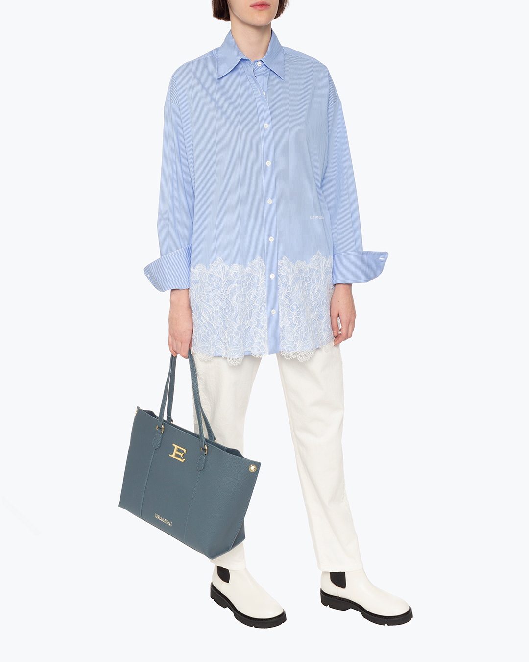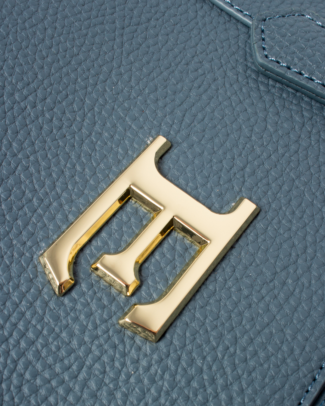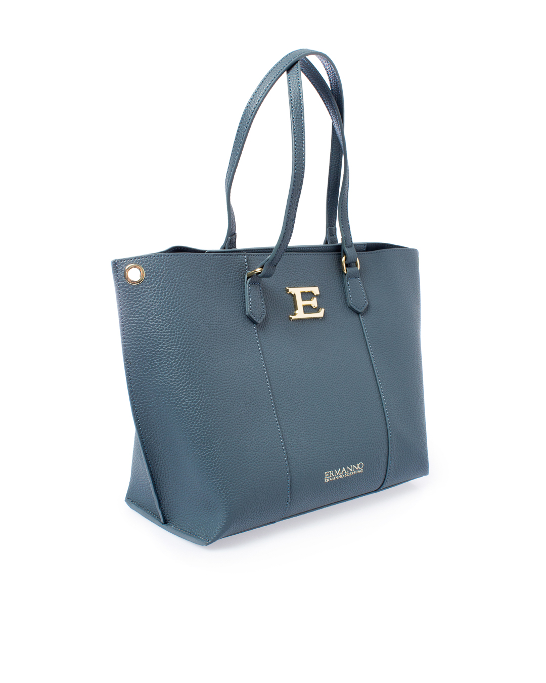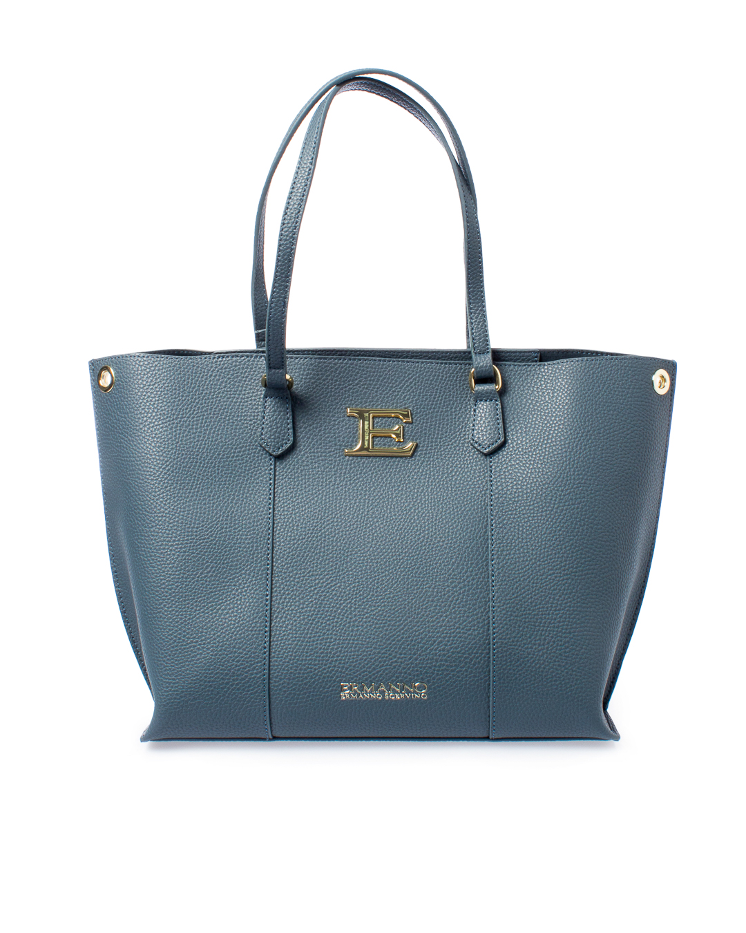 Сумка из шагреневой экокожи с логотипом бренда. Изделие с основным вместительным отделом дополнено двумя удобными ручками. Отделка качественной металлической фурнитурой с покрытием золотого оттенка.