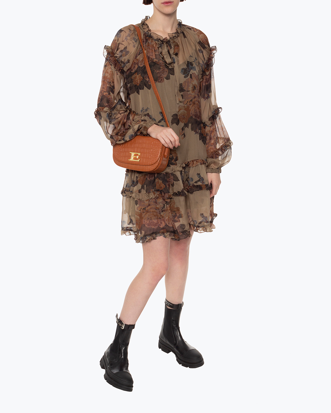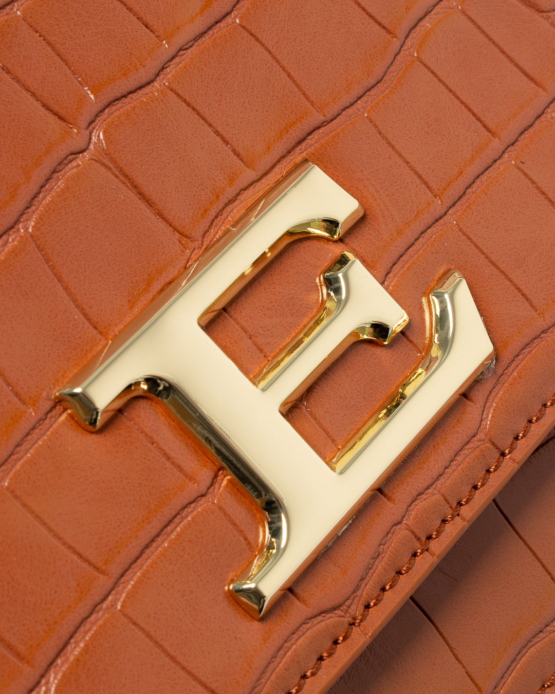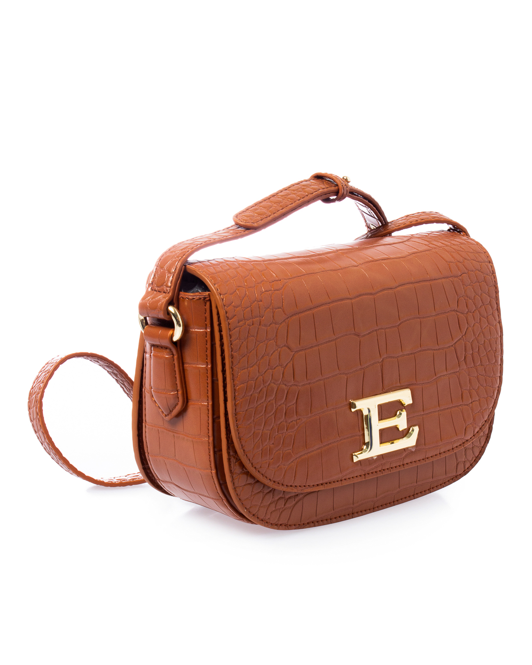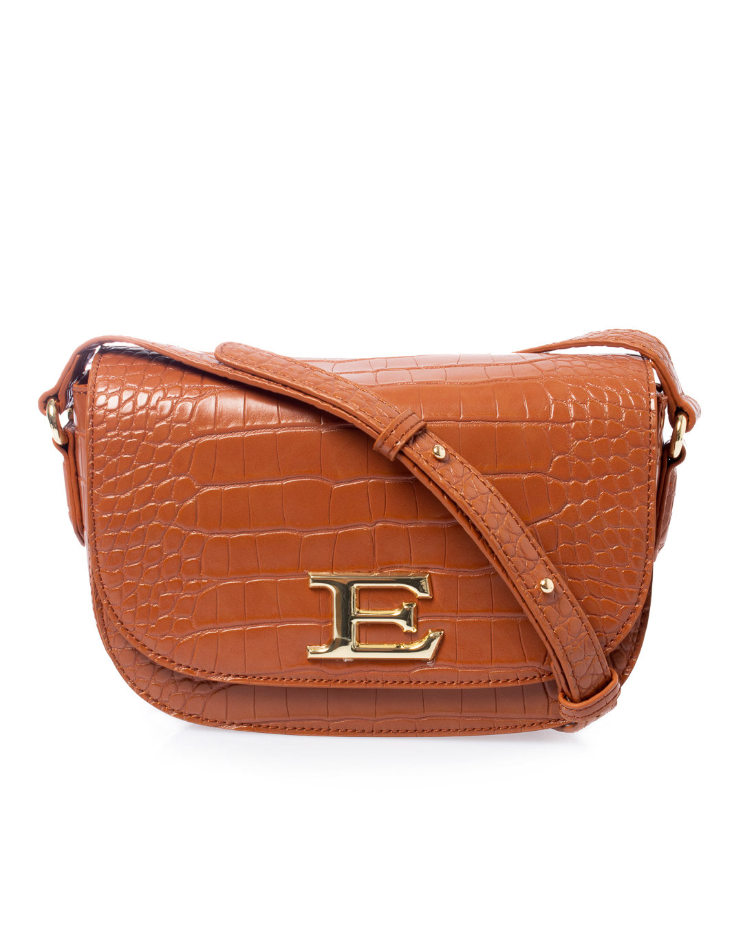 Сумка из плотной экокожи карамельного оттенка с фактурой под рептилию. Изделие с вместительным основным отделом дополнено застежкой на клапан с металлическим логотипом бренда. Сумка с плечевым ремнем регулируемой длины.