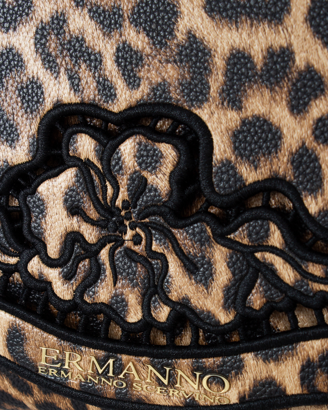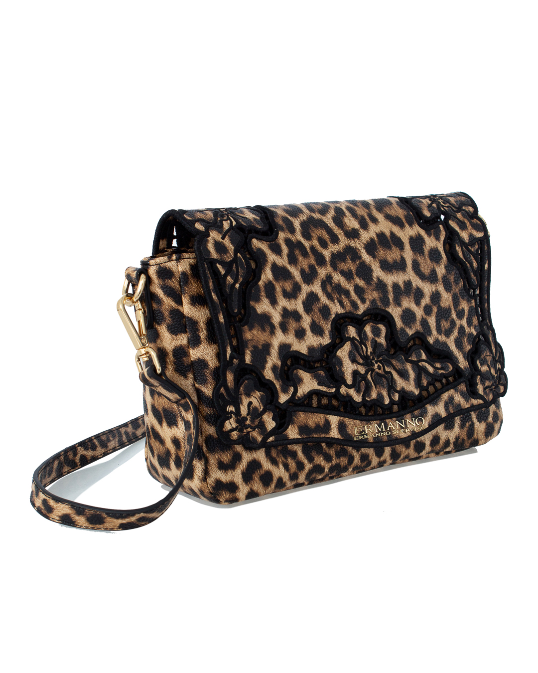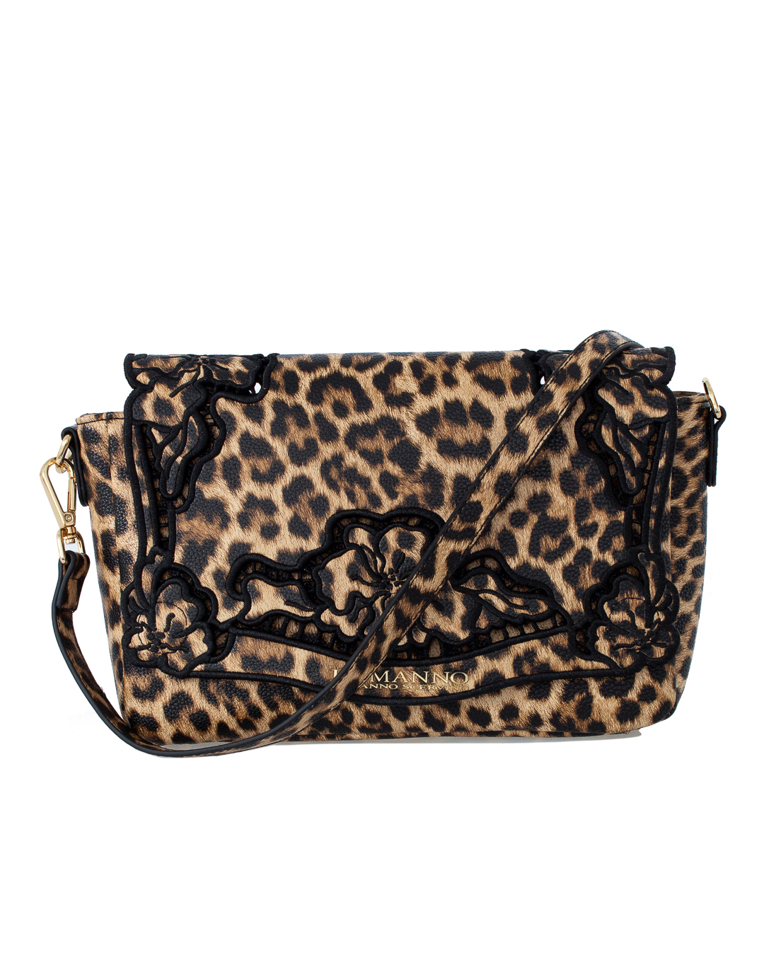 Сумка из экокожи с анималистичным принтом с вышивкой. Вместительное изделие с основным отделом и застежкой на клапан дополнено съемным плечевым ремнем.