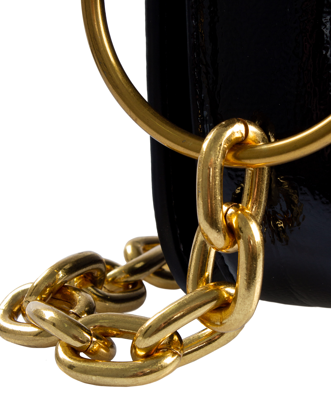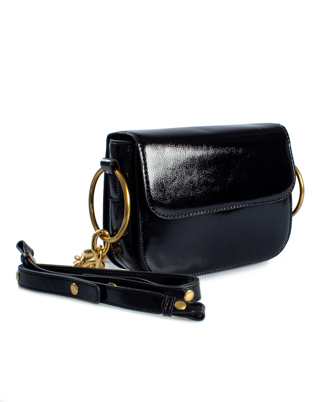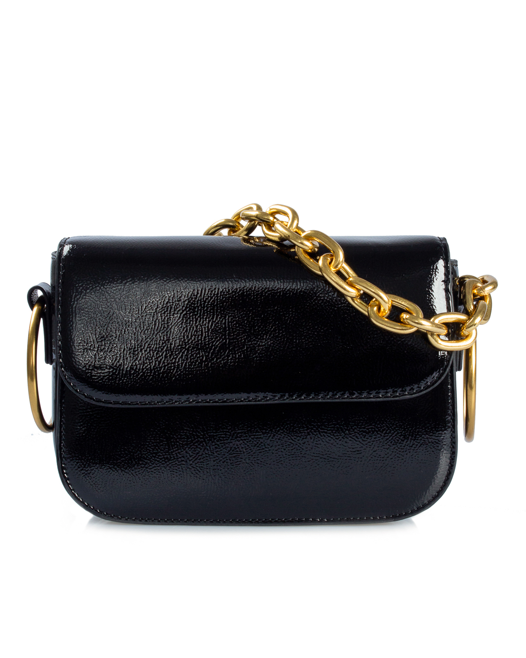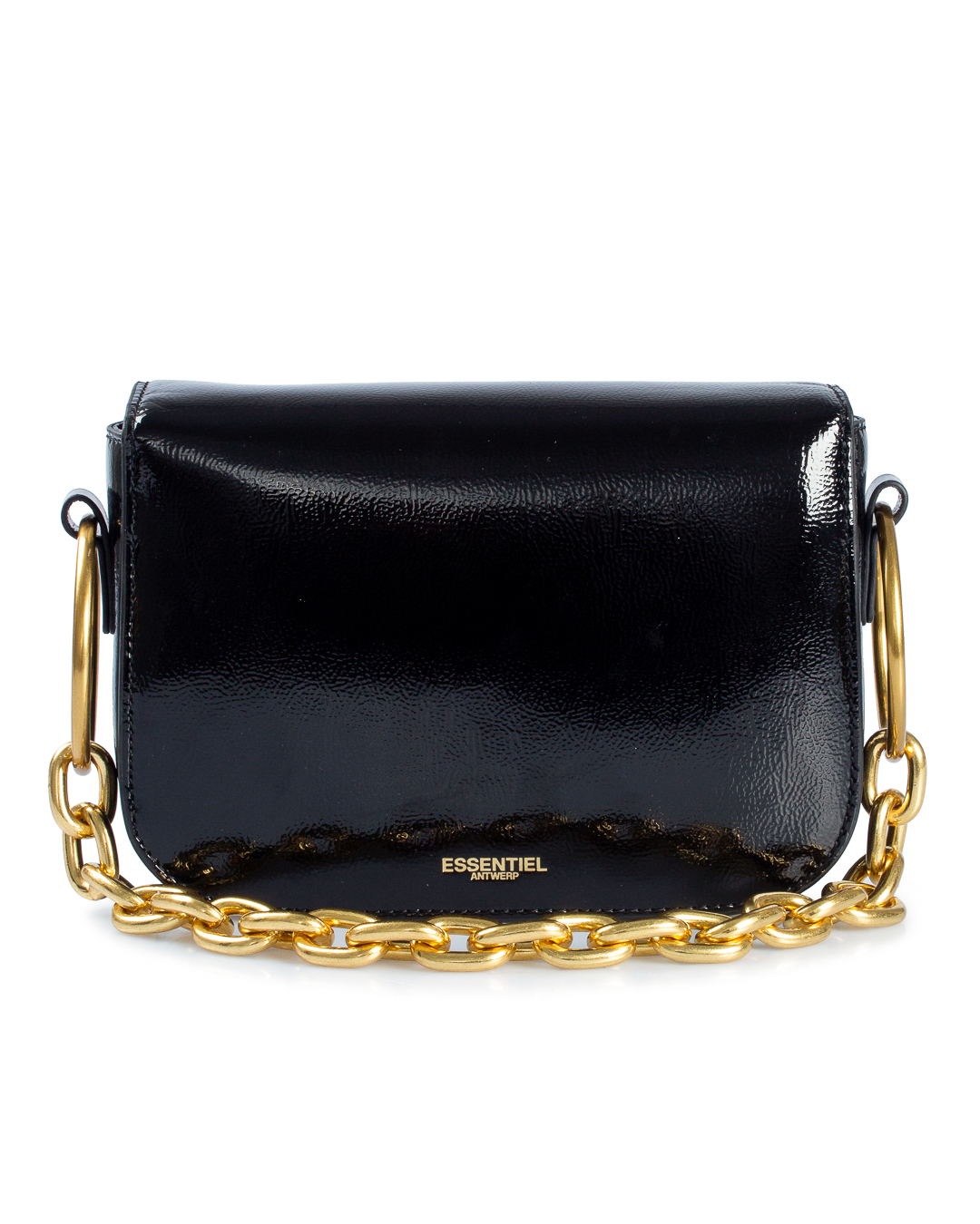 Сумка Essentiel Antwerp из лаковой экокожи с металлической цепочкой на плечо. Изделие с основным отделом с застежкой на клапан дополнено металлической фурнитурой.