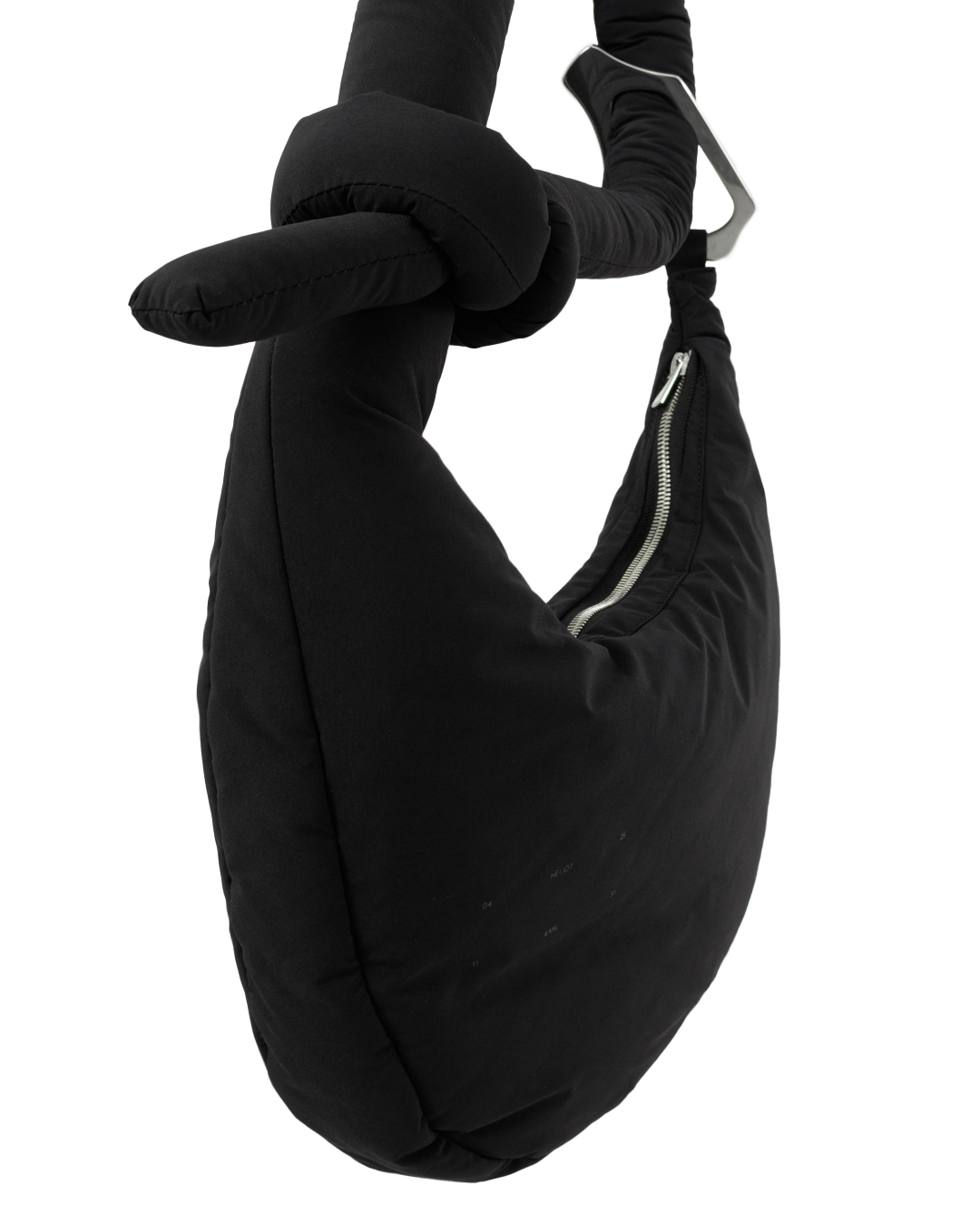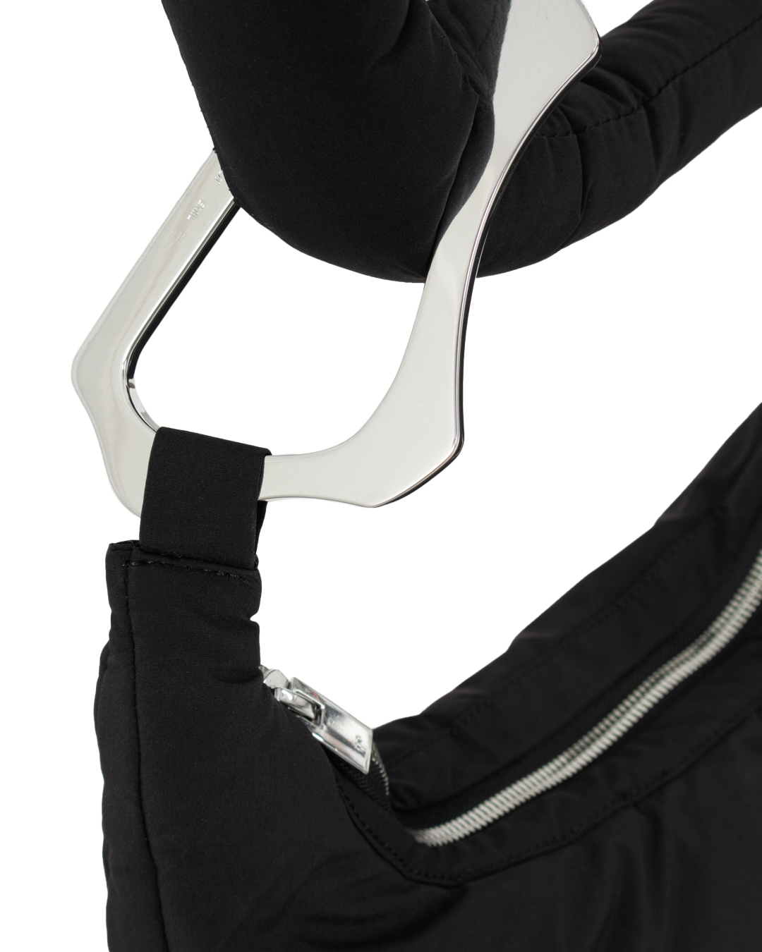 Эта сумка — воплощение современного изящества и уютного комфорта, выполненная в инновационном дизайне с акцентом на мягкость и форму. Изготовленная из черной ткани с легкой структурой, она излучает непринужденную элегантность и функциональность. Полукруглая форма сумки создаёт утонченный силуэт, плавно очерчивая линии и придавая модели органическую привлекательность. Элементы отделки включают увеличенные мягкие ручки, которые обеспечивают комфортное ношение и добавляют объемности. Крупное кольцо из металла, расположенное на ручке, выступает в роли стильного акцента, привнося нотку современности и утонченной дерзости. Эта деталь гармонично сочетает практичность и декоративность, придавая сумке актуальный вид. Внутреннее пространство продумано для практичности, позволяя разместить все необходимые предметы и организовать их с акцентом на удобство. Лаконичный интерьер подчеркивает общий минималистичный подход. Эта сумка станет изысканным дополнением как к повседневному, так и к более формальному образу, предлагая владельцу сочетание стиля и комфорта в каждой детали.