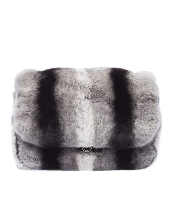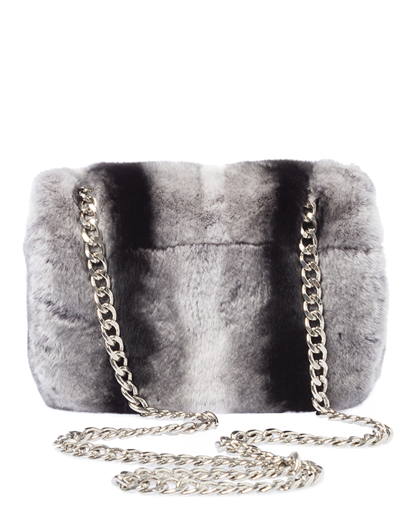 Сумка из натурального крашеного меха кролика. Модель из замши с основным отделом с застежкой на клапан и металлический замок. Изделие с металлической цепочкой.