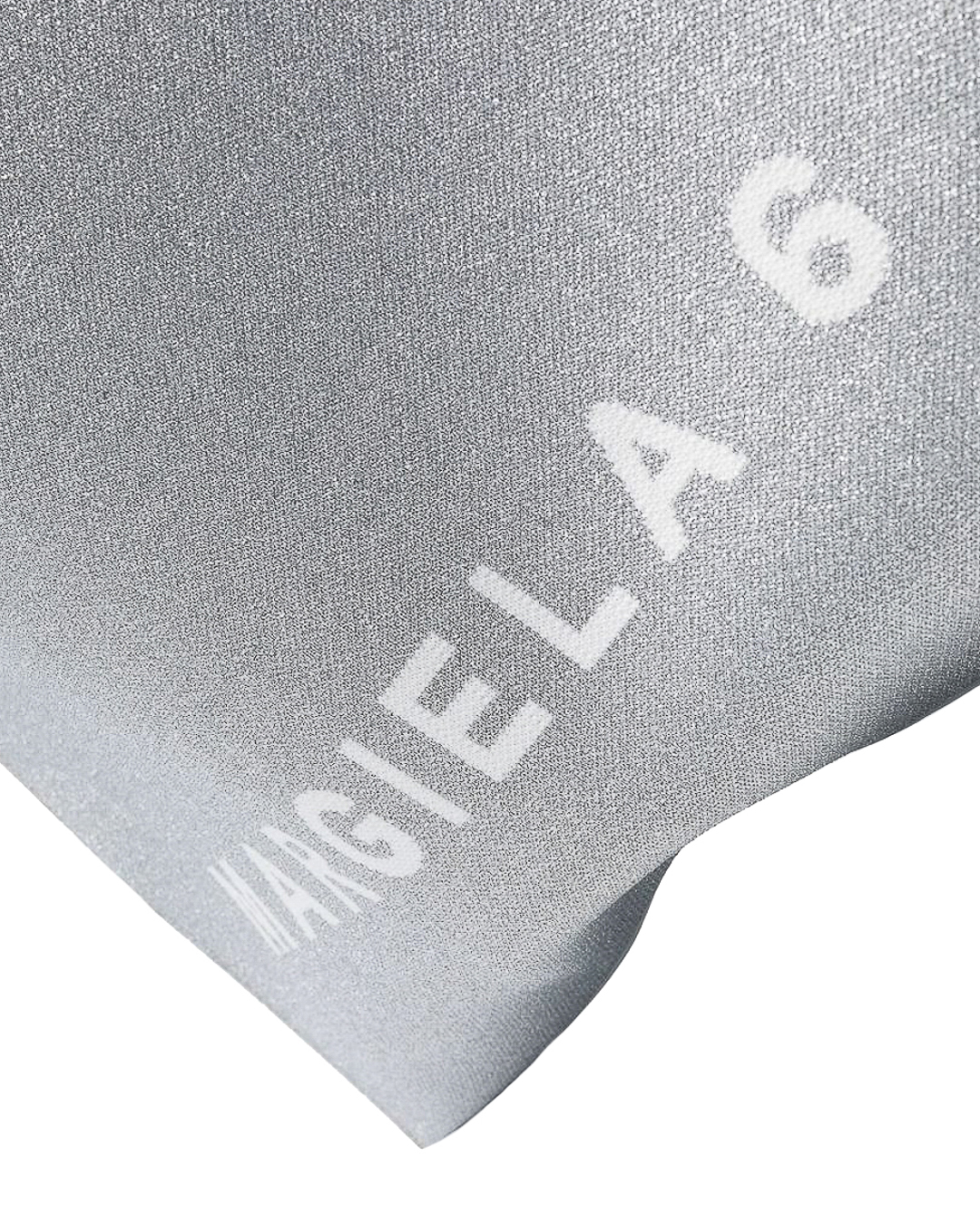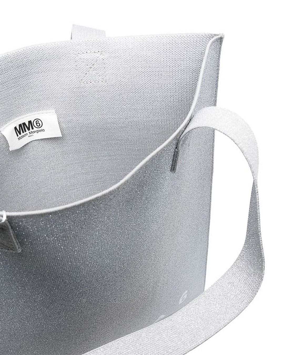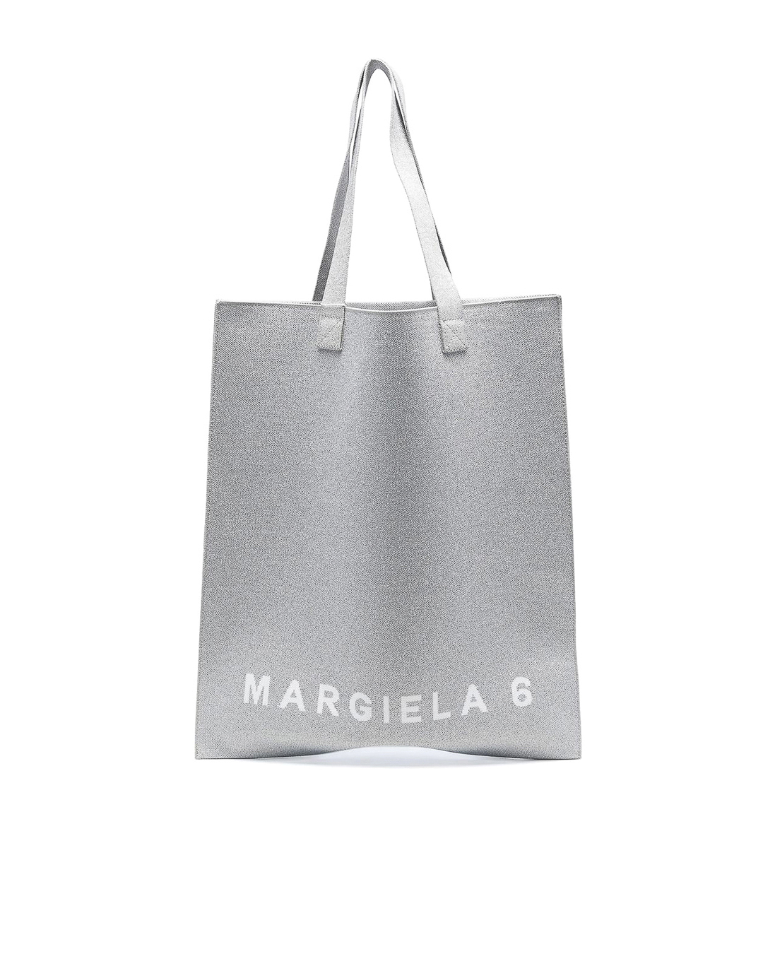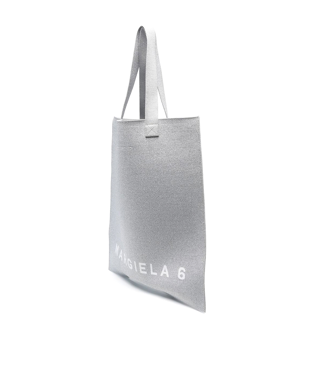 Cумка шопер из плотного материала серого оттенка с блеском дополнена логотипом бренда. Вместительное изделие с двумя удобными ручками.