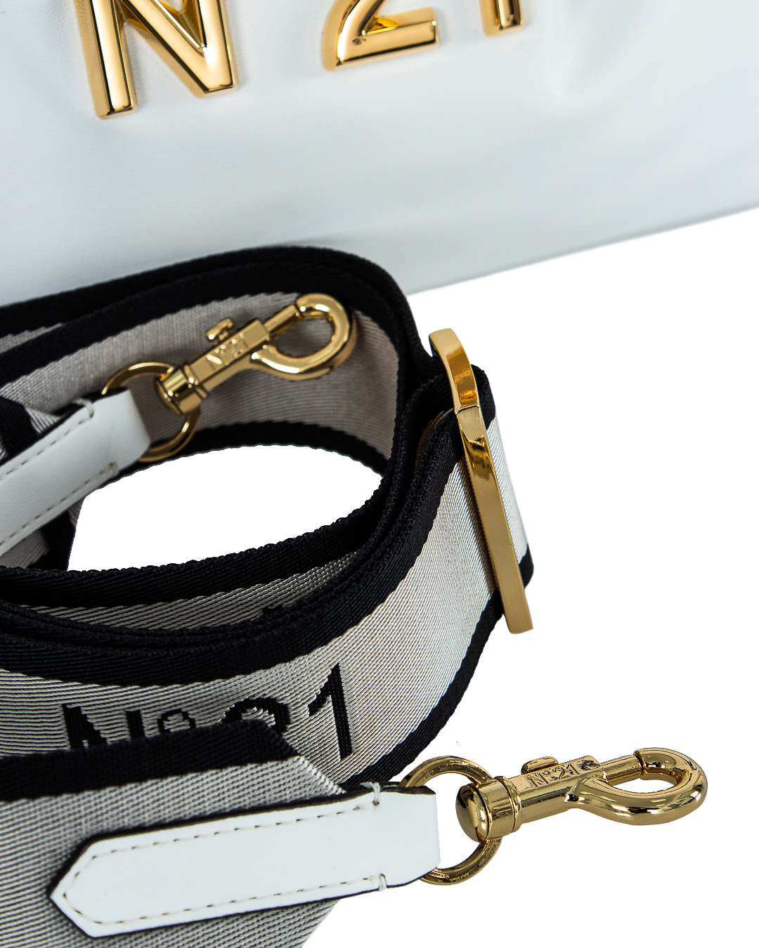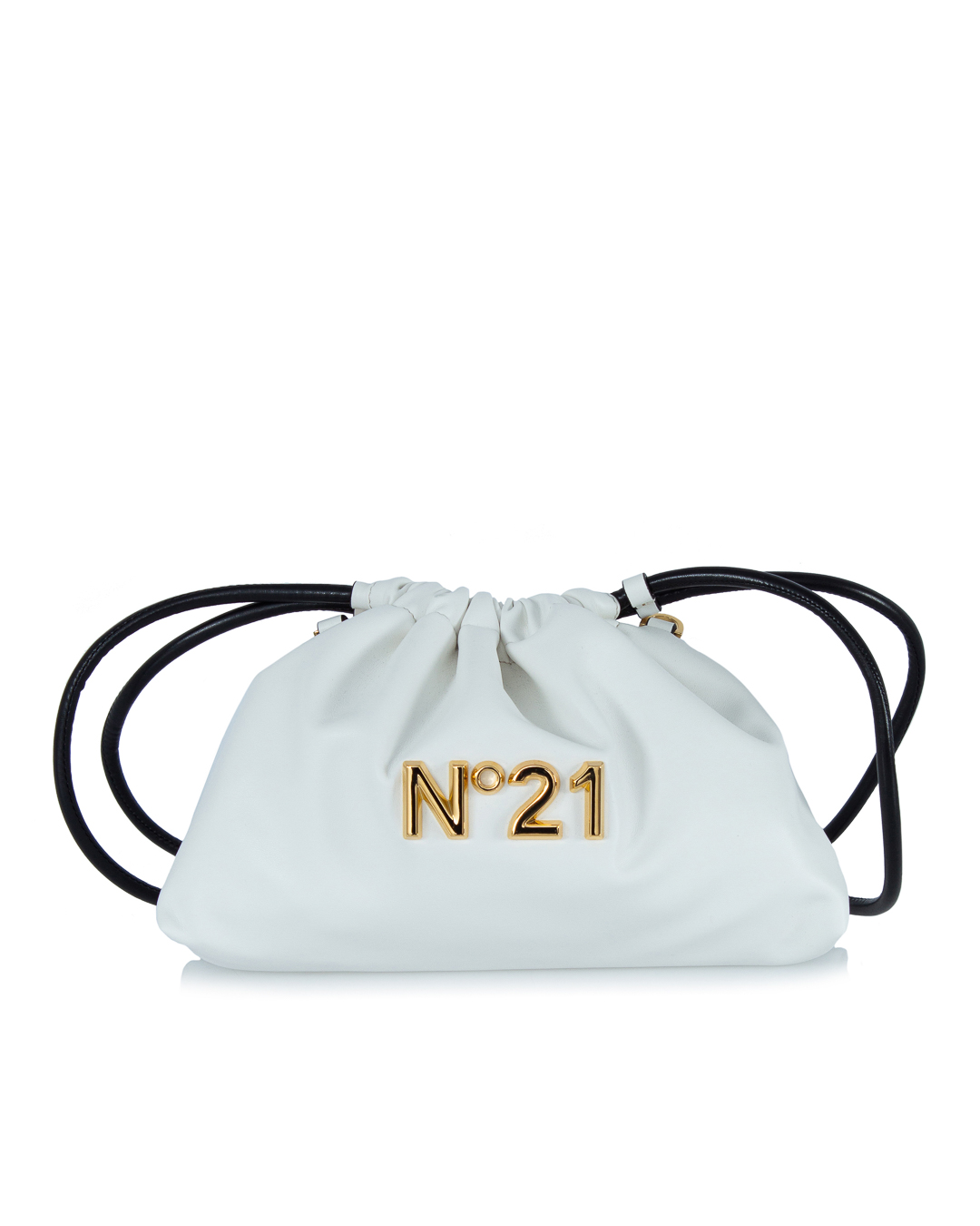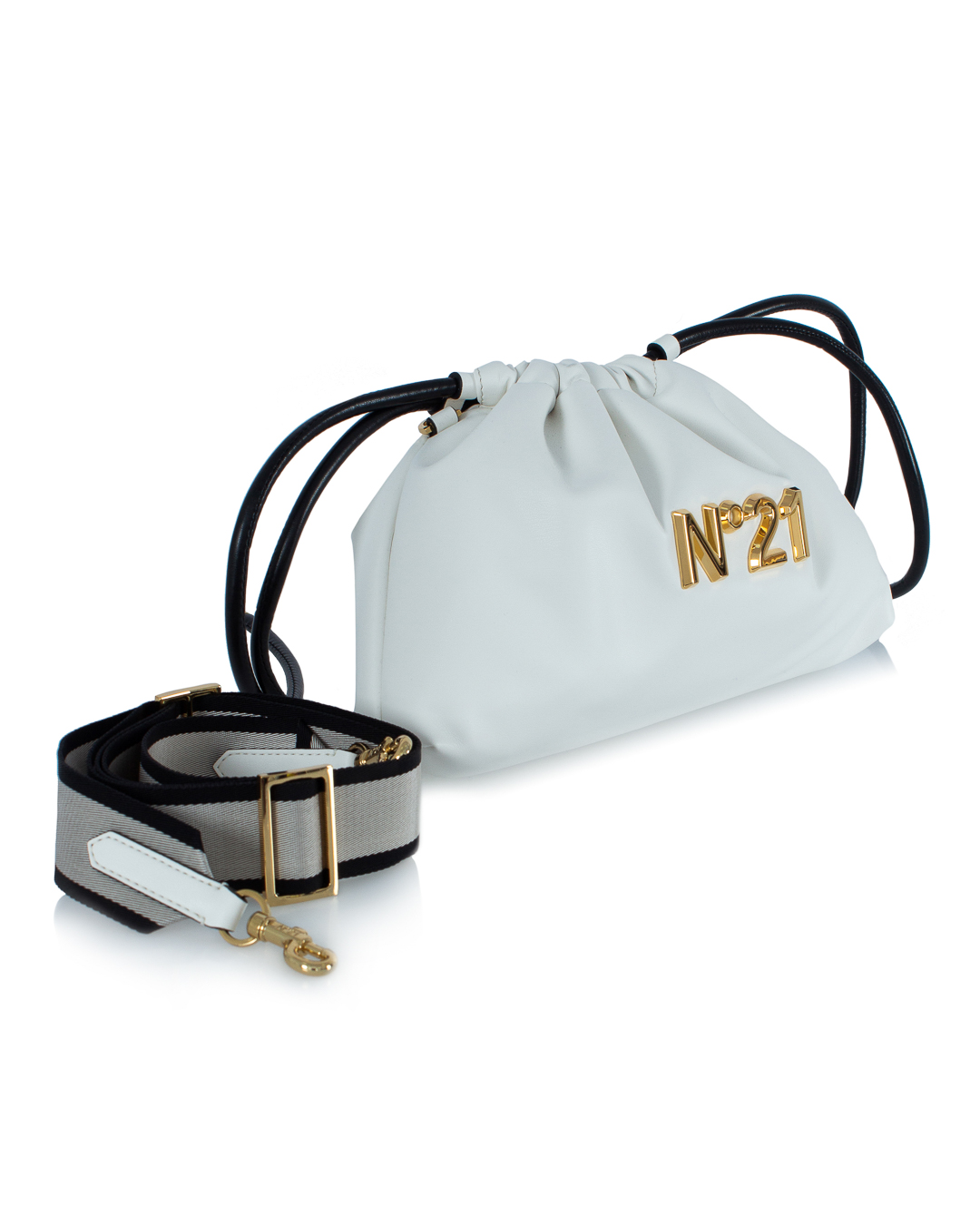 Сумка-мешок № 21 из новой весенне-летней коллекции 2022 выполнена из мягкой матовой экокожи с металлическим логотипом бренда. Изделие с основным отделом с завязками по бокам дополнено съемным текстильным ремнем регулируемой длины.
