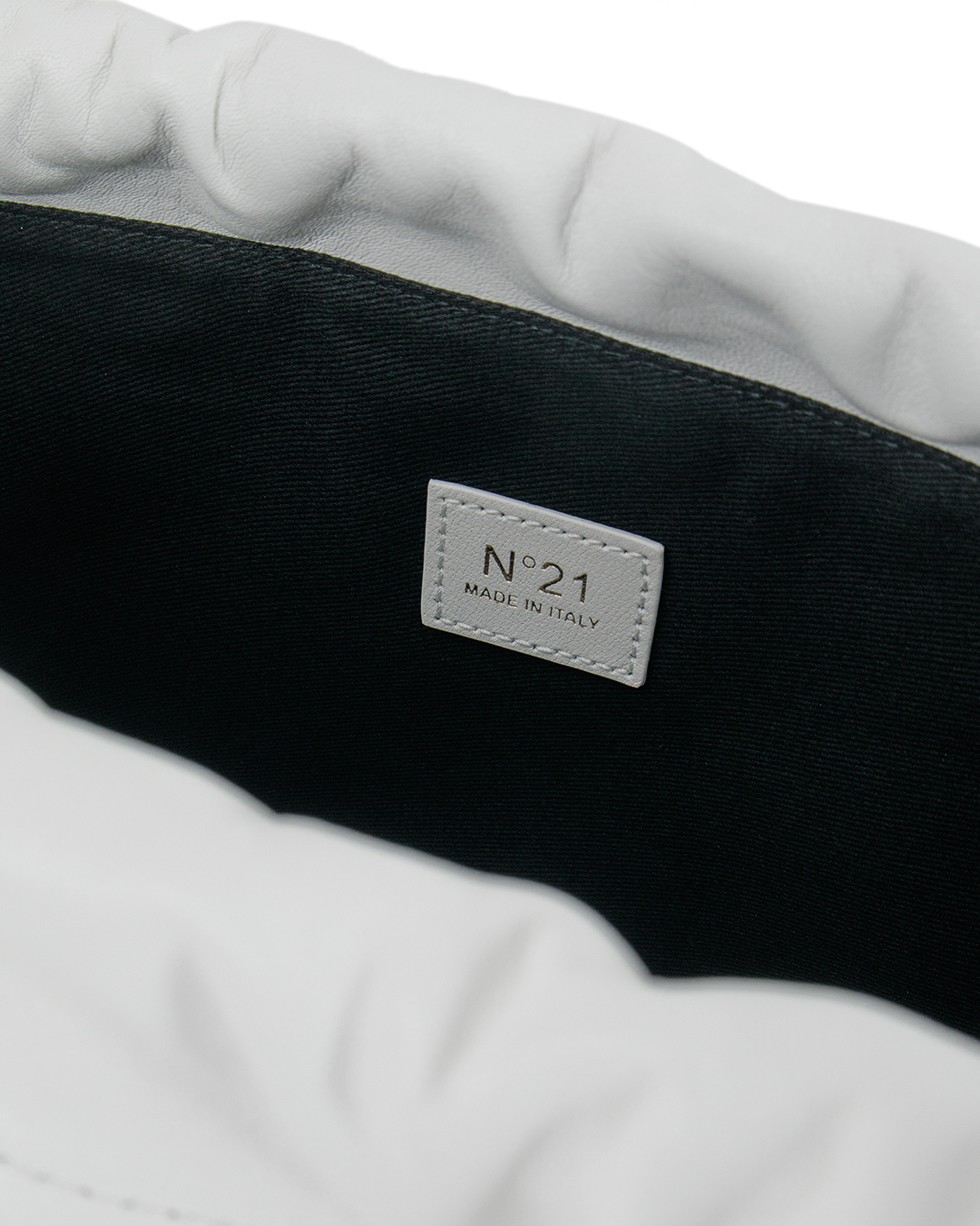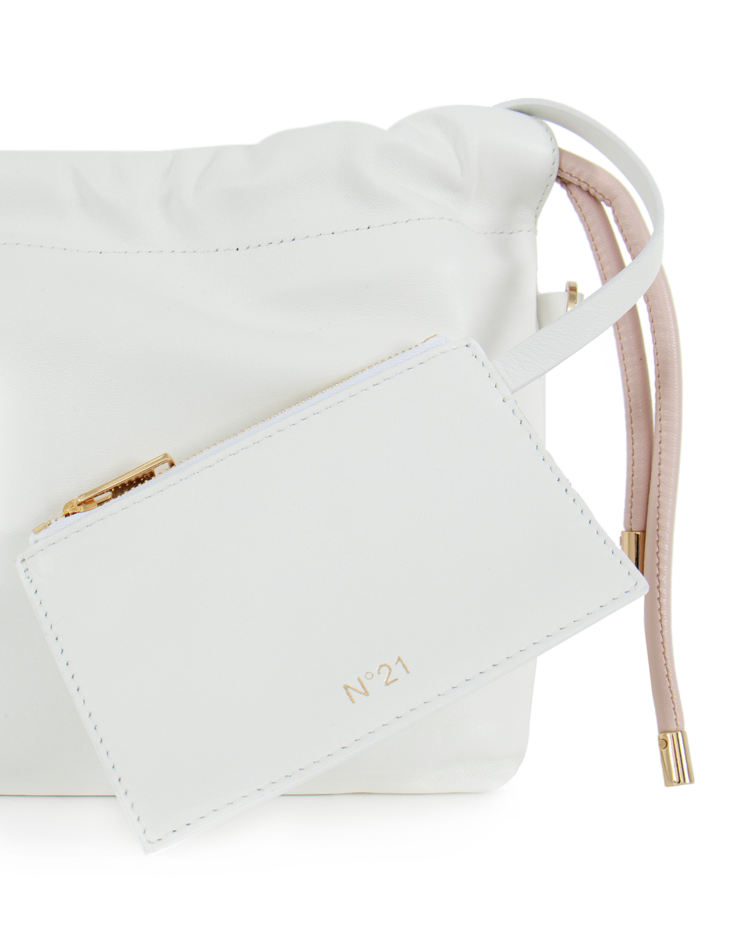 Сумка с минималистичным логотипом бренда № 21. Один отдел дополняет картхолдер на молнии. Съемная цепочка позволяет носить изделие на плече или превращает сумку в клатч. Выполнена из натуральной кожи белоснежного цвета.