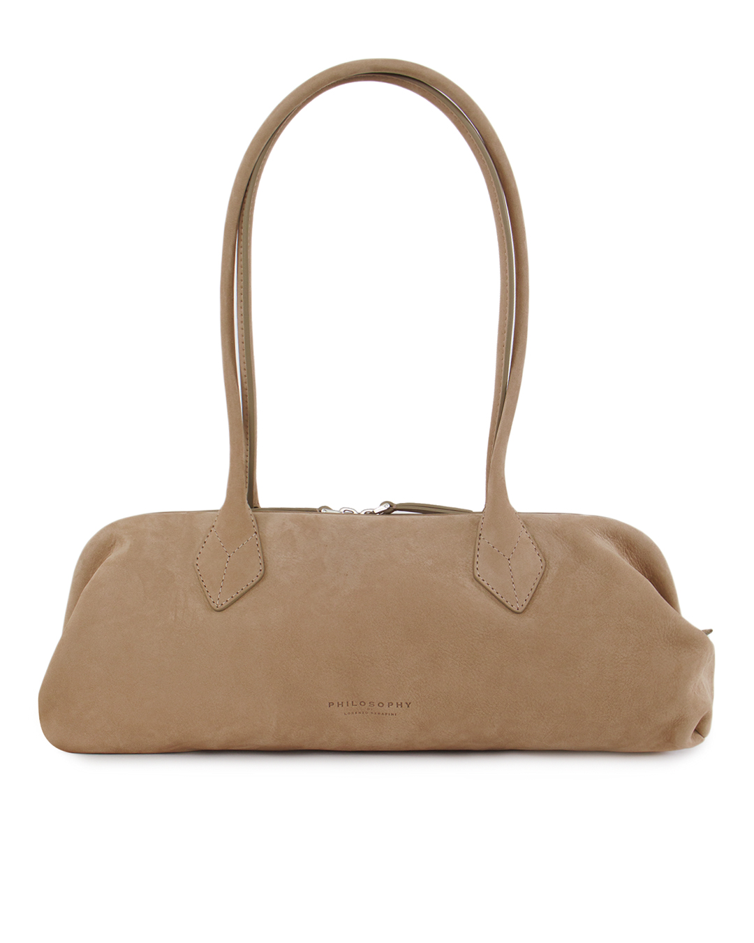 Эта сумка элегантно воплощает в себе изысканный минимализм, являясь идеальным спутником для стильной женщины. Выполненная из замши теплого оттенка тау, она привносит в образ мягкость и изящество. Её вытянутая форма напоминает классический багет, придавая изделию ретро-шарм и утонченность. Длинные, изящные ручки позволяют комфортно носить сумку как на плече, так и в руке, создавая различные варианты стиля и удобства. Застёжка-молния отличается плавным ходом и надёжностью, обеспечивая безопасность содержимого. Внимание к деталям проявляется в аккуратных стежках, подчеркивающих высокое качество и мастерство изготовления. Фирменным элементом дизайна являются усиленные крепления ручек, создающие акцент и добавляющие структуру всему изделию. Внутренняя часть сумки продумана до мелочей — вместительное отделение позволяет удобно организовать все необходимые вещи. Эта сумка подчеркнёт изысканный вкус своей обладательницы, дополняя как деловые наряды, так и повседневные образы, всегда оставаясь в центре внимания благодаря своей утонченной элегантности.