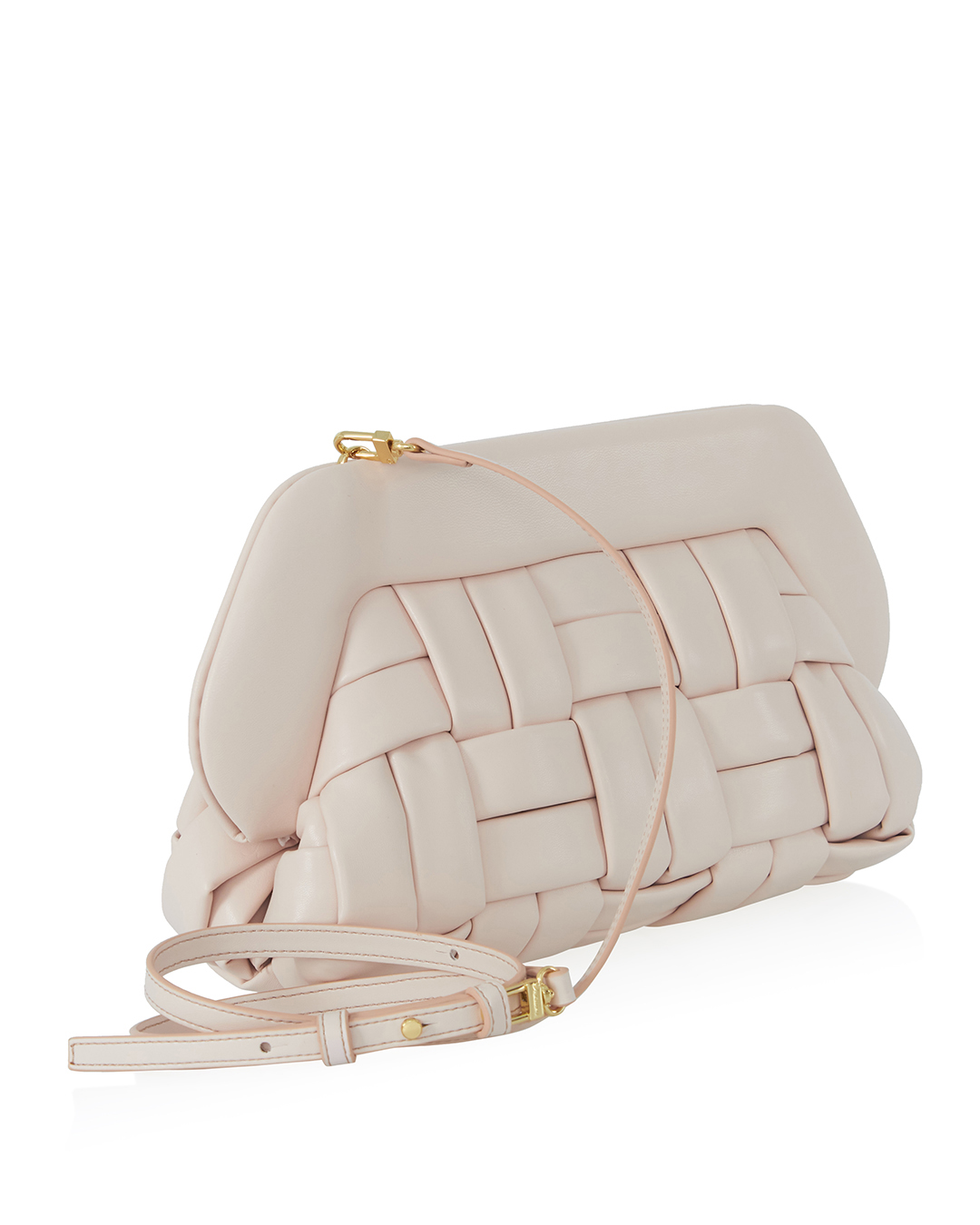 Сумка-клатч BIOS от итальянского бренда THEMOIRÈ сшит из веганской плетеной кожи. Таким же материалом обтянули магнитный рамочный замок. Акцентом на аксессуаре стали мягкие крупные складки, которые делают изделие объемным. Тонкий съемный плечевой ремешок на карабинах. Размеры сумки: высота изделия 19 см, ширина 31 см, глубина 12 см.