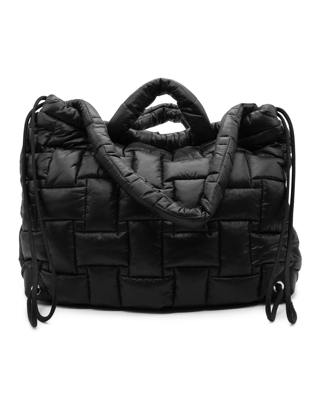 Стеганая сумка VIC MATIE из нейлона черного цвета. Вместительное изделие с основным отделом и двумя удобными ручками.