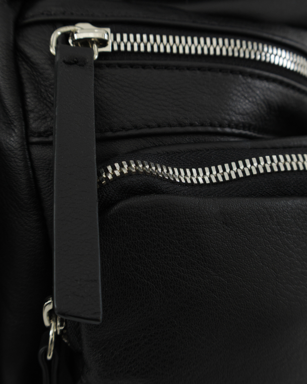 Эта сумка — воплощение повседневной роскоши и функционального дизайна, идеально подходящая для динамичной городской жизни. Глубокий черный оттенок придает ей изысканность и универсальность, делая подходящей для любого случая. Выполненная из мягкой высококачественной кожи, сумка обладает естественным блеском и тактильной приятностью. Центральным акцентом здесь являются крупные внешние карманы, украшенные надежными металлическими молниями, что добавляет изделию дополнительный объем и нотку индустриального шика. Широкий и удобный ремень позволяет носить сумку на плече, обеспечивая комфорт даже при длительном использовании. Фурнитура из полированного металла не только усиливает прочность конструкции, но и добавляет стильные акценты. Эта модель идеально сочетает в себе практичность и модные тренды, подчеркивая безупречный вкус своей обладательницы и ее стремление к стилю и комфорту.