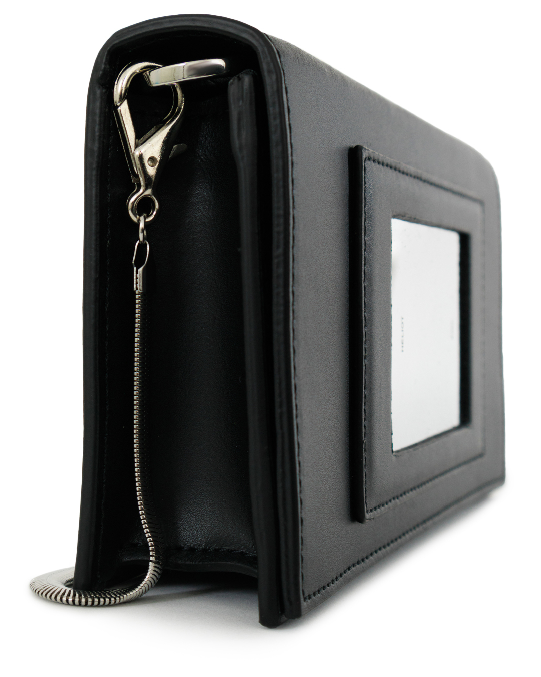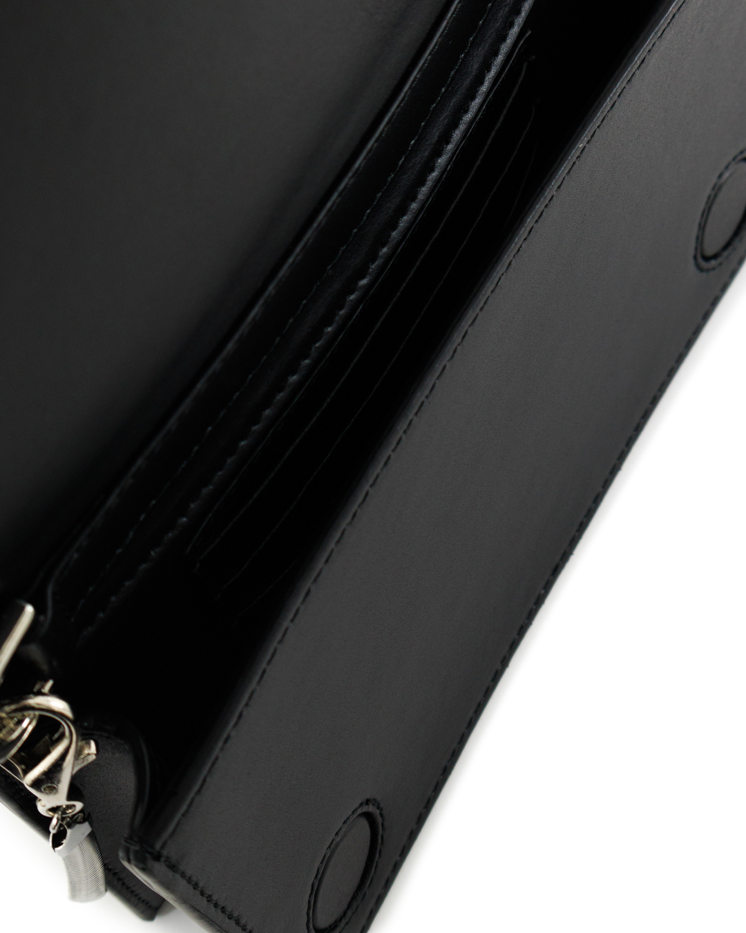 Этот клатч — воплощение минималистичной элегантности и непревзойденного стиля. Изготовленный из гладкой черной кожи, он излучает утонченность и изысканность, идеально подходя для любого современного гардероба. Четкие линии и прямоугольная форма создают стройный и лаконичный силуэт, подчеркивающий приверженность к современному дизайну. Клатч дополнен длинной тонкой цепочкой, что позволяет носить его на плече или через тело, добавляя универсальности и комфорта в использование. Детали отделки включают изящные металлические акценты, которые добавляют легкий блеск и акцентируют внимание на точности исполнения. Клапан сумки декорирован минималистичным логотипом, что придаёт дополнительную нотку элегантности и брендовую уникальность. Внутреннее пространство тщательно продумано для функциональности — здесь достаточно места для необходимых мелочей, и все элементы организованы с акцентом на практичность. Этот клатч станет идеальным завершением как вечернего, так и повседневного образа, добавляя тонкий элемент стиля и утонченности.