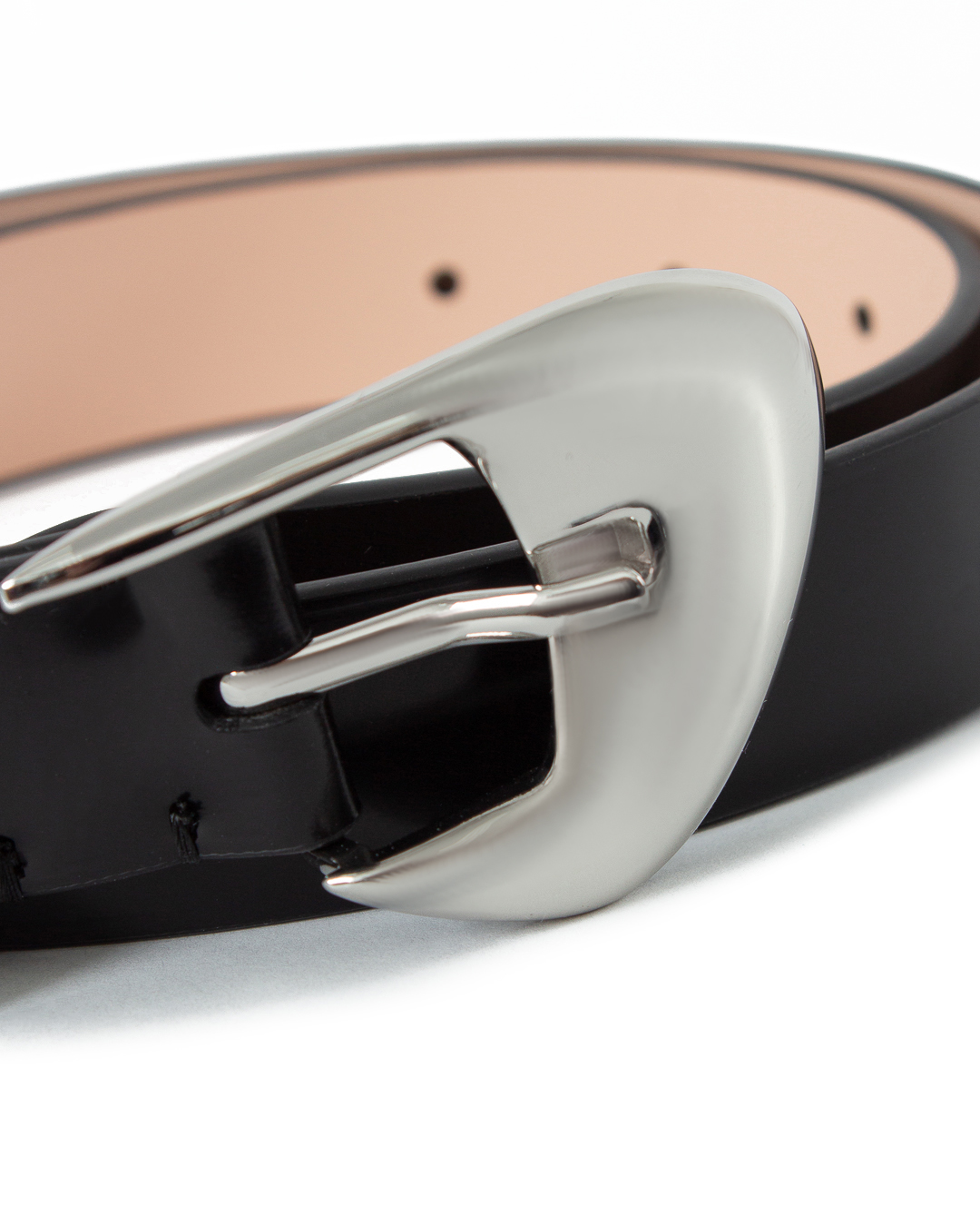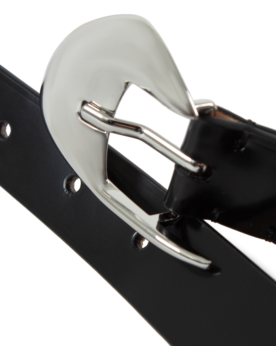 Этот эффектный кожаный ремень выделяется скульптурной полированной пряжкой, которая придает аксессуару оригинальный концептуальный акцент. Изделие регулируемого размера  изготовлено из итальянской коровьей кожи.