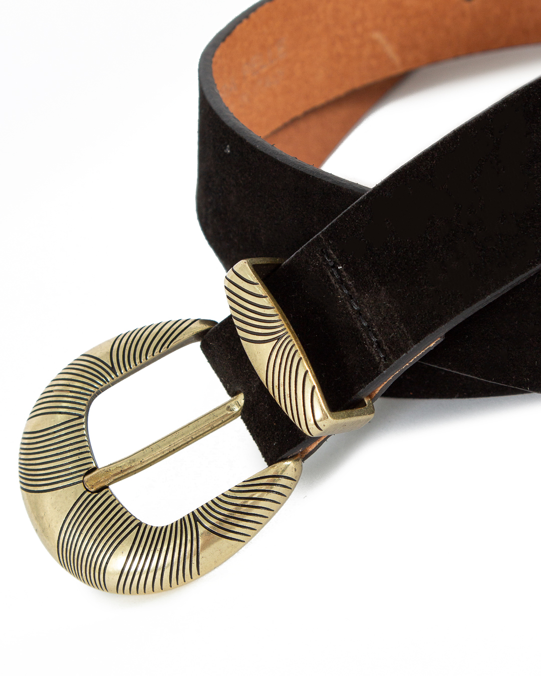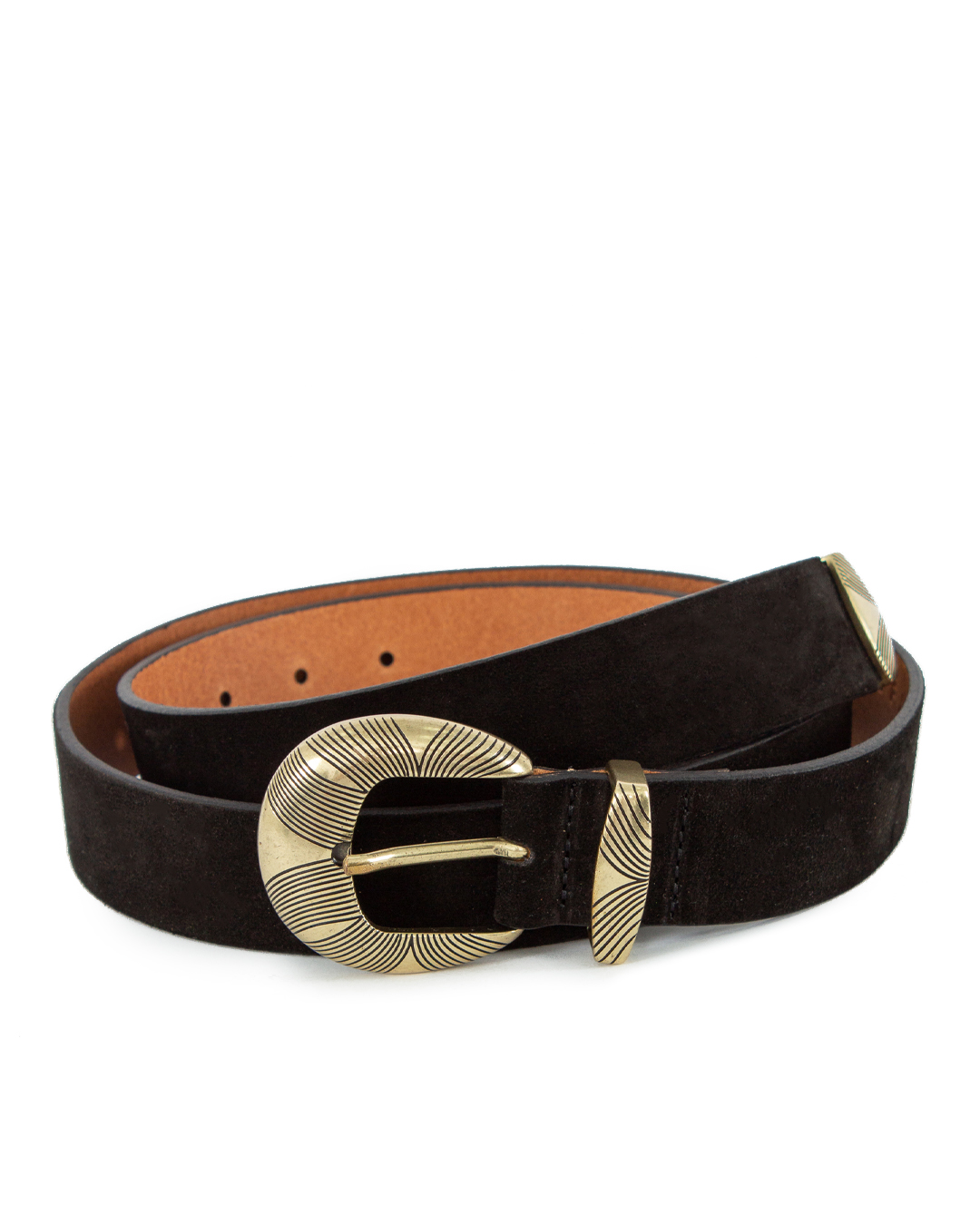 Ремень Sfizio из натуральной кожи черного цвета. Аксессуар выполнен с застежкой на металлическую пряжку.