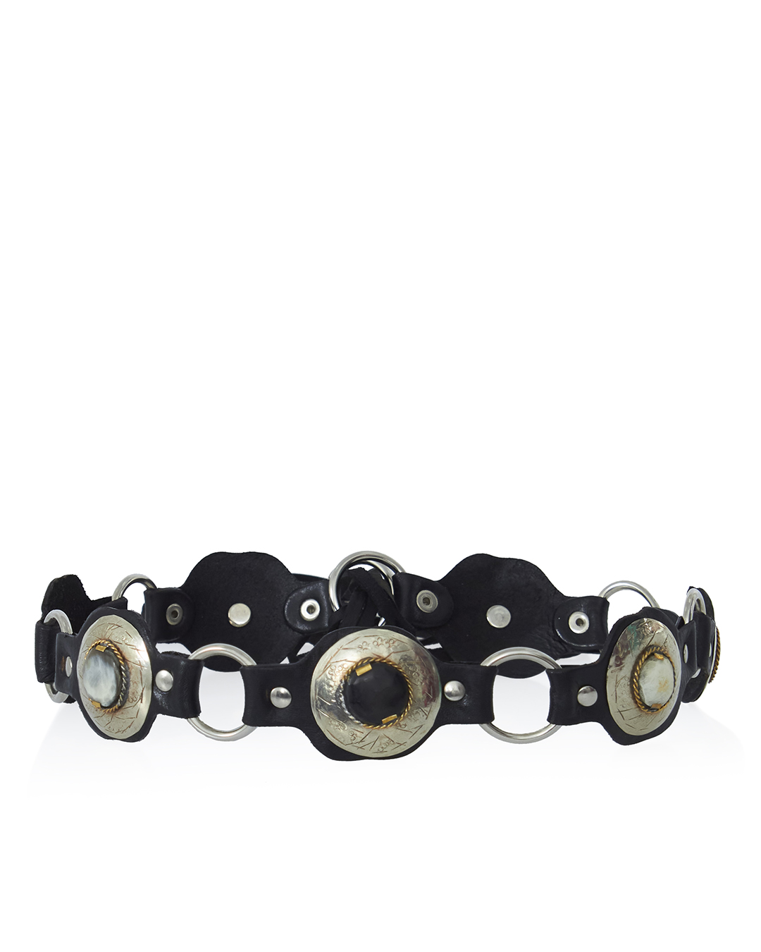 Кожаный ремень Sfizio дополнен винтажными декоративными элементами и камнями.