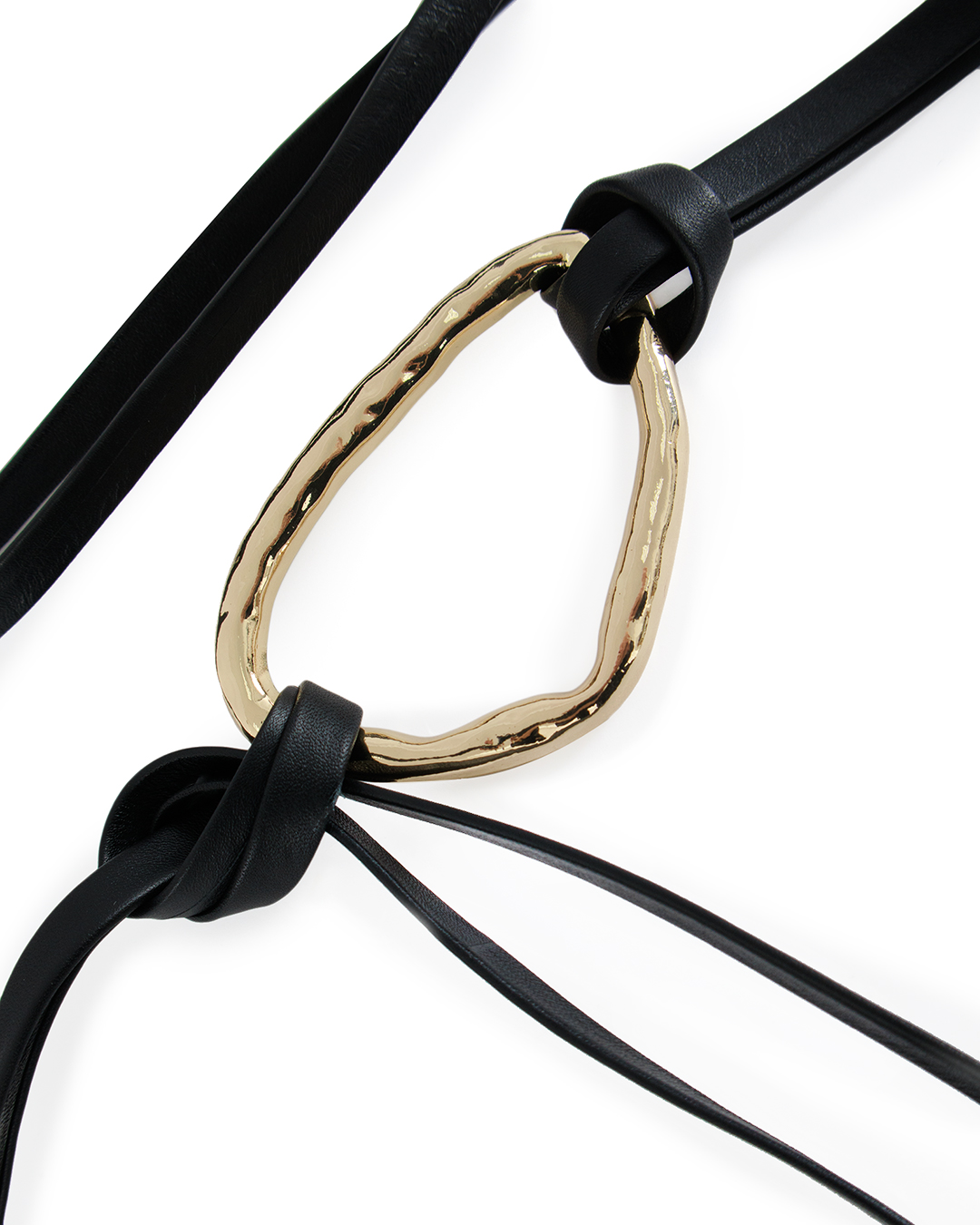 Этот пояс — воплощение современного минимализма и утончённого стиля, который легко добавит изюминку в любой образ. Тонкие ремешки создают изящную линию, подчёркивающую талию и придающую акцент воздушности и лёгкости. Центральным элементом является изысканная пряжка необычной органической формы, выполненная в благородном золотистом оттенке. Эта деталь играет роль стильного акцента, привлекая внимание и расставляя смелые модные акценты. Как бы опоясывающий контур, этот пояс идеально подходит для сочетания с платьями, блузками или комбинезонами, добавляя им завершённость и гармонию. Этот аксессуар станет прекрасным завершением как повседневного, так и вечернего ансамбля, подчеркнув индивидуальность и утончённый вкус его обладательницы.