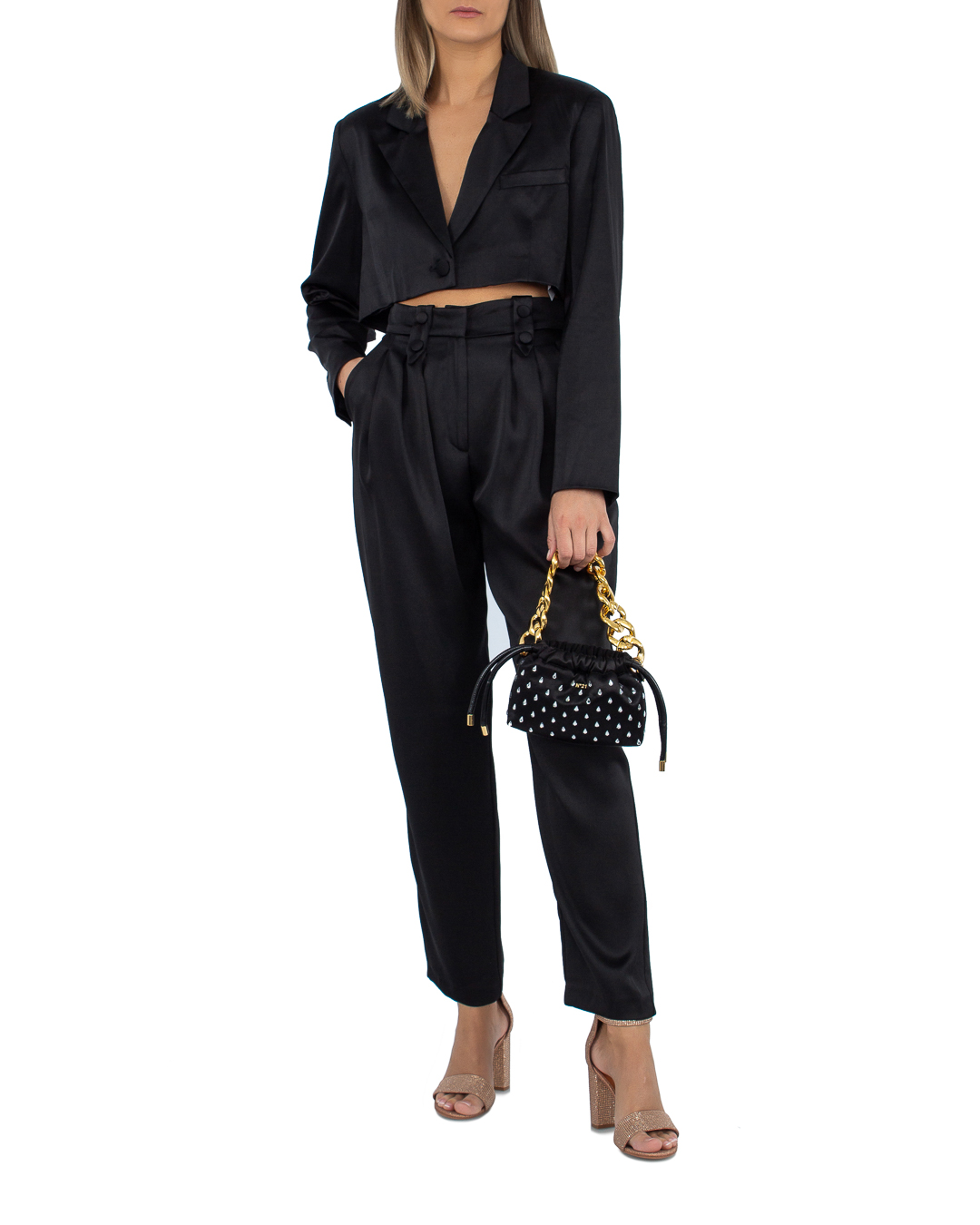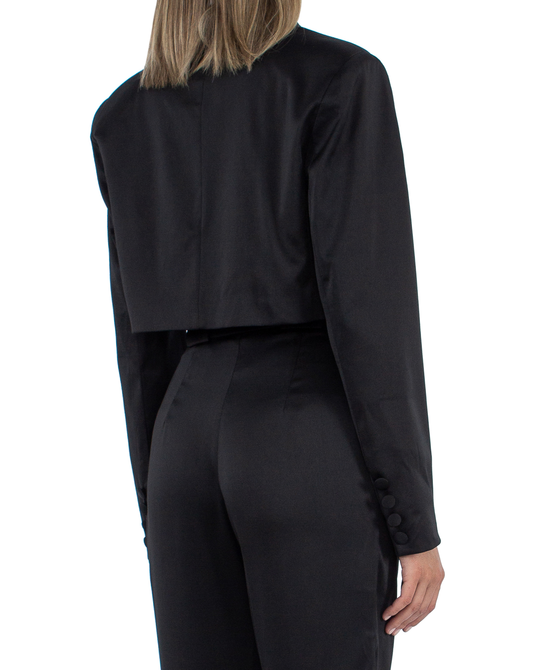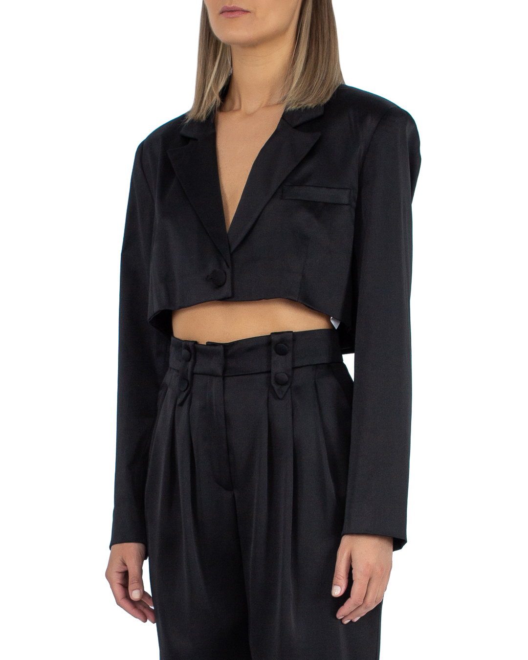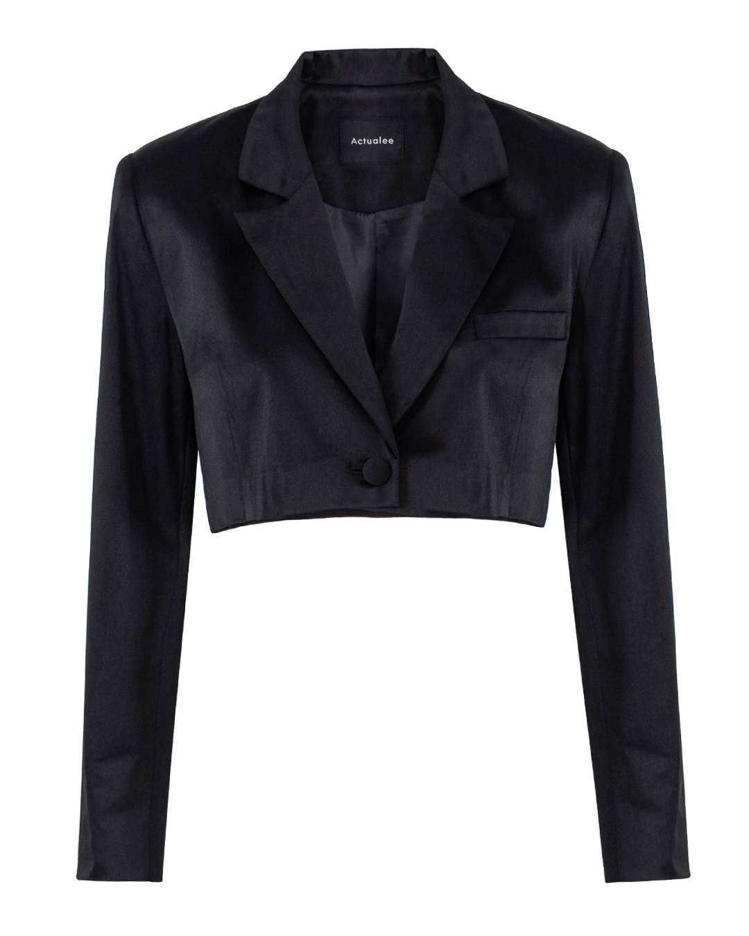 Жакет ACTUALEE сшили из атласного материала. Изделие укороченного силуэта с застежкой на пуговицу.