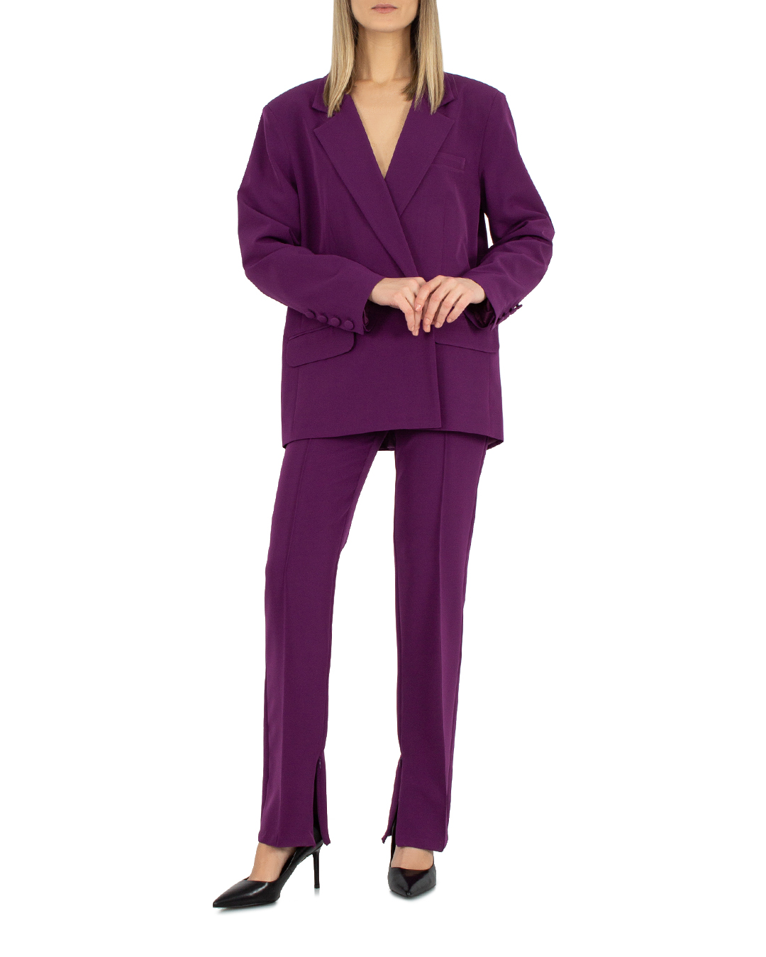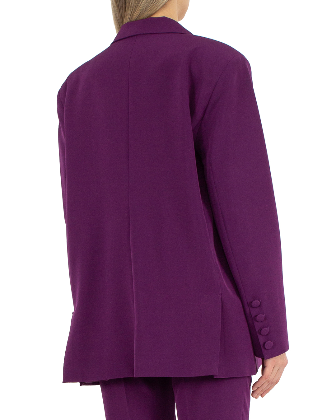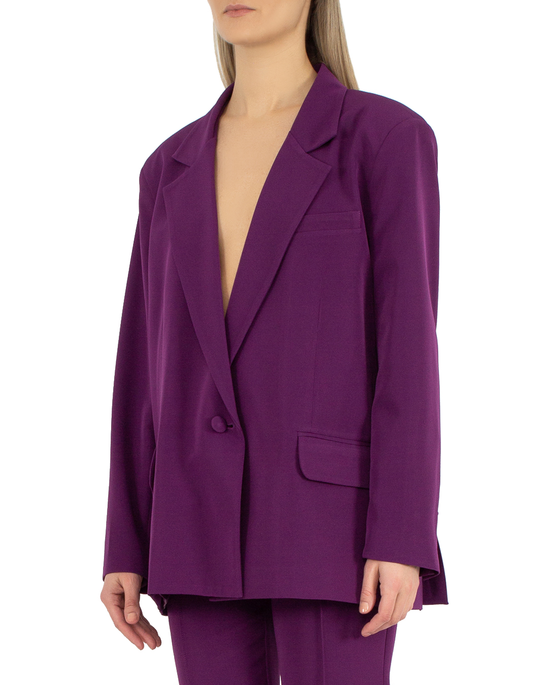 Жакет ACTUALEE насыщенного сливового оттенка. Модель прямого свободного силуэта с застежкой на пуговицу и двумя прорезными карманами по бокам с клапанами.