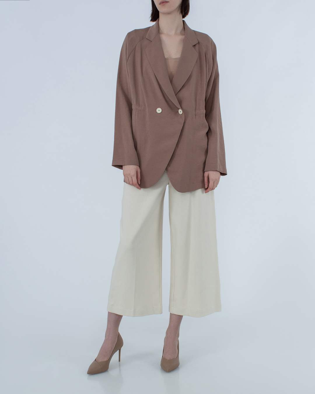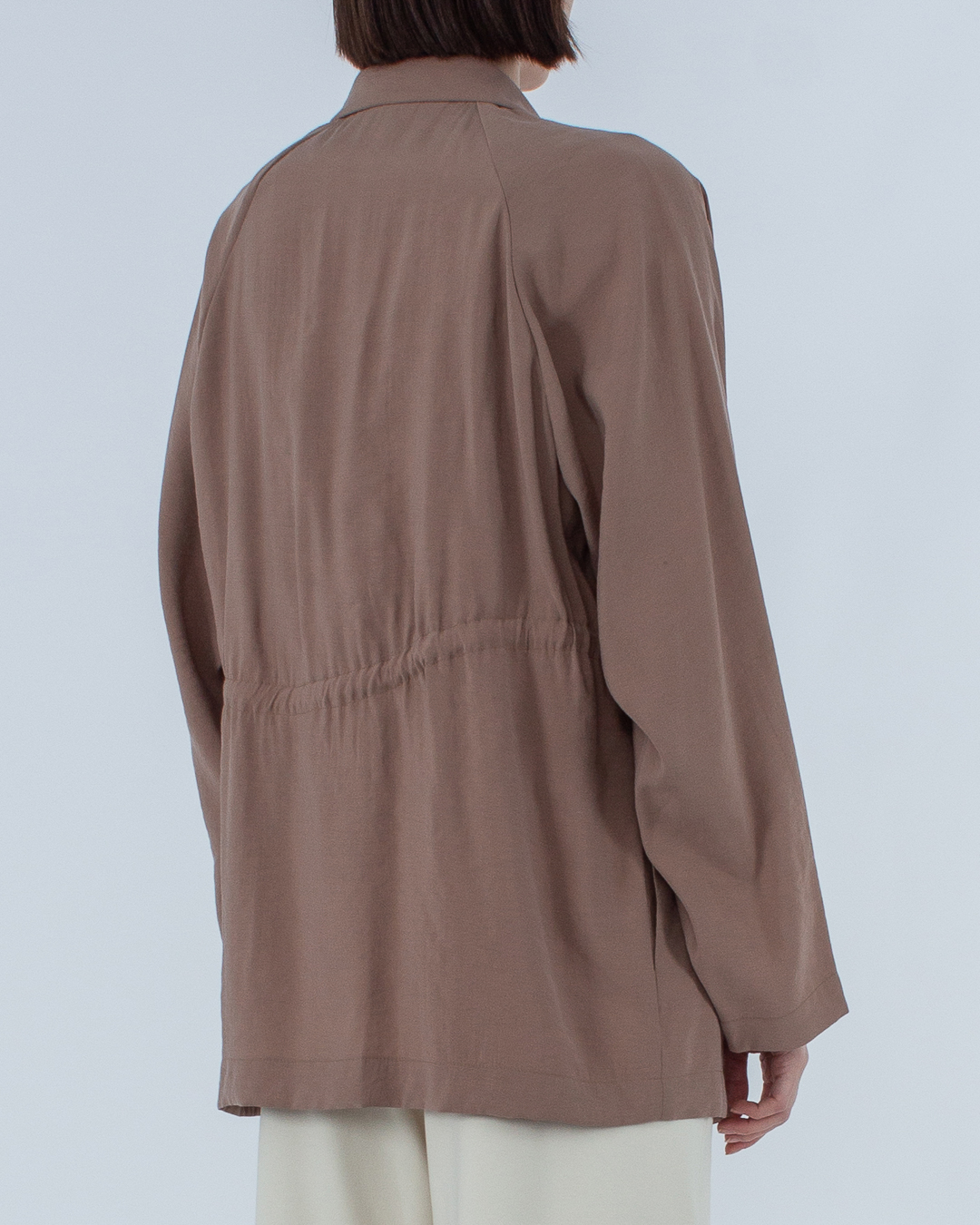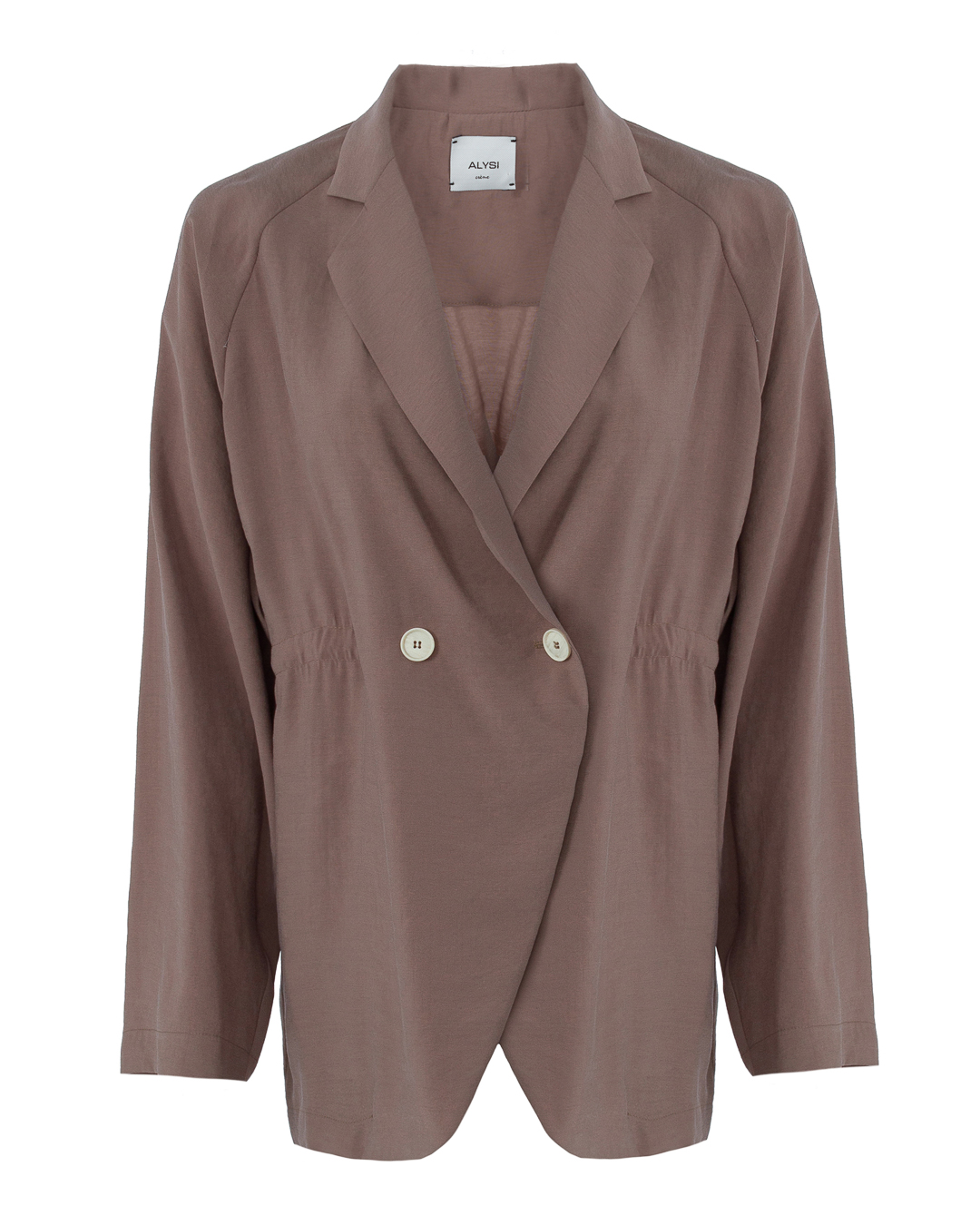 Жакет ALYSI из новой весенне-летней коллекции 2022 выполнен из неэластичного модала оттенка какао. Непринужденный свободный крой с застежкой на пуговицы дополнен легким акцентом на талию. Отложной воротник и широкие рукава-реглан.