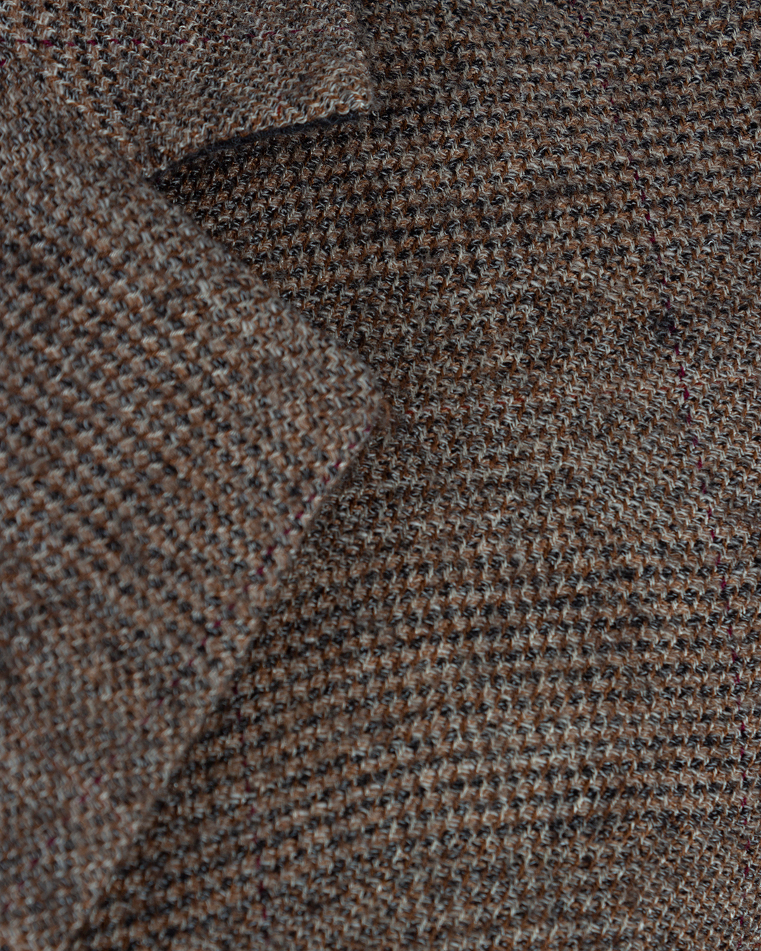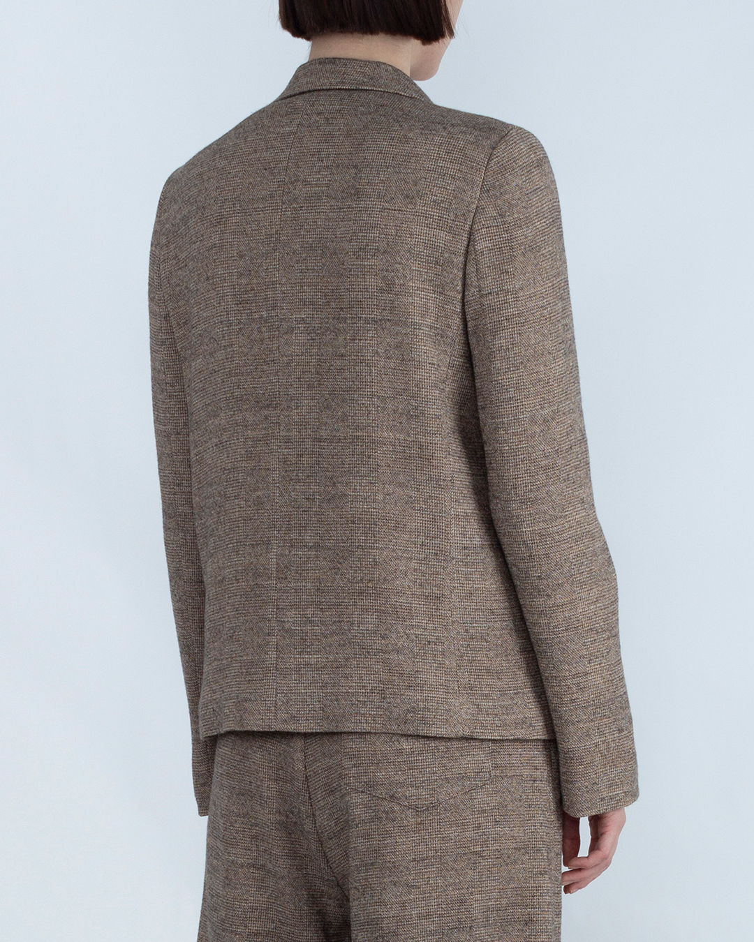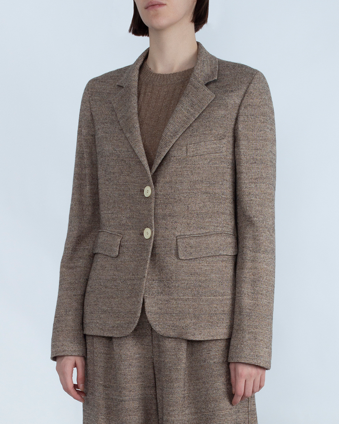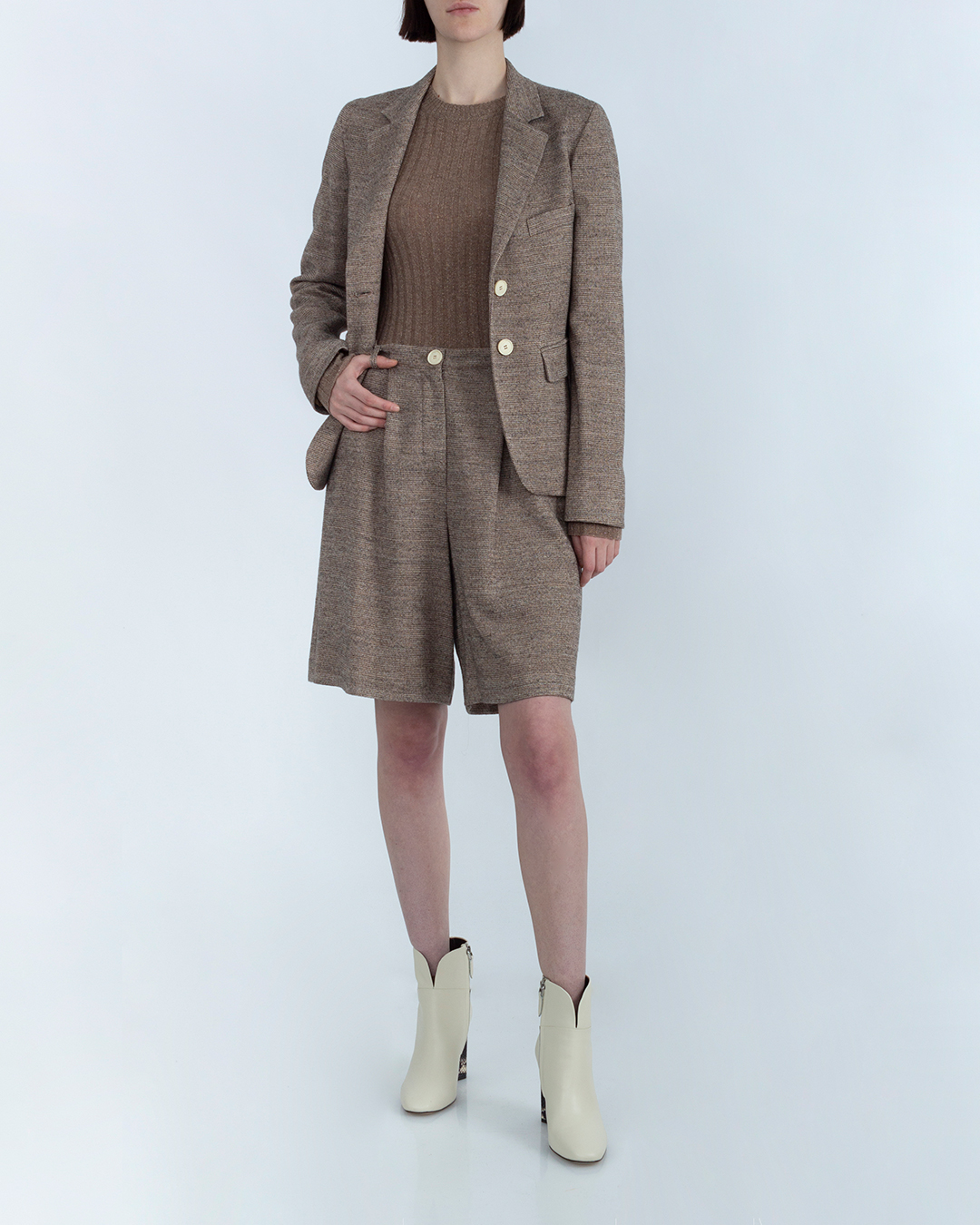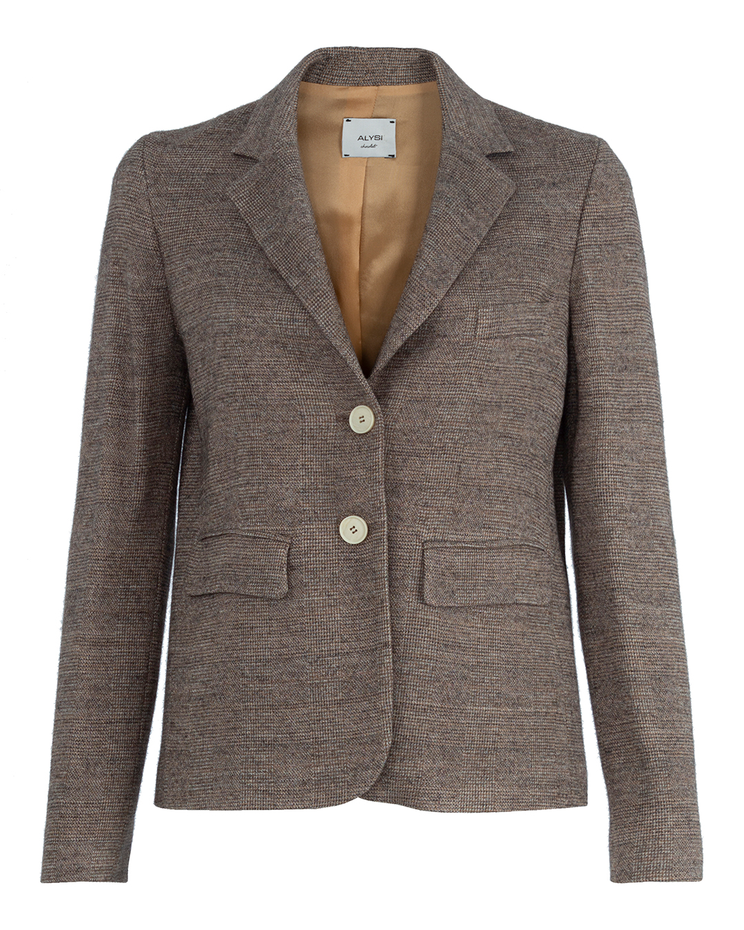 Жакет ALYSI из смесового материала с добавлением хлопка и шерсти коричневого оттенка. Модель прямого силуэта с застежкой на пуговицы дополнена отложным воротником и двумя прорезными карманами с планками.