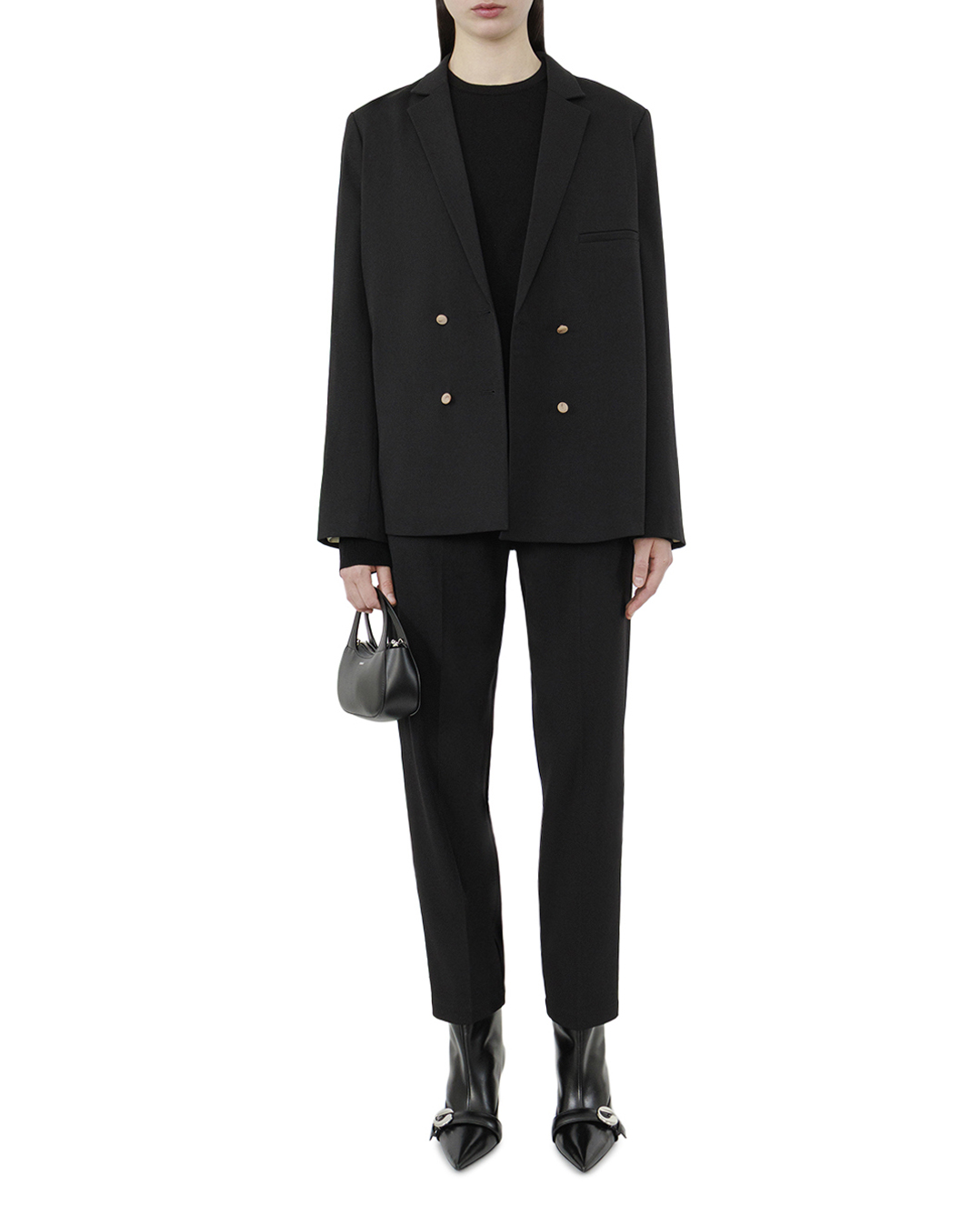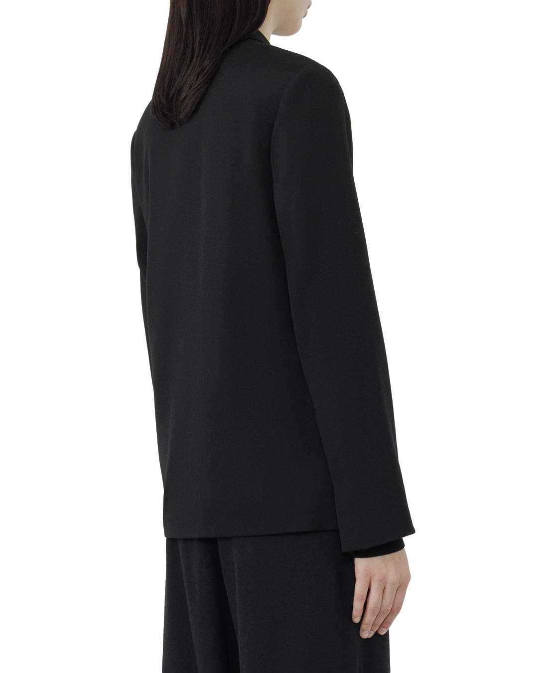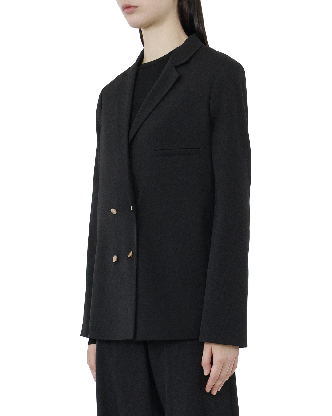 Этот жакет воплощает элегантность и современный стиль, выполненный в насыщенном чёрном оттенке, который символизирует универсальность и изысканность. Двубортный фасон акцентирует внимание на классическом силуэте, придавая образу изящество и деловую строгость. Тонкие лацканы подчёркивают элегантность линий, а встроенный карман срезом добавляет акцент в виде минималистичного штриха. Контрастные пуговицы светлого оттенка не только выполняют функциональную роль, но и служат стильным элементом декора, привлекая внимание к центральной части жакета. Подкладка с тонкой полоской придаёт модели дополнительное измерение, создавая интригу и подчёркивая внимание к деталям. Жакет слегка притален для создания утончённого силуэта, подчеркивающего женственную фигуру. Такой жакет станет изюминкой вашего гардероба, идеально сочетаясь как с официальной одеждой, так и с повседневными деловыми ансамблями, добавляя уверенности и стиля в любой обстановке.