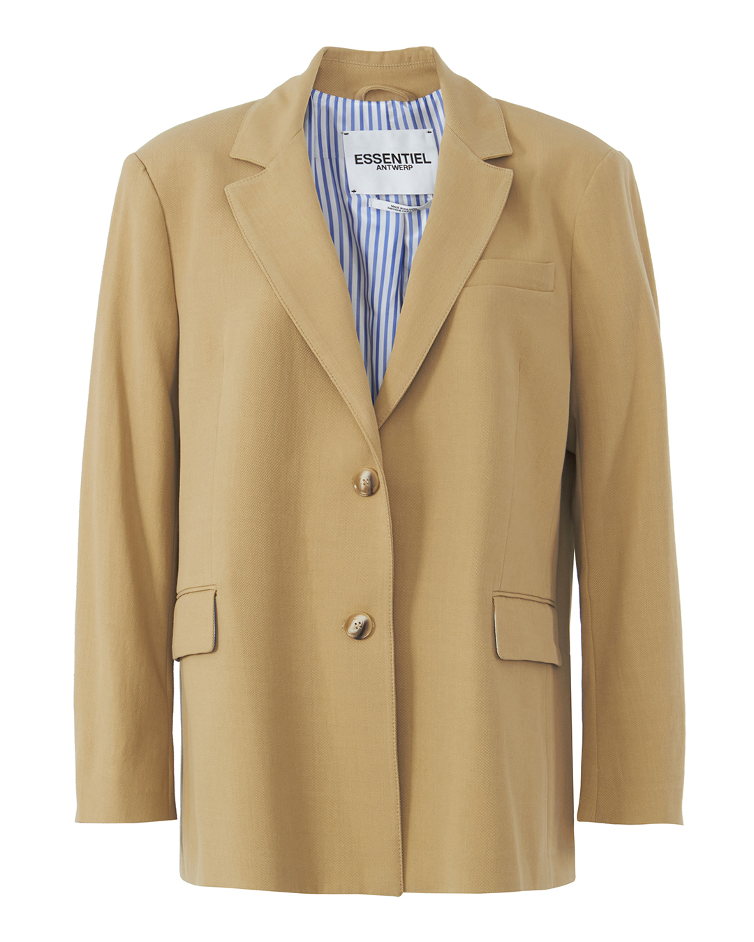 Жакет Essentiel сшит из хлопка на подкладке. Модель прямого свободного силуэта с застежкой на черепаховые пуговицы дополнена объемными спущенными плечиками и двумя прорезными карманами с клапанами по бокам.