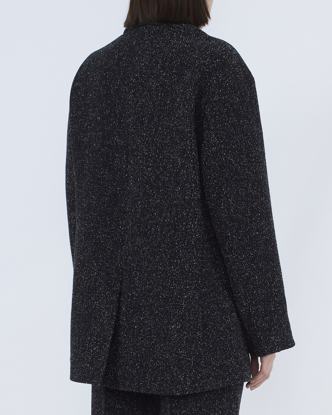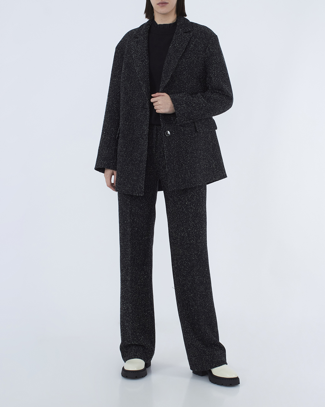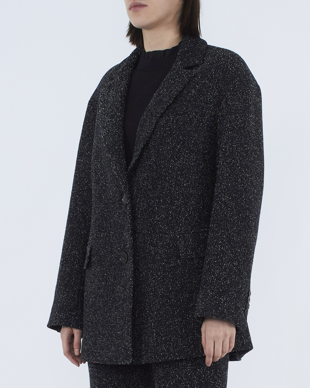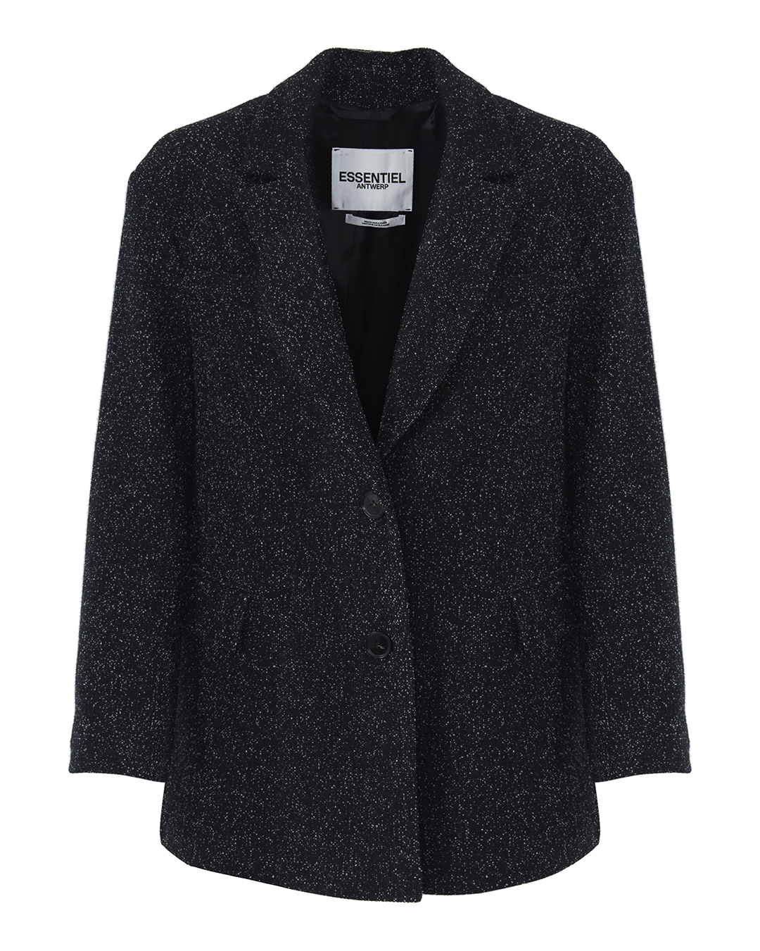 Жакет Essentiel выполнен из буклированного материала. Модель прямого силуэта с застежкой на пуговицу, спущенной линией плеч и длинными рукавами.