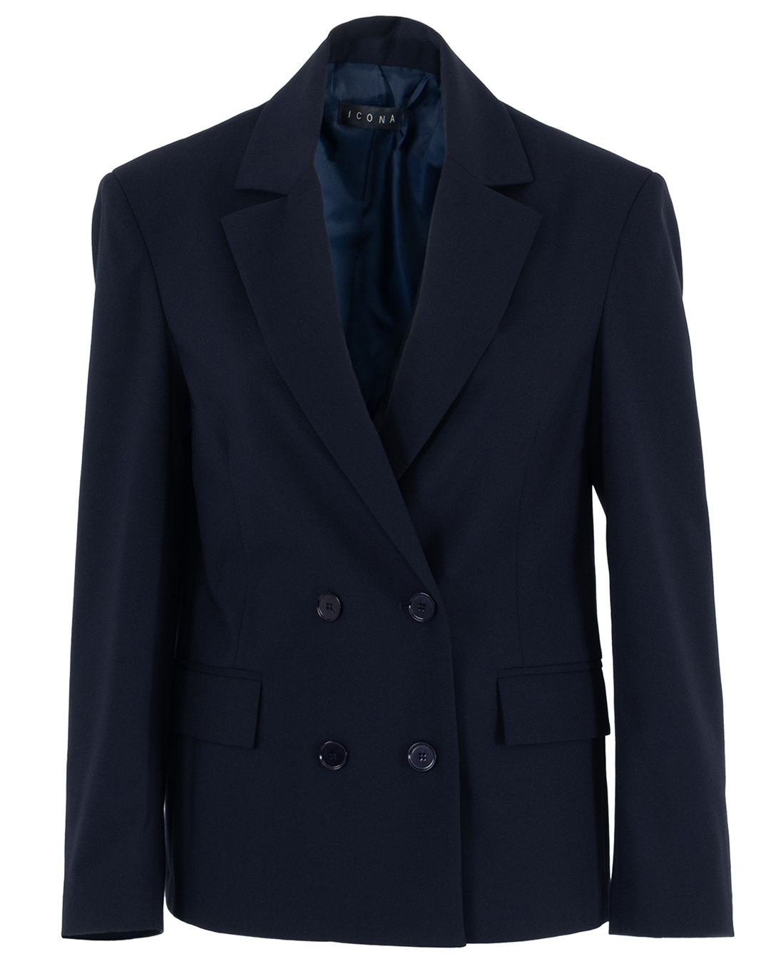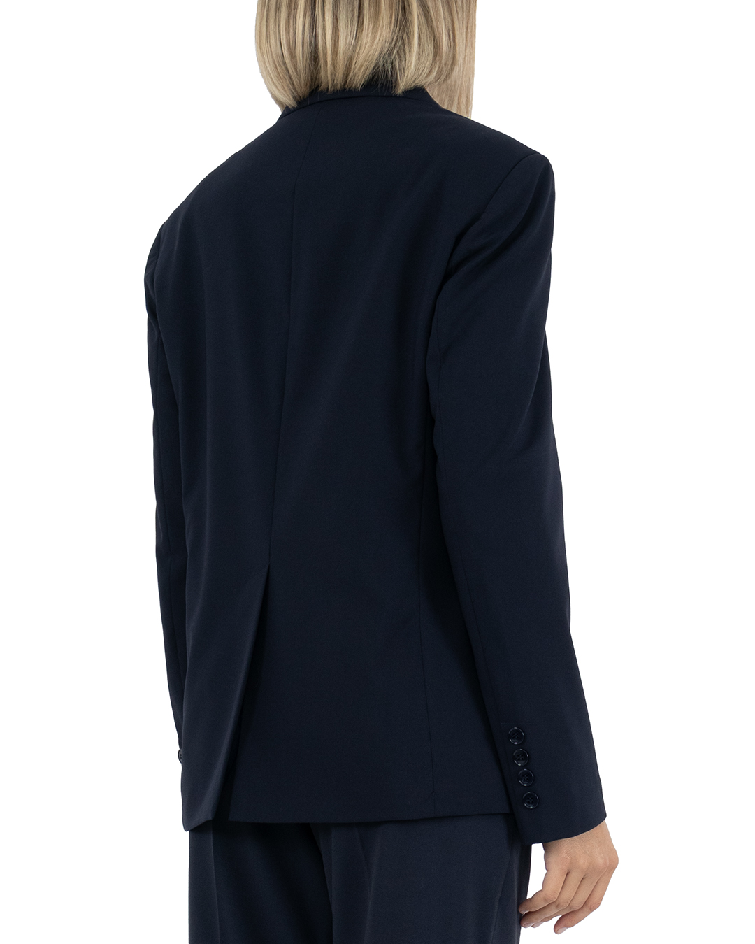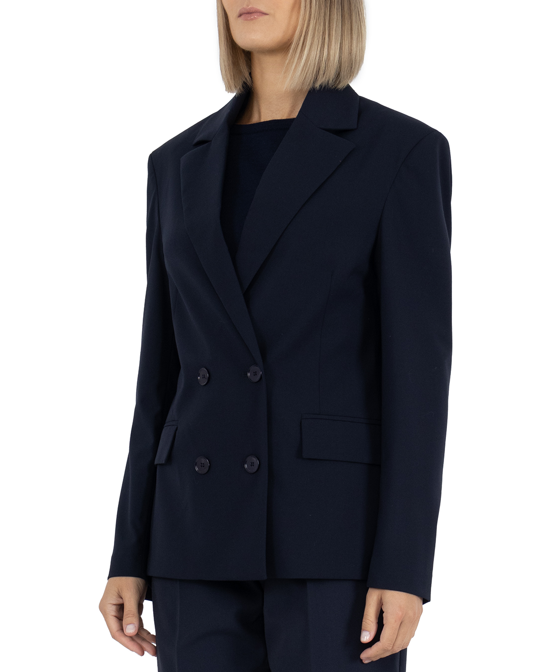 Классический двубортный пиджак станет фоном для создания модных образов. Носите прямой жакет в составе делового костюма с парными брюками или позвольте трендовое сочетание с джинсами. Ткань с добавлением шерсти и эластана мягко прилегает и сохраняет форму. По бокам карманы с клапанами.