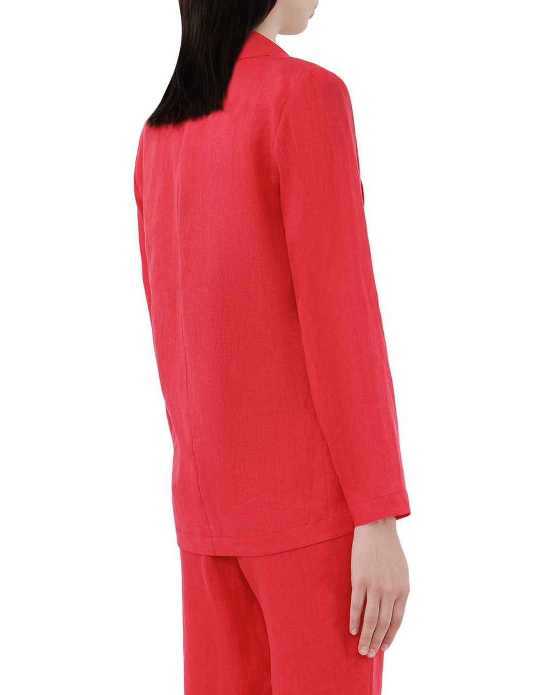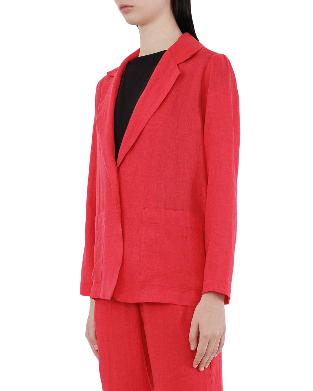 Этот жакет притягивает внимание своей выразительностью и легкостью. Выполненный в ярком коралловом цвете, он добавляет свежести и энергии в любой образ, становясь акцентным элементом гардероба. Нежная текстура ткани говорит о высоком качестве и изысканности. Классический крой с ровными линиями создает чистый и структурированный силуэт, который выгодно подчеркивает фигуру. Прямые лацканы добавляют жакету традиционной элегантности, а застежка на одну пуговицу придает ему современный вид и легкость. Практичные накладные карманы завершают образ, добавляя модели функциональности, сохраняя при этом её эстетическую привлекательность. Рукава с аккуратной строчкой подчеркивают внимание к деталям и придают завершённость дизайну. Этот жакет — идеальный выбор для создания стильных и уверенных образов как в рабочей обстановке, так и в непринуждённой атмосфере. Он прекрасно сочетается как с классическими брюками, так и с легкими юбками, отражая вашу индивидуальность и чувство стиля.