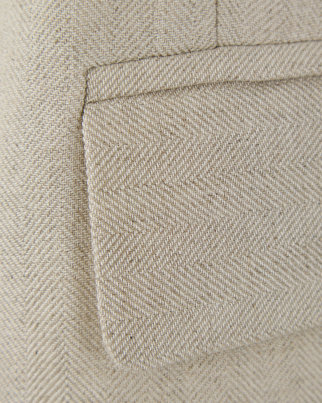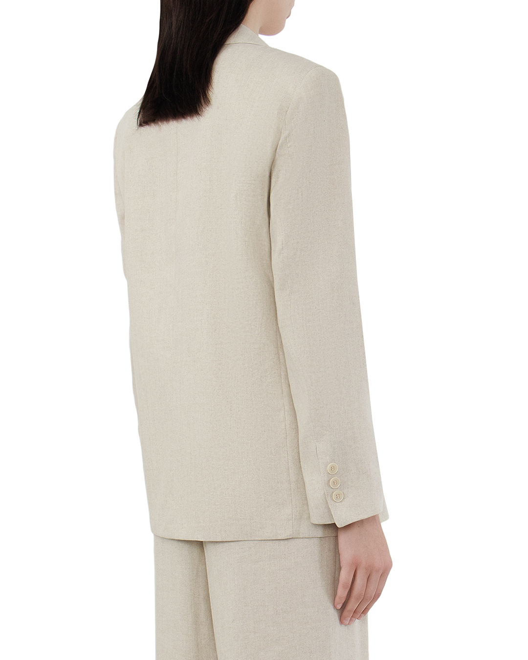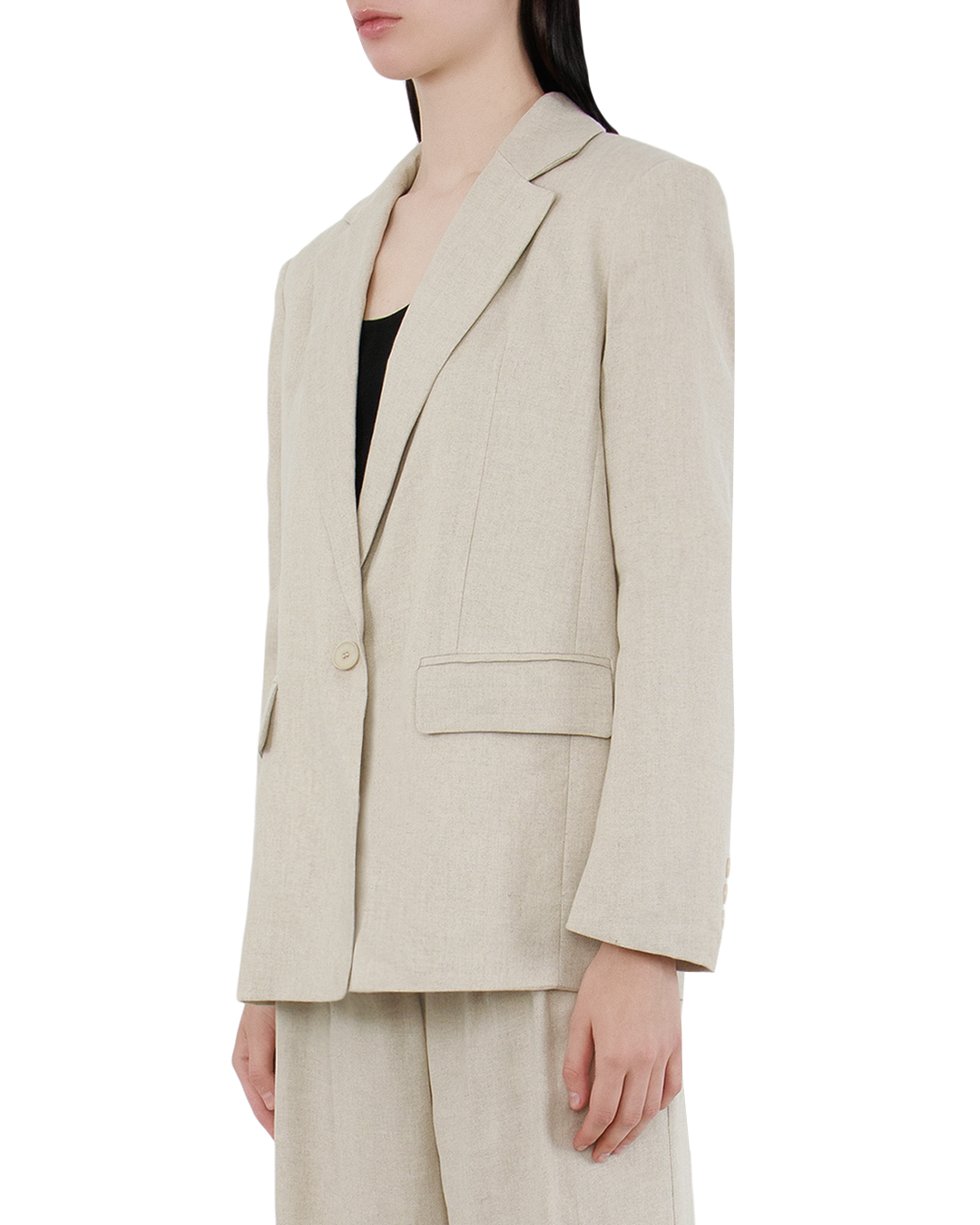 Этот жакет — воплощение мягкой элегантности и изысканной простоты. Выполненный в приглушенном бежевом оттенке, он привносит в образ утонченную нейтральность, позволяя легко комбинировать с разнообразными элементами гардероба. Высококачественная текстура ткани обеспечивает комфорт и презентабельный вид. Классический крой и ровные линии создают идеальный архитектурный силуэт, удлиняя фигуру и добавляя образу строгость и структурированность. Лацканы традиционной формы придают классическую изысканность и гармонично обрамляют зону декольте. Застежка на одну пуговицу добавляет современности, а клапанные карманы усиливают функциональный аспект, оставаясь при этом стильной деталью. Аккуратная внутренняя отделка и внимательные швы подчеркивают мастерство и внимание к деталям. Жакет идеально подходит для деловых встреч и повседневной носки, прекрасно сочетаясь как с классическими брюками, так и с джинсами. Он подчеркивает чувство стиля, добавляя в образ нотку непринужденной роскоши.