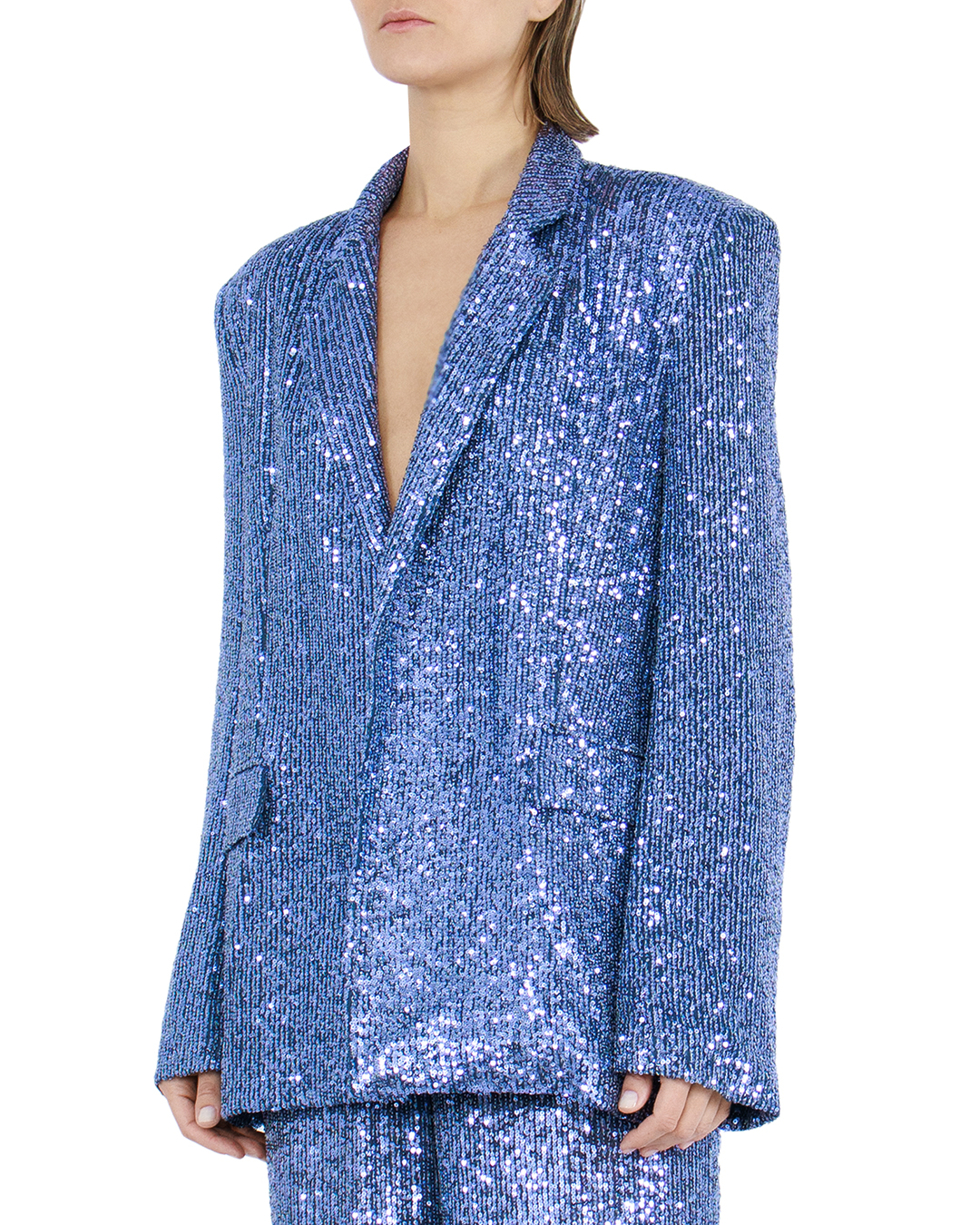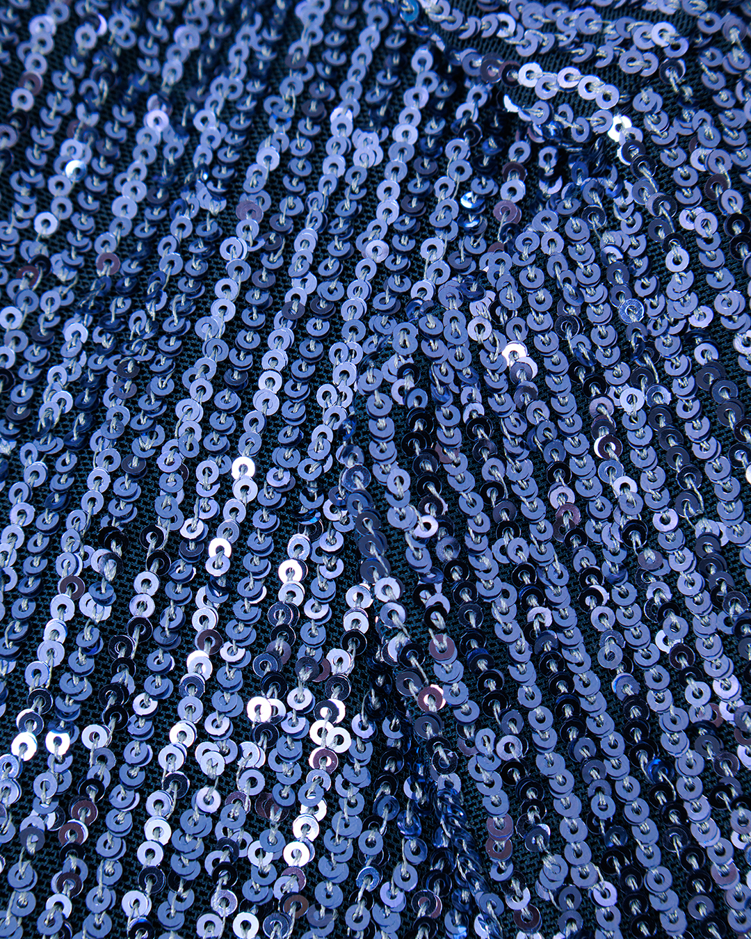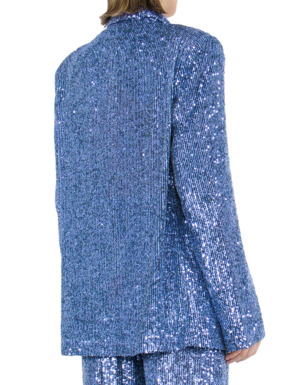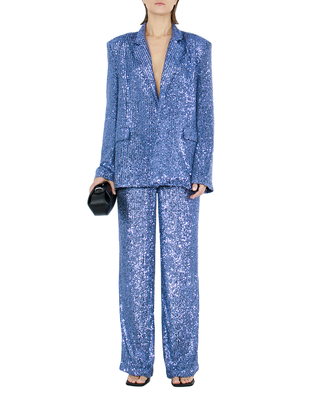 Жакет "IN THE MOOD FOR LOVE" — это идеальное сочетание классики и современного шарма. Блестящий оттенок индиго, усиленный пайетками, придает образу невероятное сияние и делает его центром внимания любого ансамбля. Прямой крой с акцентированными плечами создает четкий силуэт, придавая образу элегантность и структурированность. Этот фасон подходит для любого типа фигуры, обеспечивая идеальную посадку и комфорт. Классический лацкан добавляет нотки традиционности и уверенности, а застежки на одной пуговице подчеркивают утонченность и изысканность линии. Карманы, интегрированные в дизайн, сливаются с общей текстурой, добавляя функциональности без ущерба стилю. Каждая деталь, от строчек до отделки, выполнена с безупречным вниманием и высококачественным мастерством. Этот жакет может стать ключевым элементом как вечерних выходов, так и более расслабленного образа, если сочетать его с джинсами или минималистичными топами. "IN THE MOOD FOR LOVE" — это воплощение вечернего гламура и индивидуальности в каждом элементе гардероба.