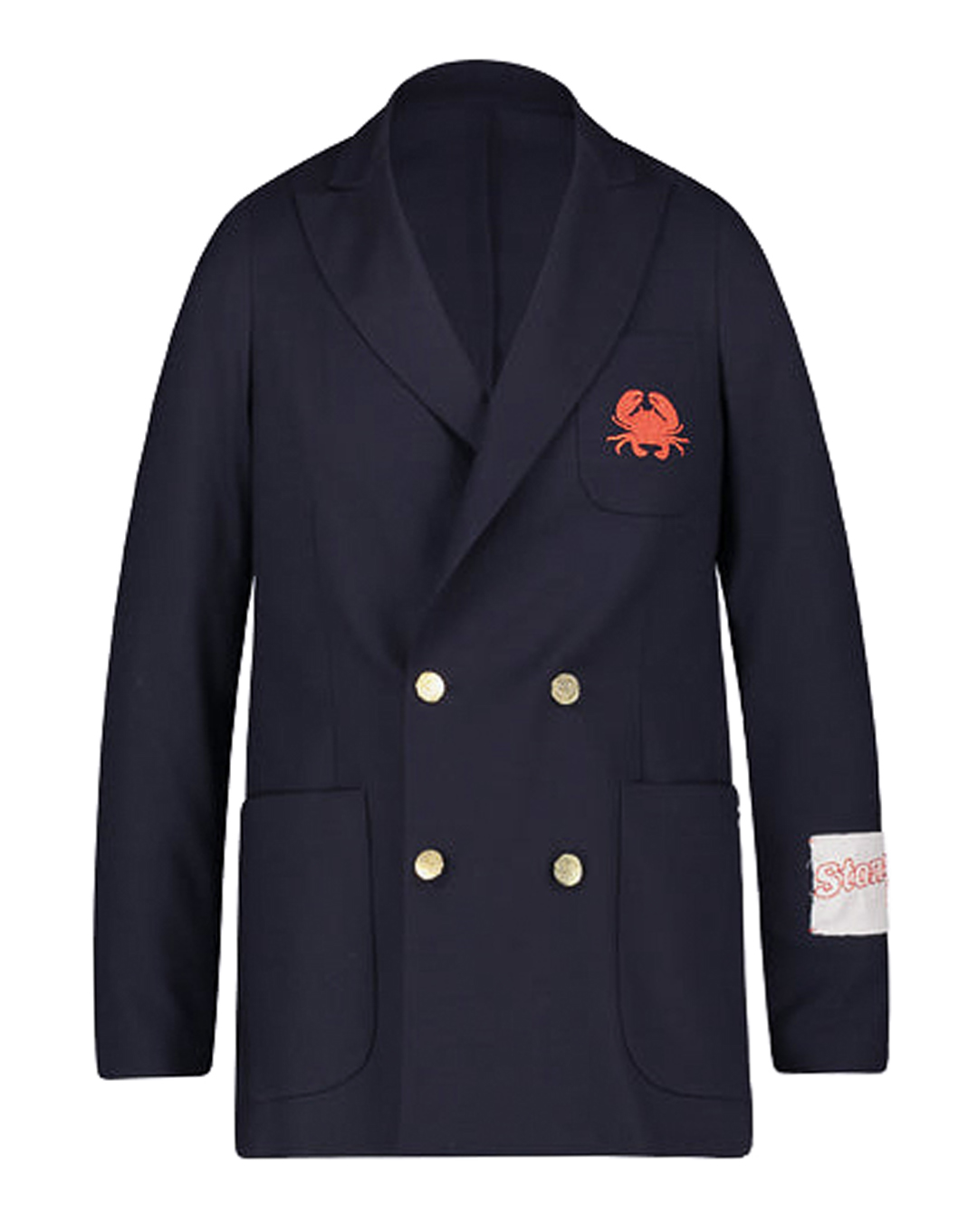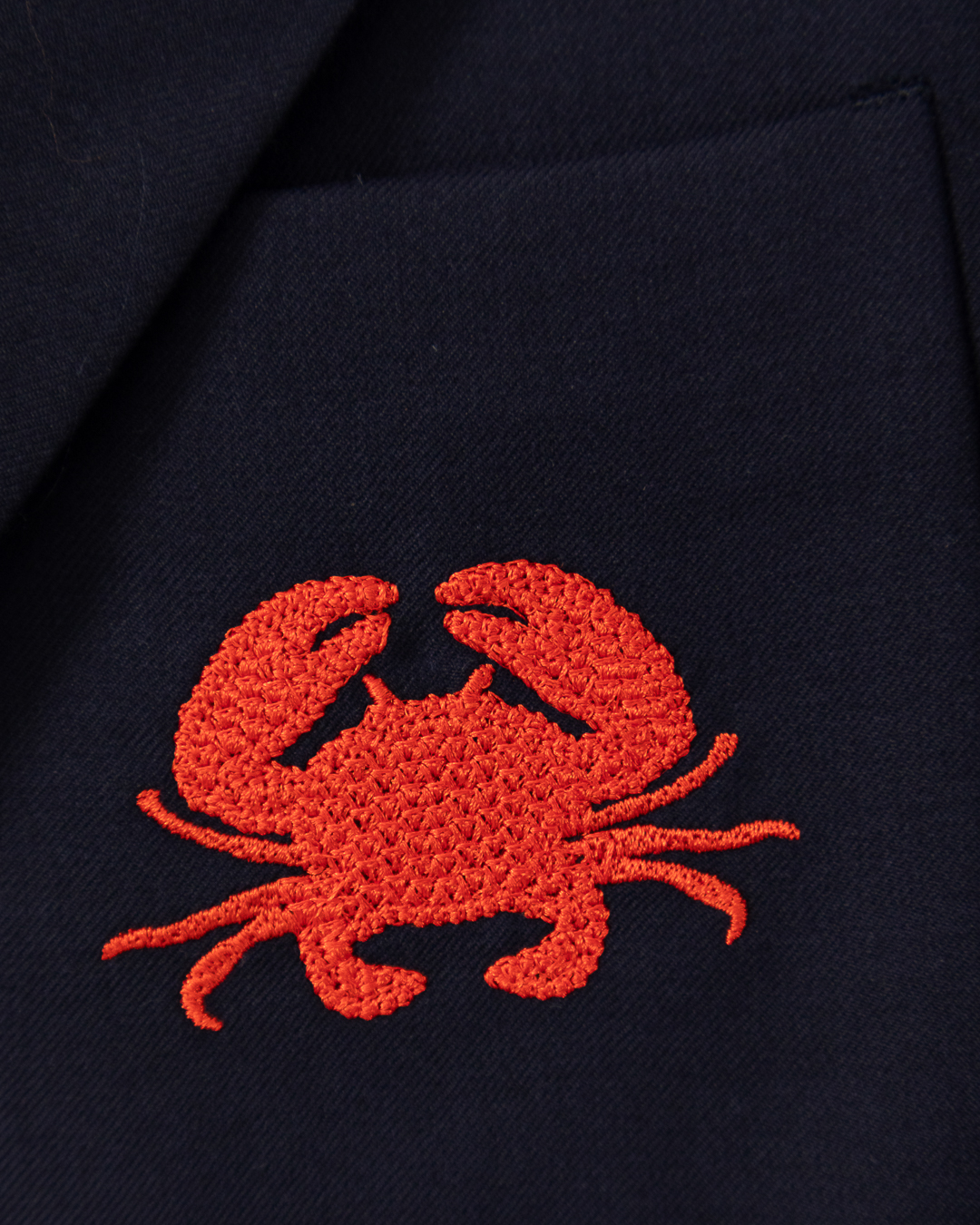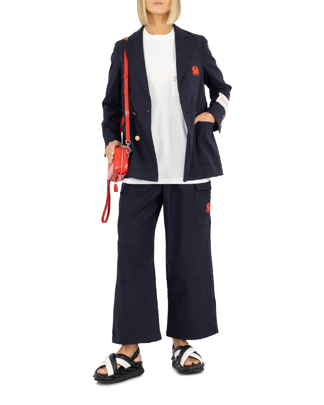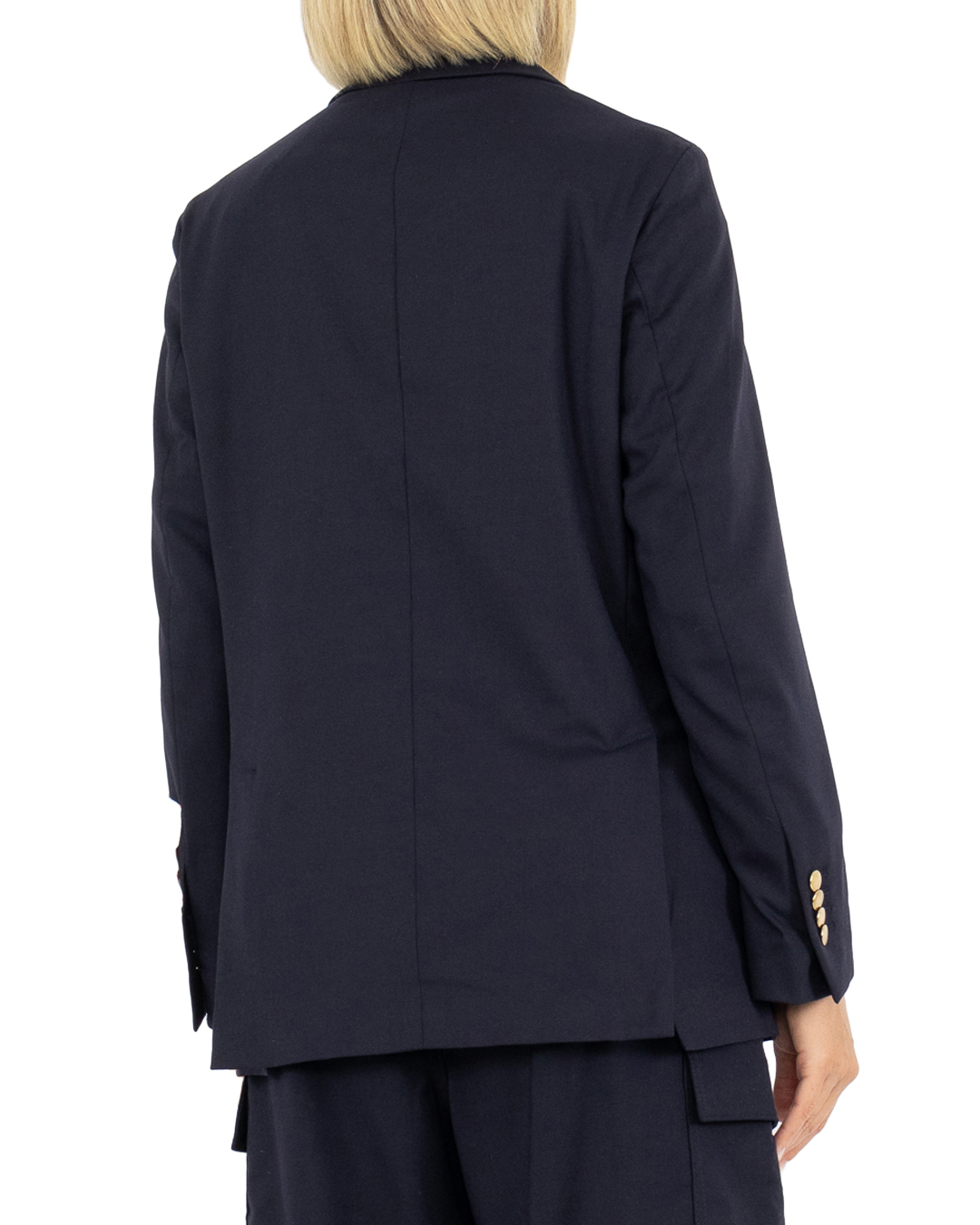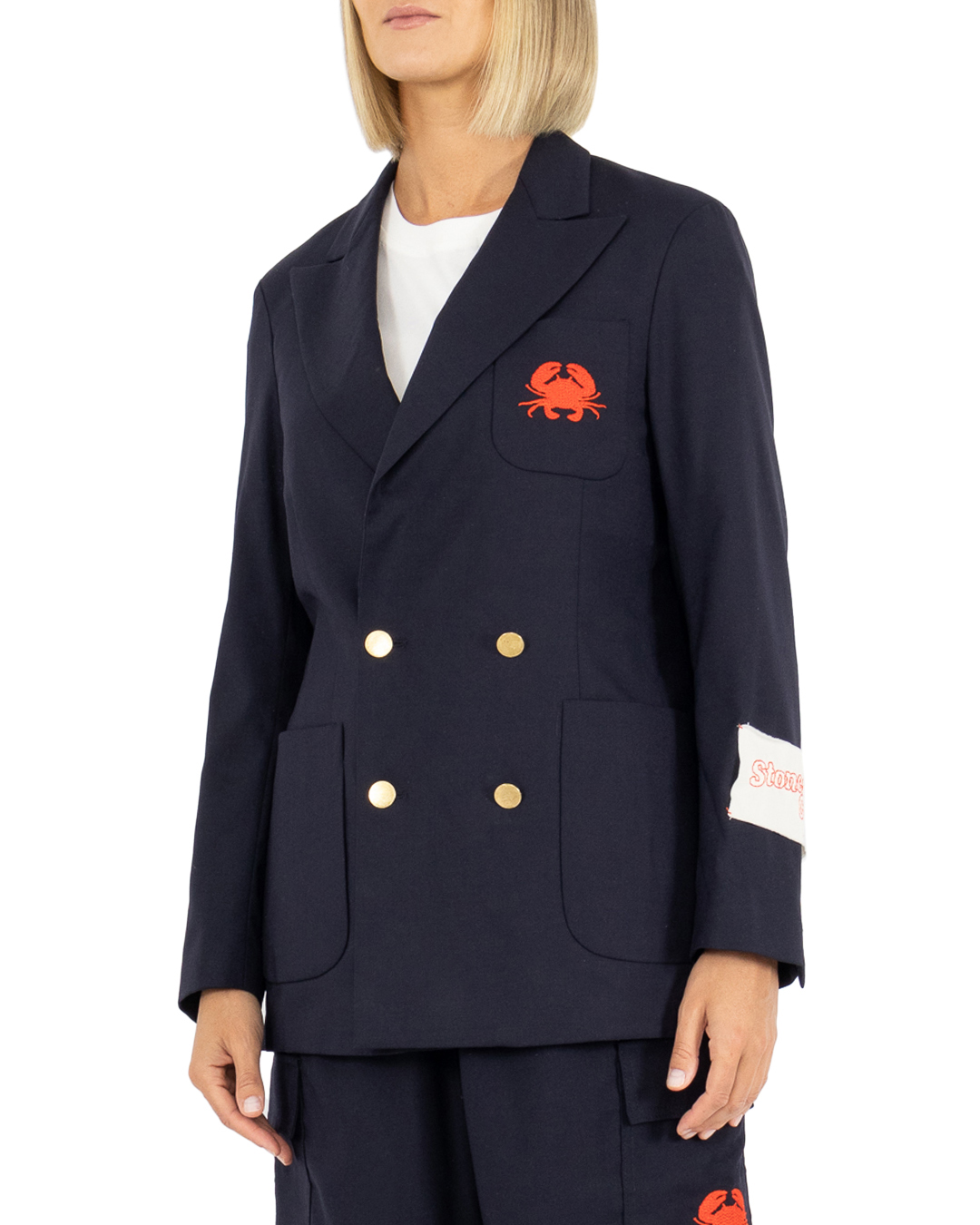 Жакет JOSHUA`S из смеси шерсти и нейлона темно-синего оттенка с вышивкой. Модель прямого силуэта с застежкой на пуговицы и накладными карманами.