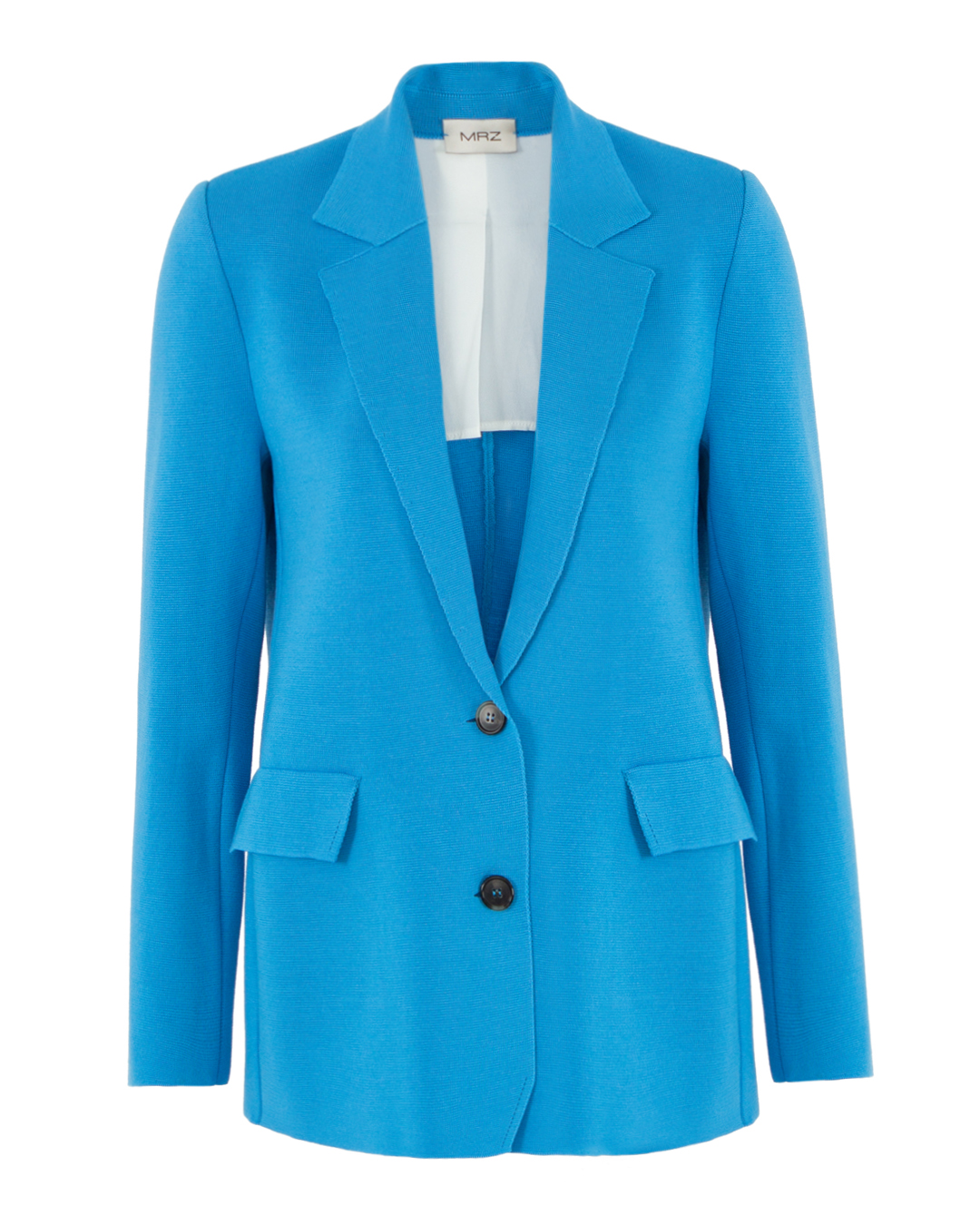 Жакет MRZ из мягкой трикотажной шерсти. Модель прямого силуэта с застежкой на пуговицы дополнена двумя карманами и отложным воротником.