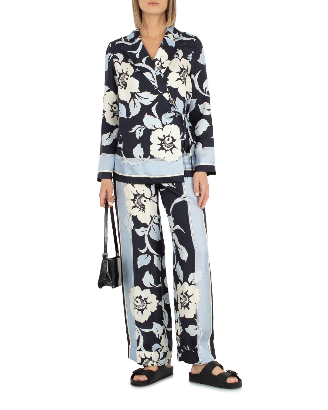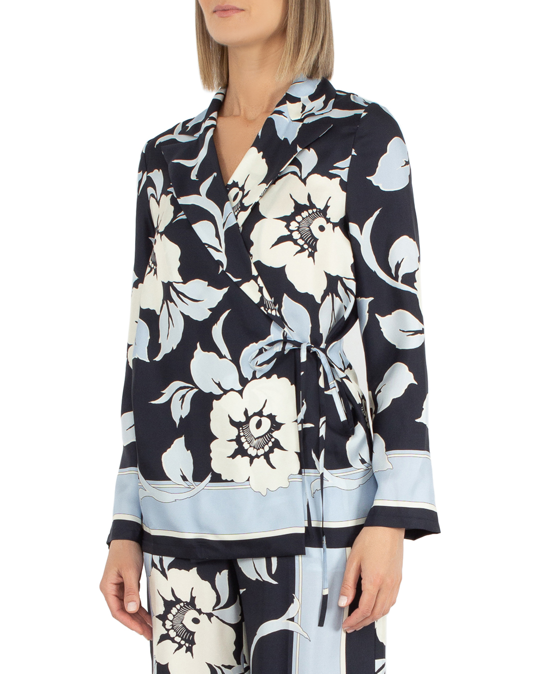 Блуза P.A.R.O.S.H. из гладкого шелка с принтом. Модель сшита на запах с завязками и дополнена отложным воротником.