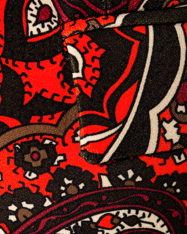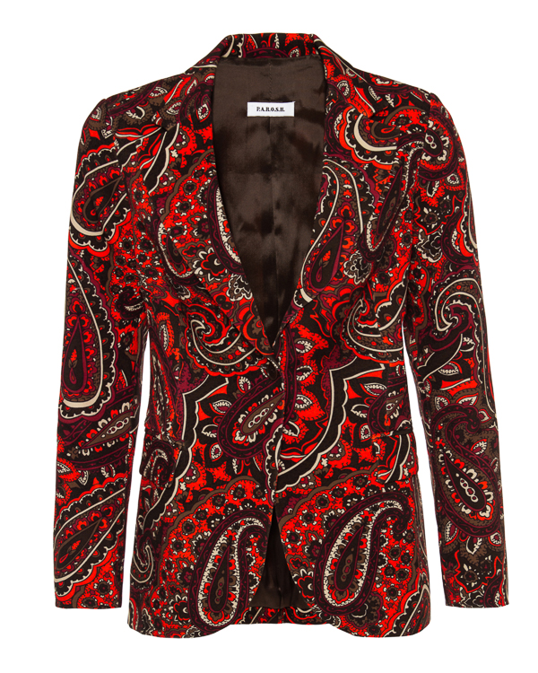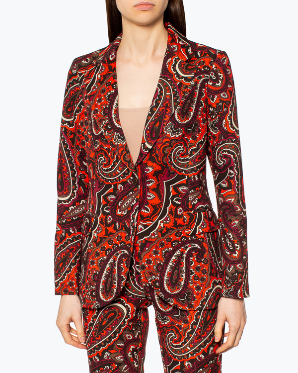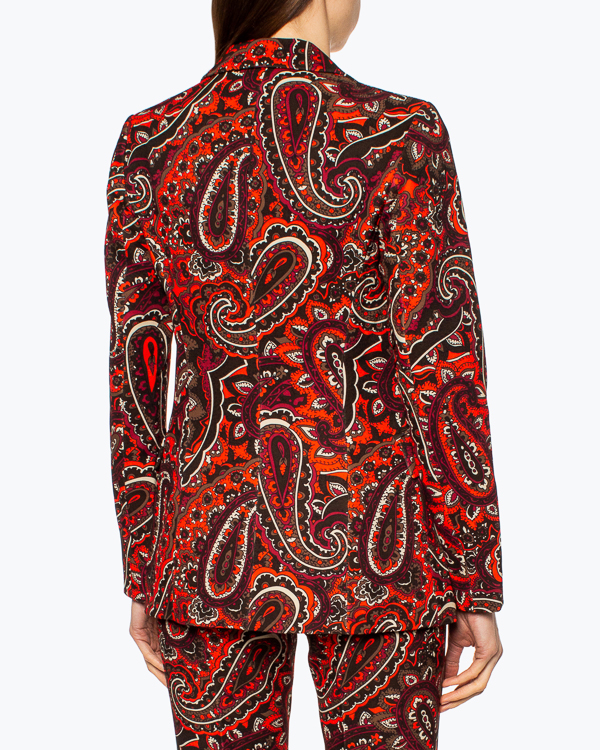 Жакет из крепа с принтом-пейсли, на подкладке. Модель прямого силуэта с застежкой на пуговицу и двумя карманами.
