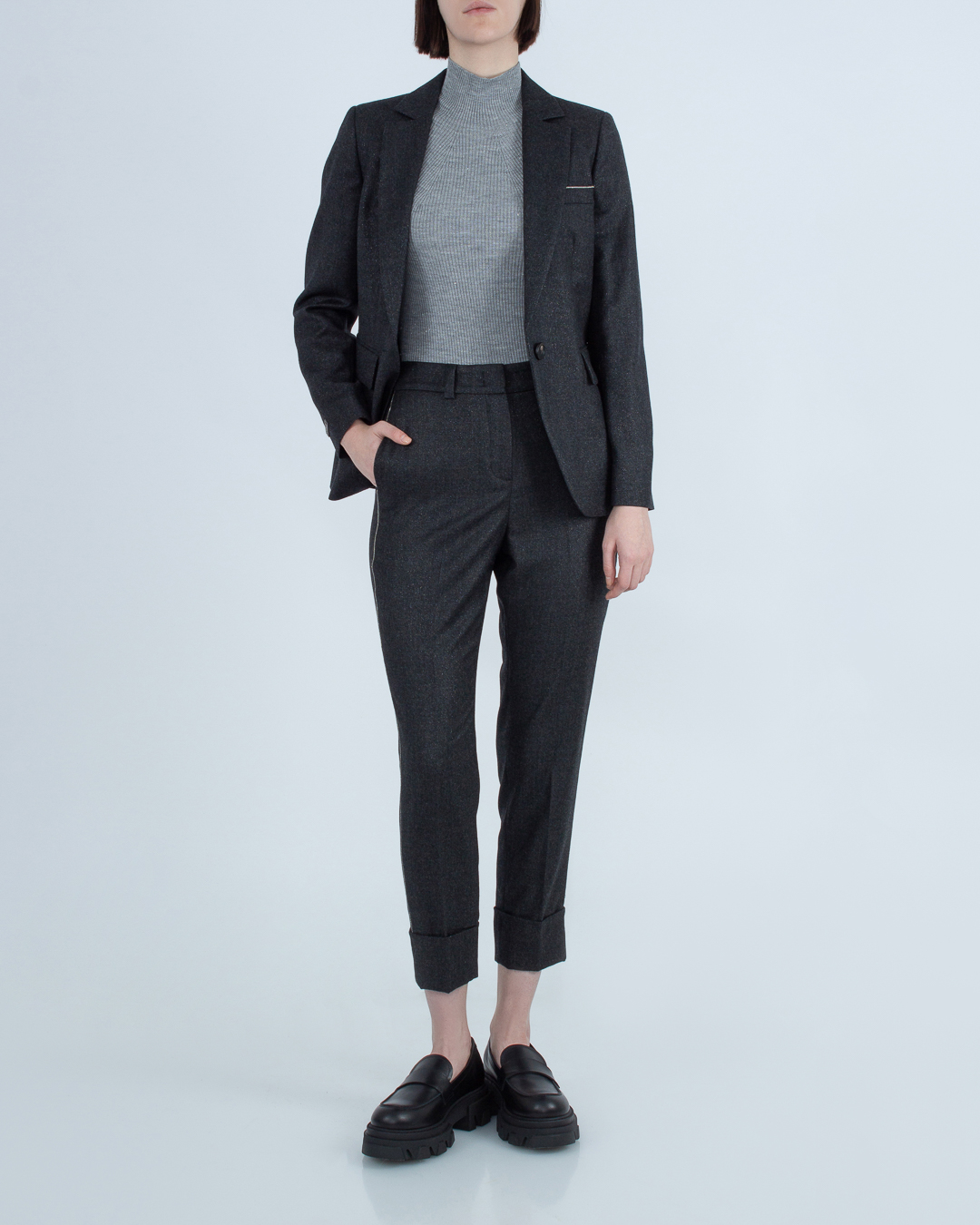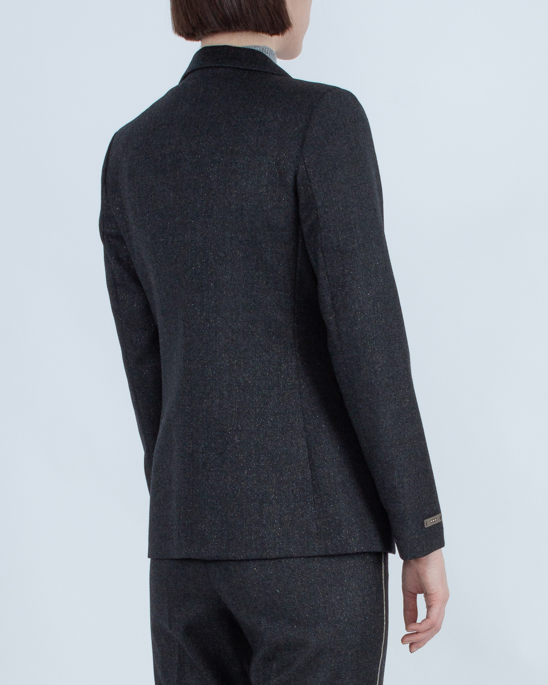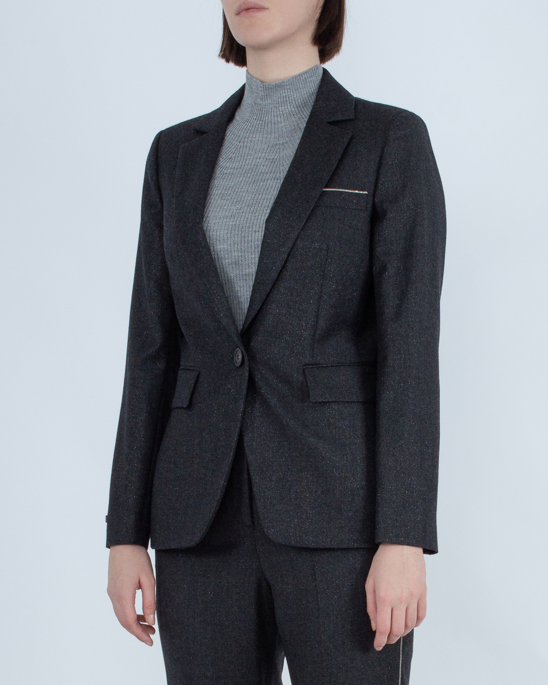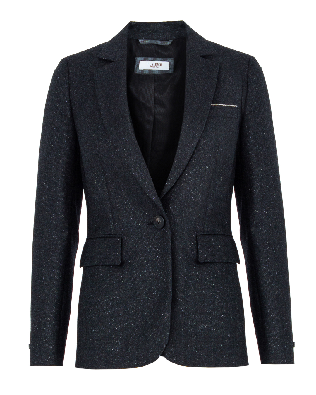 Костюмный жакет Peserico из шерсти на подкладке. Модель приталенного силуэта с застежкой на пуговицу  дополнена двумя прорезными карманами с клапанами.