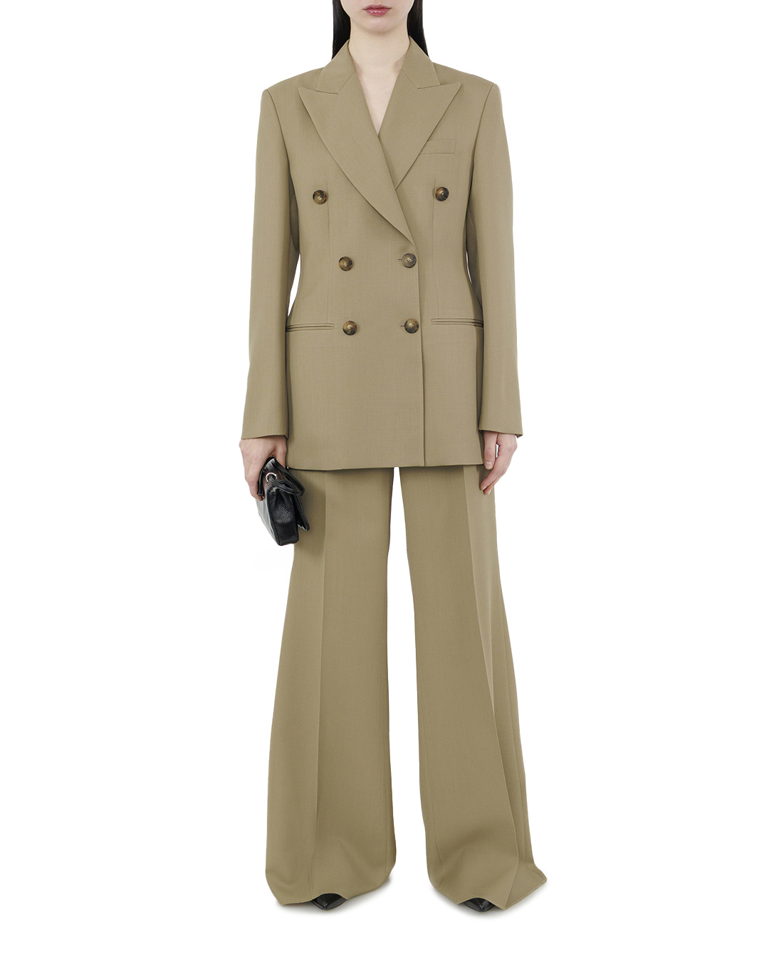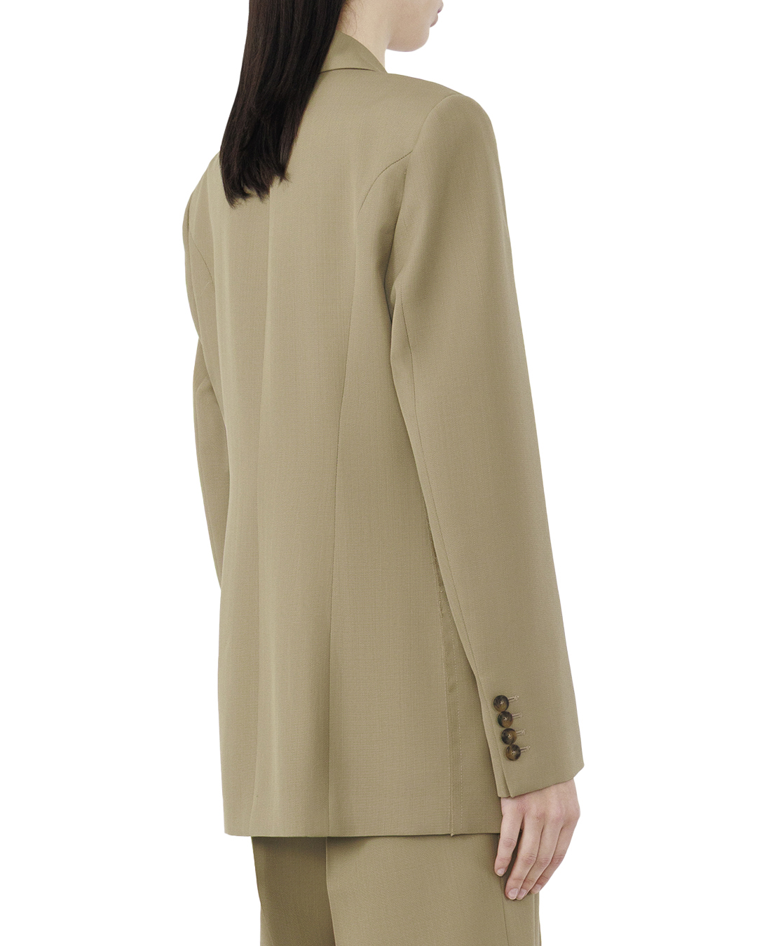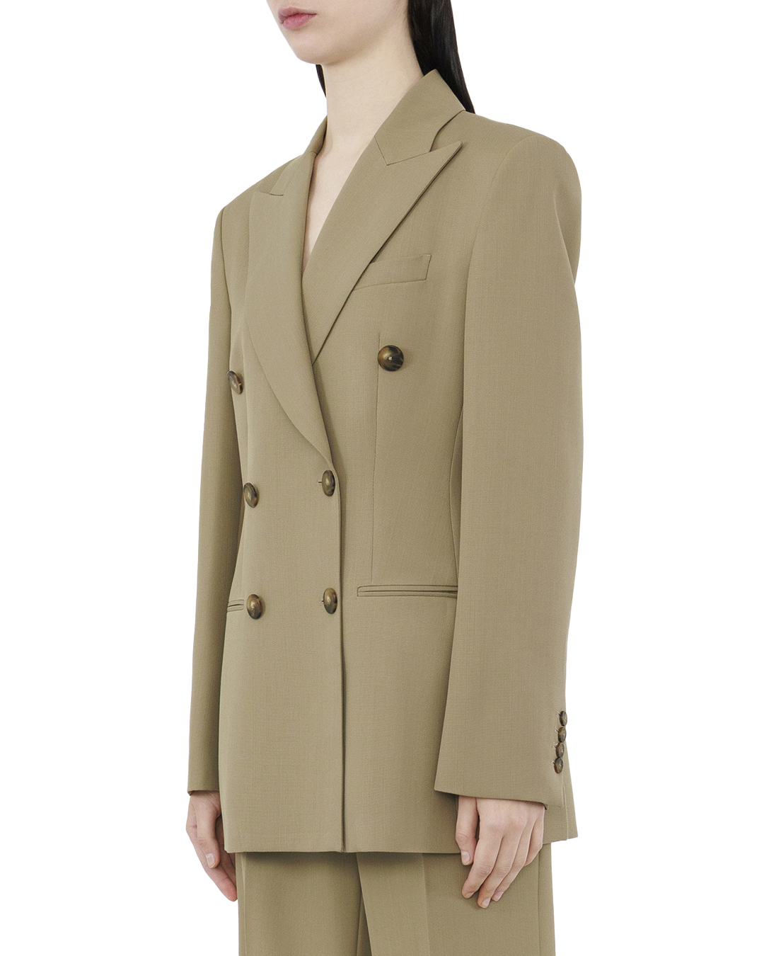 Этот жакет в теплом бежевом оттенке представляет собой эталон современного классического стиля и элегантности. С его помощью можно легко создать как деловой, так и повседневный образ, что делает его универсальным элементом гардероба. Крой — удлиненный, с двойной застежкой на пуговицы, что придает силуэту стройность и грацию. Узкие плечи и приталенный силуэт создают выразительную линию фигуры, подчеркивая осиную талию и добавляя нотки женственности. Отделка включает в себя аккуратно выполненные швы и утонченную подкладку, что делает жакет не только эстетически приятным, но и комфортным в носке. Внутренние карманы обеспечивают функциональность, позволяя хранить мелкие предметы. Пуговицы изготовлены из гладкого материала с блестящей текстурой, что создает стильный акцент на застежке и подчеркивает высокое качество изделия. Они изящно контрастируют с основным цветом жакета, добавляя интересную деталь. Карманная застежка включает горизонтальный карман на груди и два накладных кармана по бокам, оформленных с минималистичной строчкой. Это не только стильно, но и практично, обеспечивая достаточное пространство для хранения. Манжеты с маленькими пуговками завершают общий образ, добавляя строгости и завершенности. Стильные разрезы по бокам облегчают движение и придают жакету динамичный вид. Этот жакет станет отличным акцентом в любом гардеробе, позволяя создавать разнообразные образы, от строгих до неформальных, оставаясь при этом символом утонченного стиля.