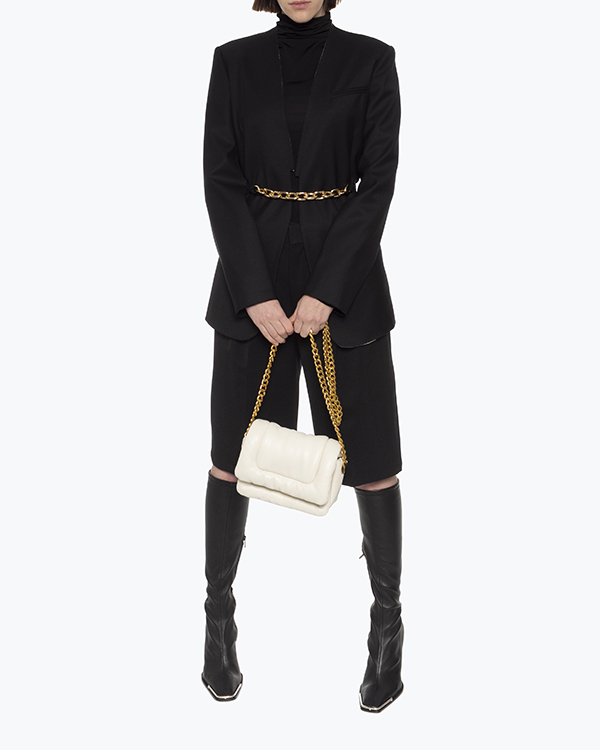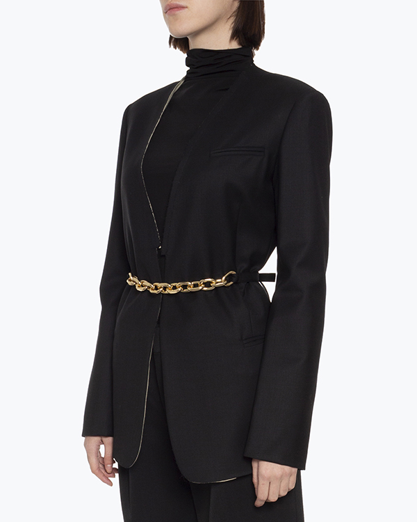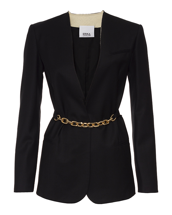 Жакет Erika Cavallini из новой осенне-зимней коллекции 21/22 выполнен из костюмной шерсти черного цвета. Лаконичный крой с идеальной посадкой по фигуре акцентирован металлической цепочкой с покрытием золотого оттенка.