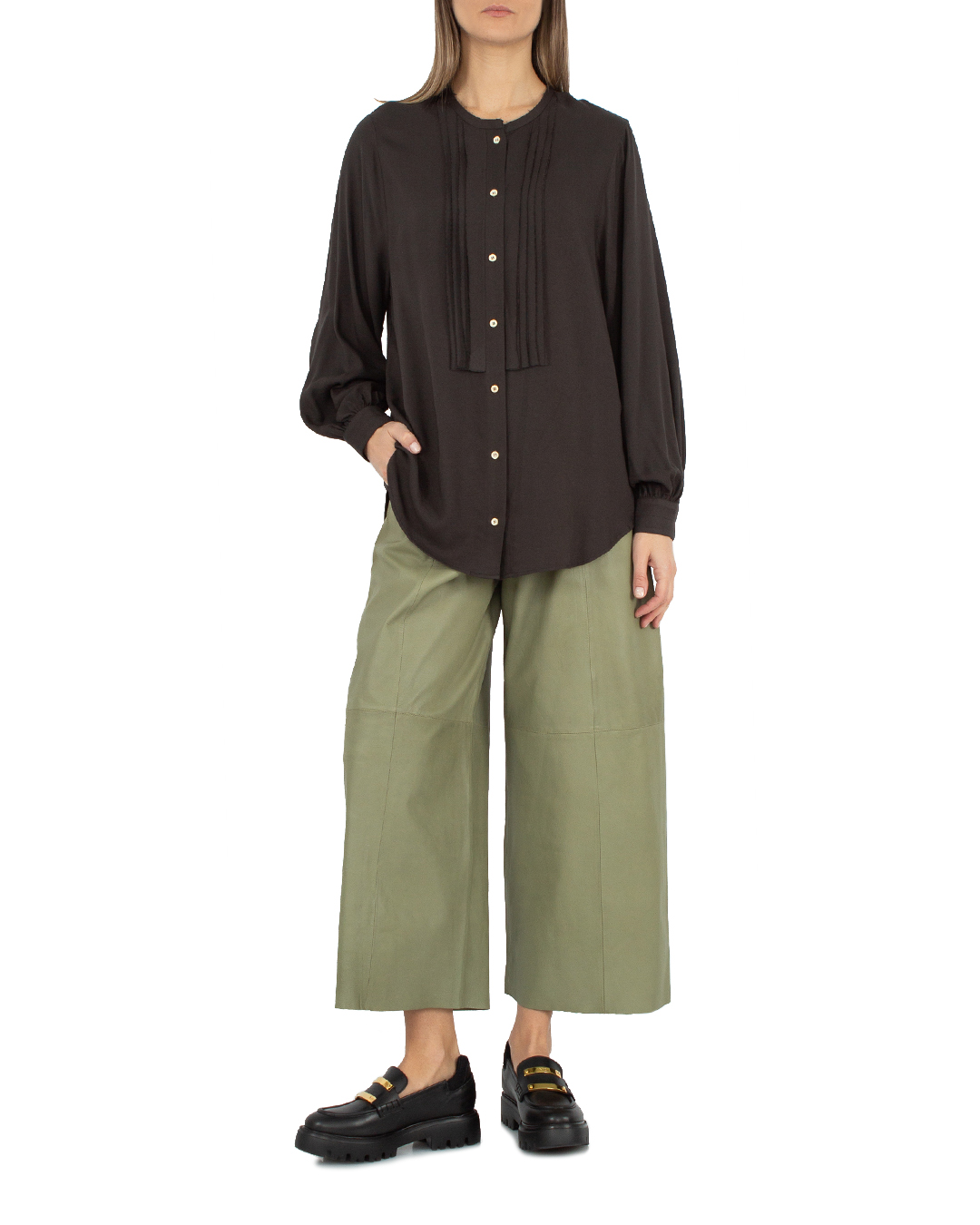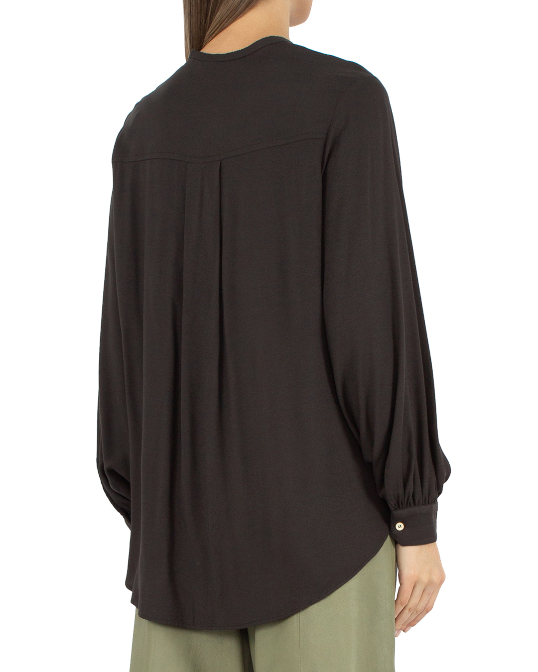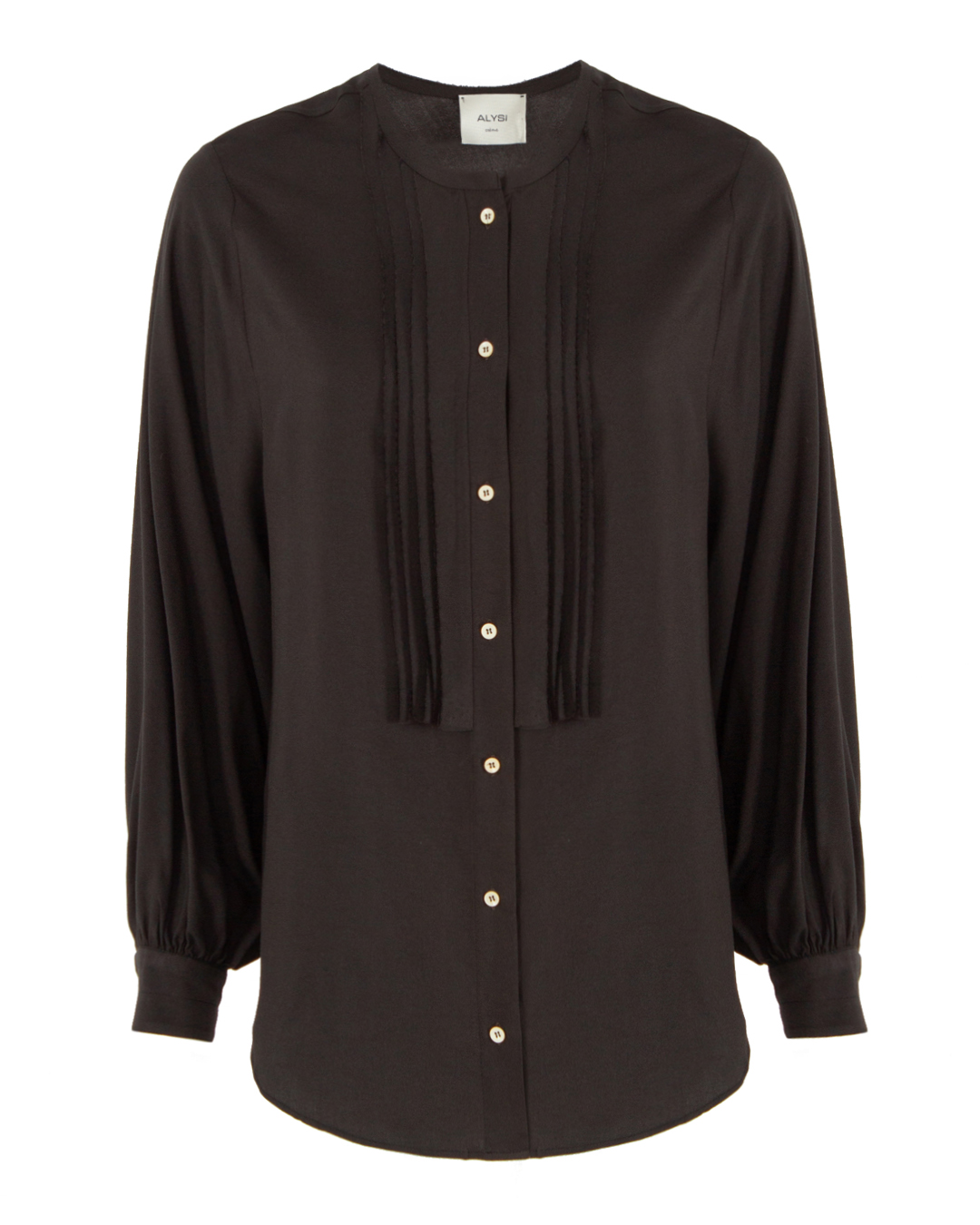 Блуза ALYSI выполнена из вискозы. Модель прямого силуэта с застежкой на пуговицы дополнена круглой линией выреза и закругленной линией низа.