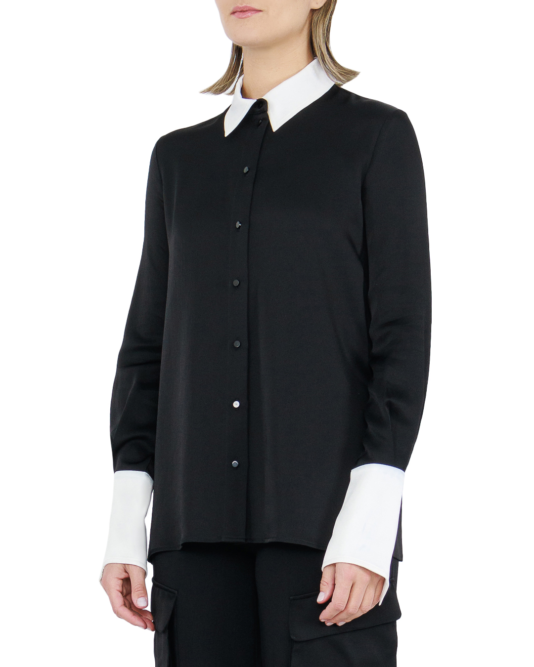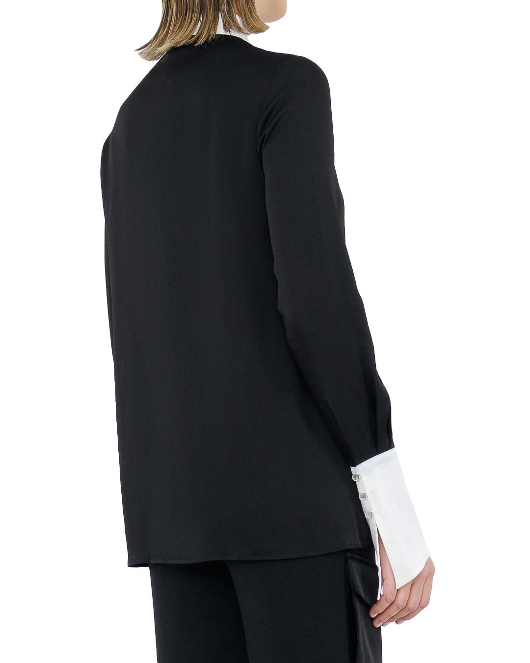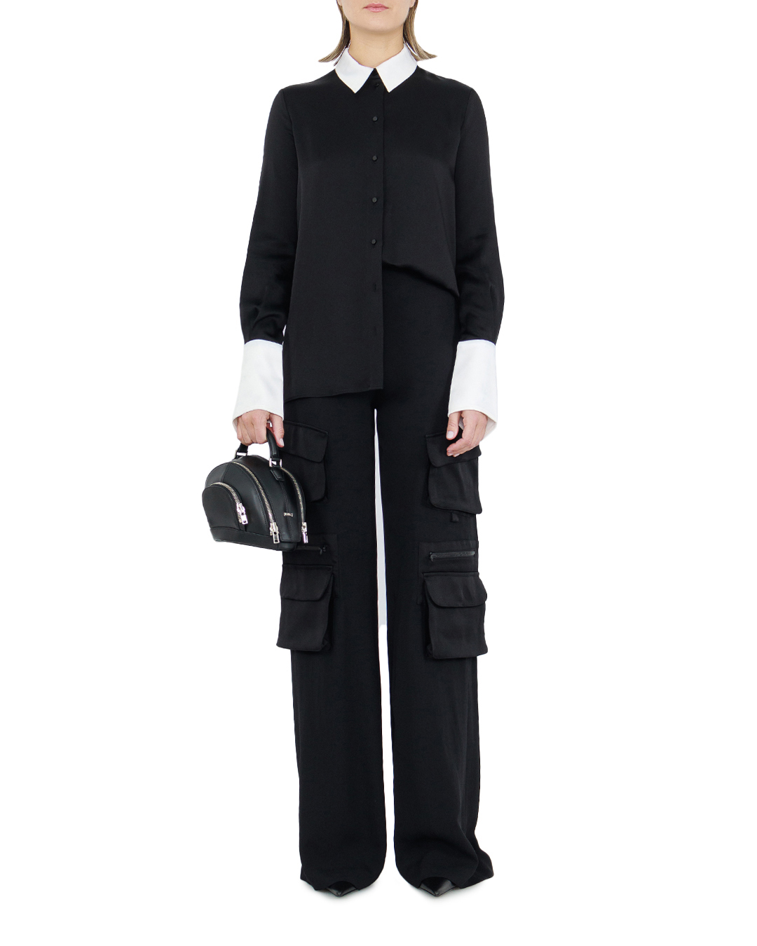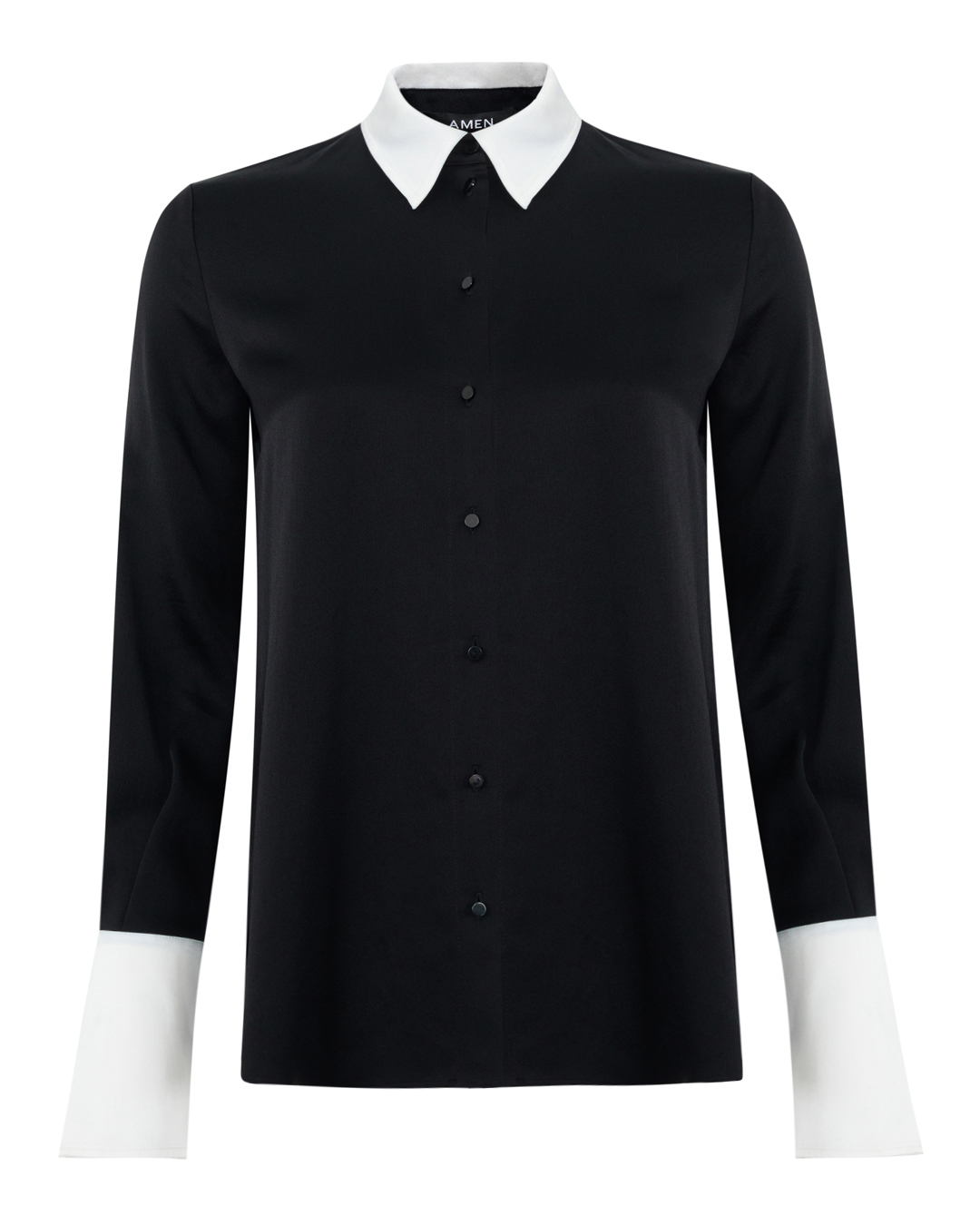 Элегантная блуза от Amen воплощает сдержанную роскошь и классический стиль, предлагая современную интерпретацию timeless классики. Изготовленная из мягкой ткани глубокого черного цвета, она отличается утончённой текстурой и отличной посадкой. Универсальный и лаконичный дизайн подчёркнут контрастными белыми деталями — аккуратным отложным воротником и элегантными манжетами, которые добавляют изысканный акцент и создают визуальную игру на контрасте. Застёжка на пуговицы по передней части изделия добавляет функциональную простоту, подчеркивая минималистичный подход к дизайну. Лаконичность блузы позволяет создавать разнообразные образы — от строгого офисного до вечернего, добавляя нотки утончённой элегантности в любой стиль. Эта блуза станет идеальной основой для гардероба, сочетающей в себе изысканность и практичность.