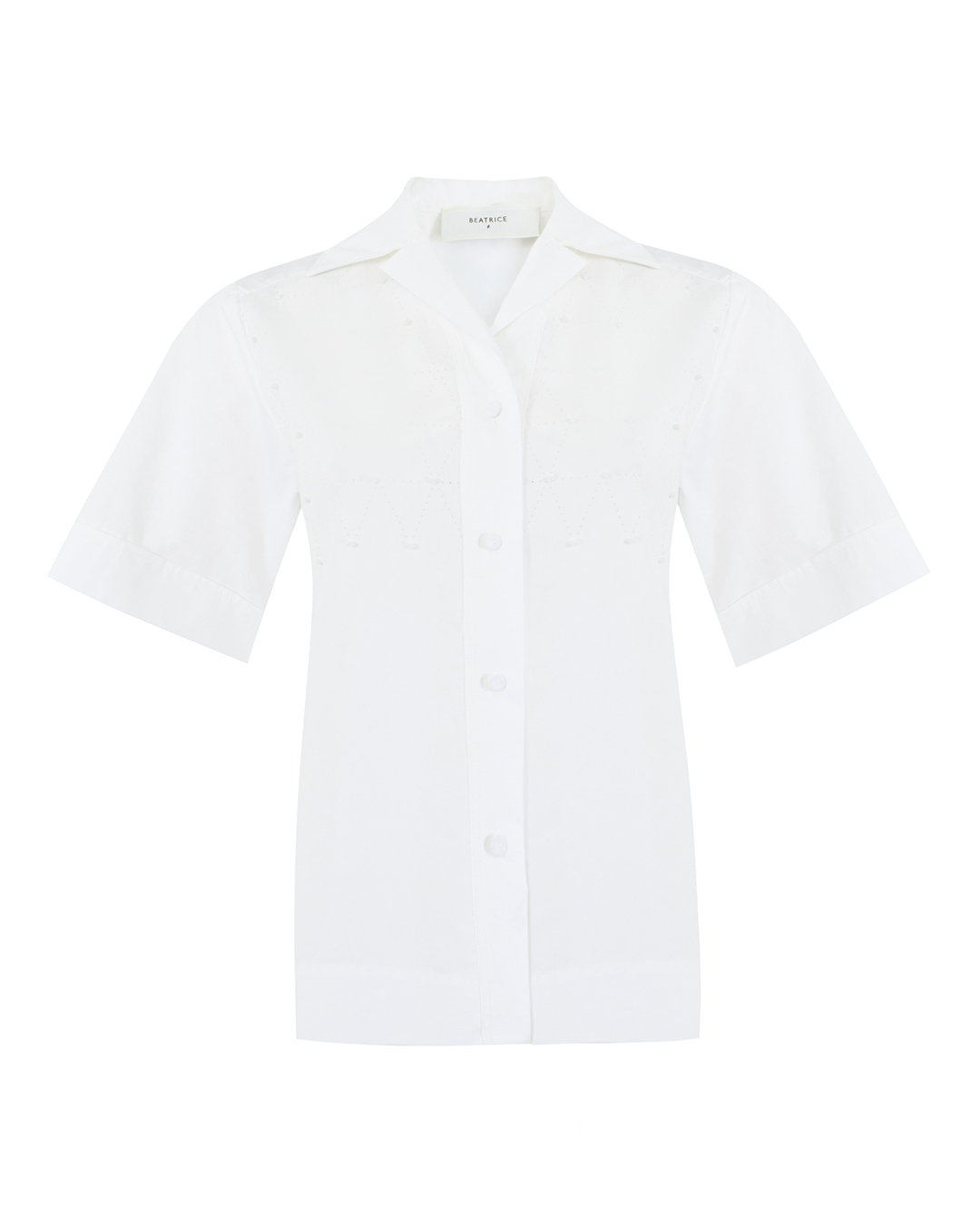 Блуза от BEATRICE — это классика в современном исполнении, идеально подходящая для модных экспериментов с минималистичным дизайном. Чистый белый цвет делает её универсальной основой для любого гардероба. Эта модель отличается мягким воротником с отворотом, добавляющим образу легкость и непринужденность. Свободный крой и короткие рукава обеспечивают максимальный комфорт и свободу движений, сохраняя при этом аккуратный силуэт. Изысканная вышивка на лифе добавляет изюминку и утонченность, приковывая взгляд к деликатным деталям. Планка на пуговицах подчеркивает классический стиль, оставаясь в рамках сдержанного дизайна. Блуза прекрасно комбинируется с разнообразными элементами гардероба — от деловых костюмов до расслабленных летних ансамблей, делая её идеальным выбором для любого случая и настроения.