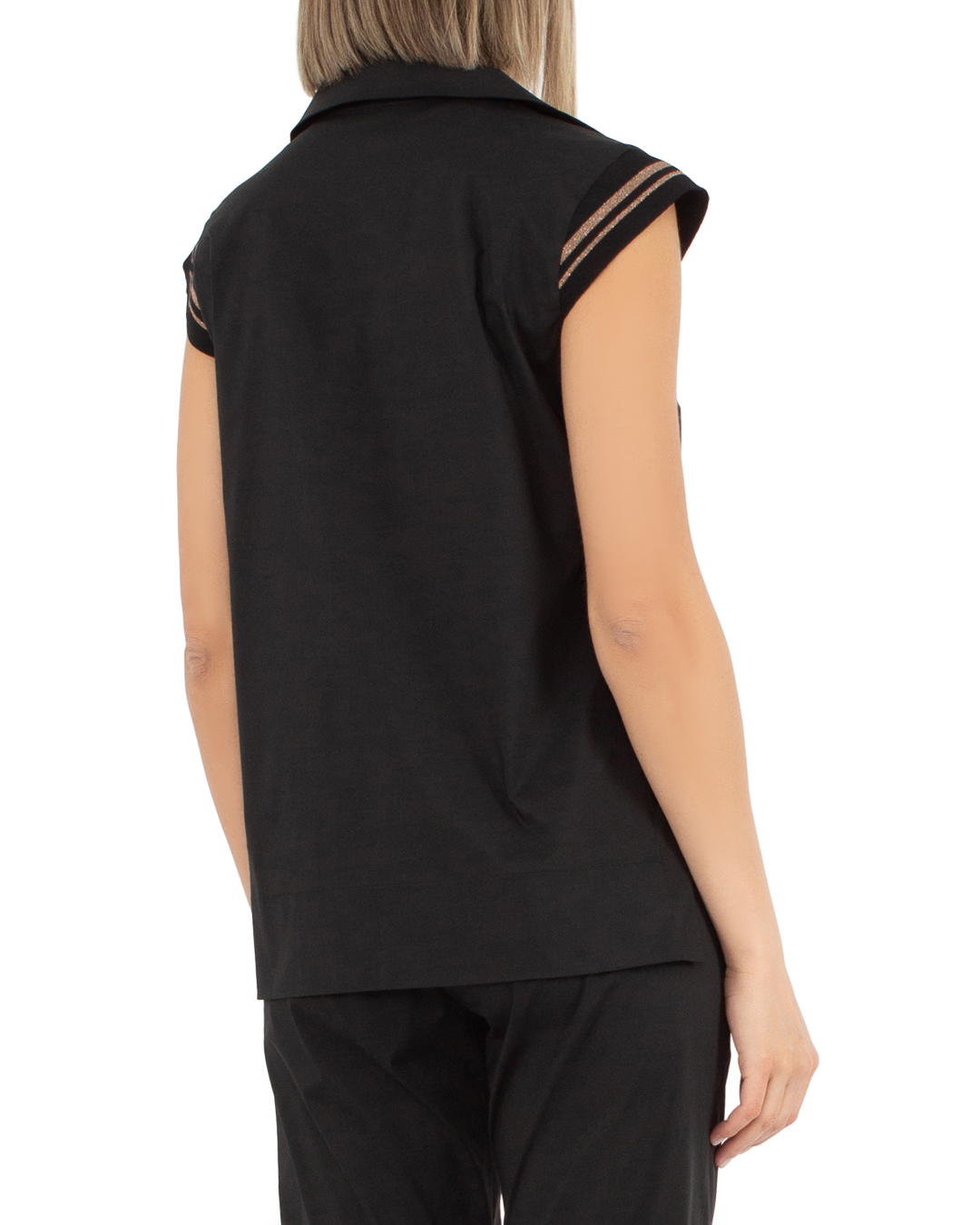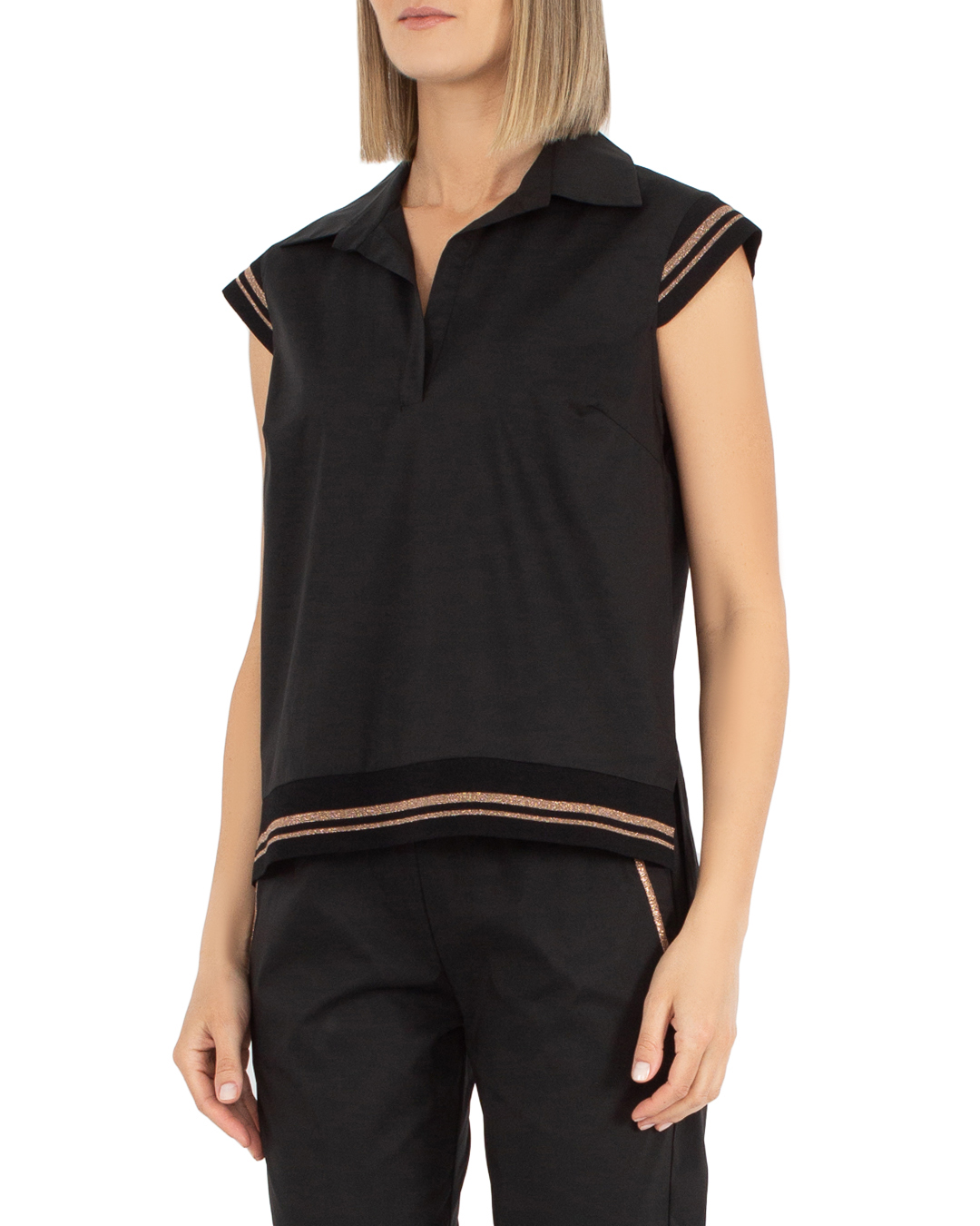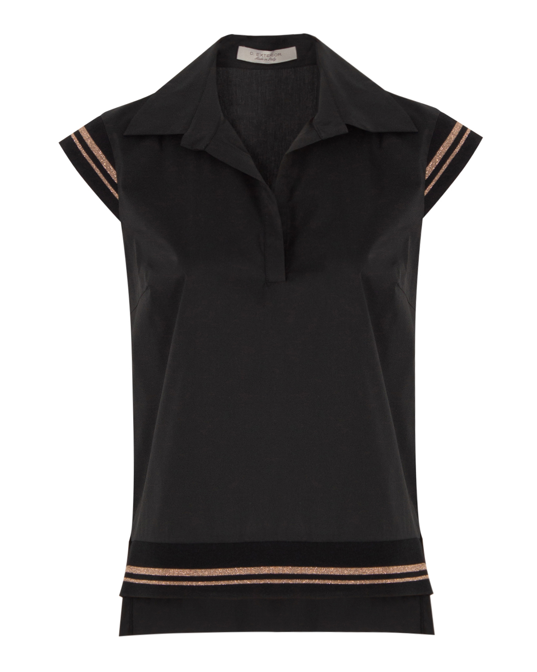 Топ D.EXTERIOR из вискозы с трикотажной отделкой в рубчик. Прямой крой дополнен отложным воротником.