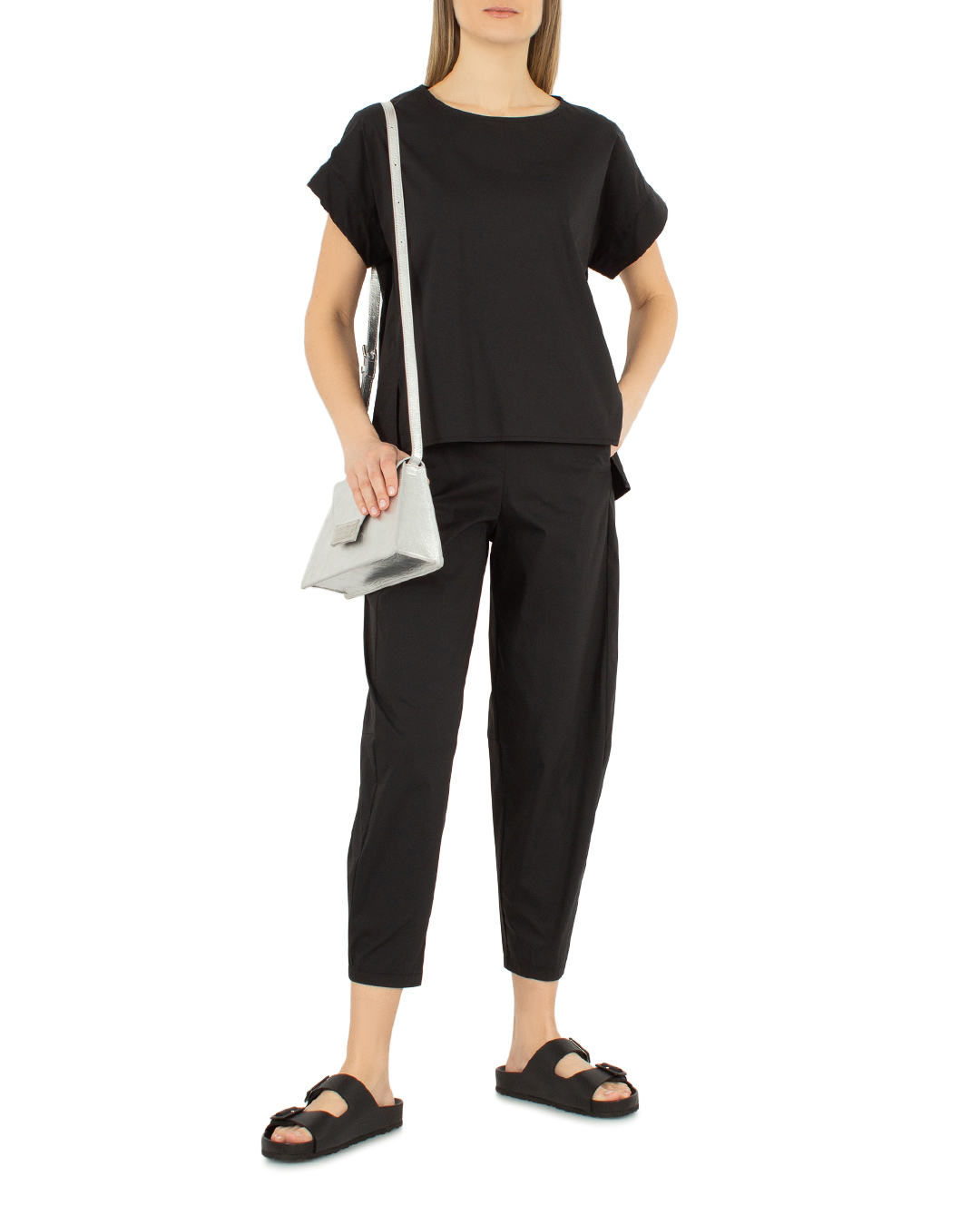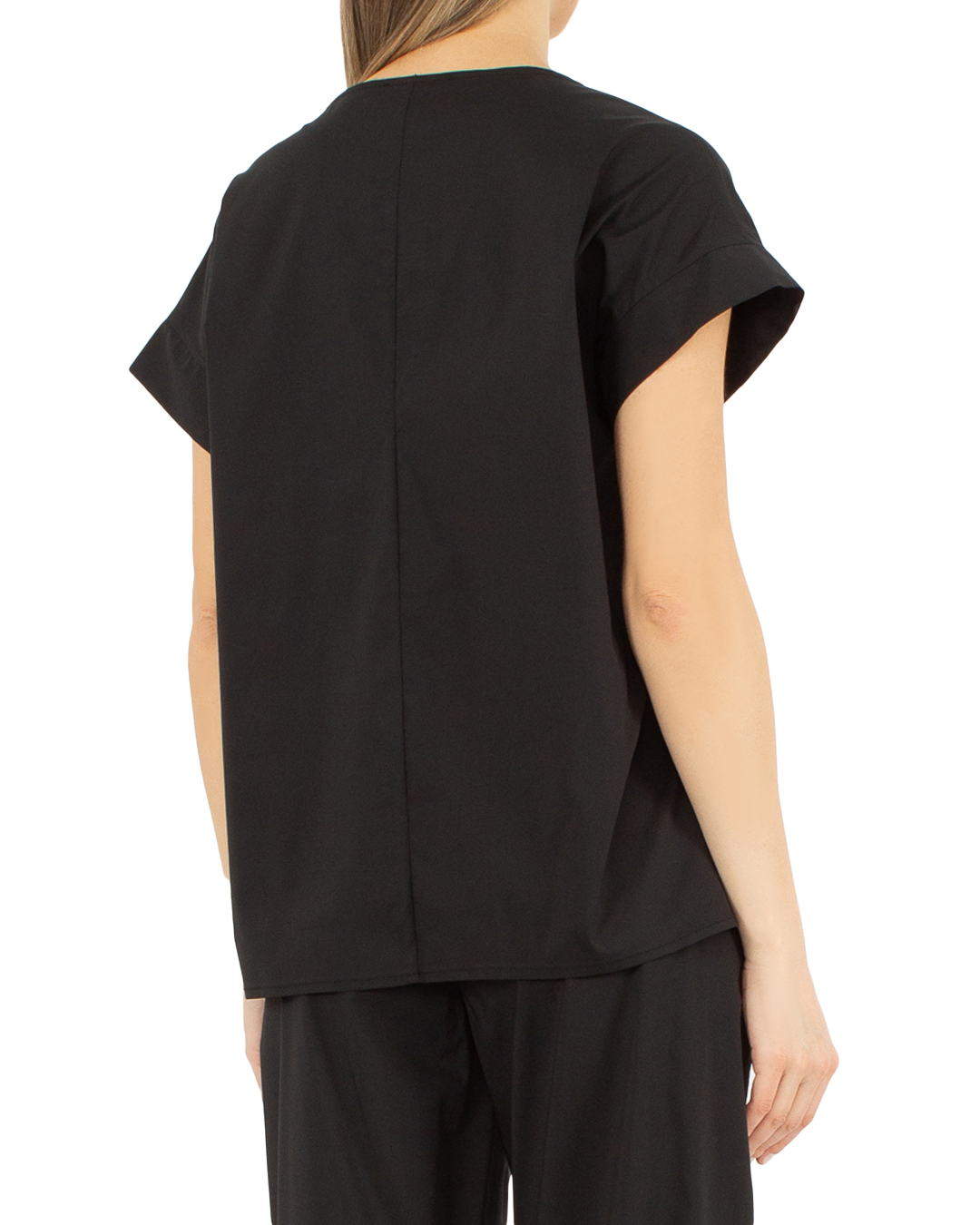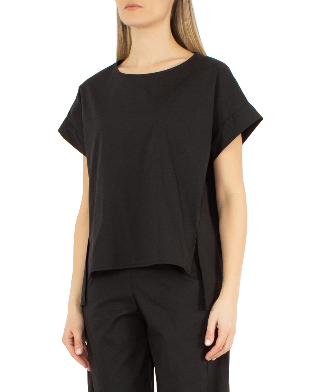 Топ J.M design из атласного хлопка. Прямой крой дополнен невысокими разрезами по бокам и удлиненной линией спины.